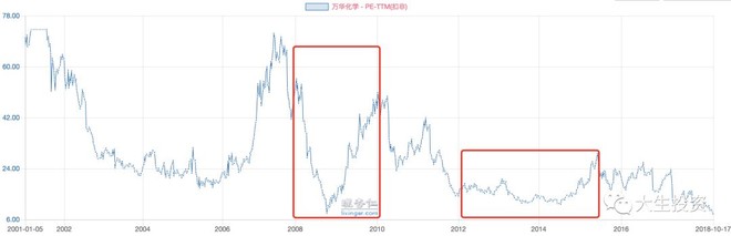 来源链接:https://xueqiu.com/9709448326/115380342 万华是我们关注时间最长的一个公司,只不过因为业绩不错,已经有快一年没有发过万华的推文了。 我们经常说熊市有熊市的好处,熊市给了我们时间,可以去认真分析公司基本面,也给了我们好的价格,去低价买入好公司。现在正好,我们就就可以梳理一下,在没有对万华推文的这段时间里,万华发生了什么。 1 万华的整体上市 第一件要说的事就是整体上市。 2017年12月4日,万华化学停牌,启动整体上市,方案敲定后,2018年6月4日复牌。虽然,这段时间股市已经开始持续下跌,万华复牌后,还是奉献了两个涨停,后来,最高冲到了54.95元的历史高位。 2011年,万华化学的控股股东收购了匈牙利BC公司,BC公司的主业也是MDI,收购后就同上市公司形成了同业竞争,大股东承诺,在BC公司的财务状况改善、持续盈利后,解决同业竞争问题。 另外,大股东手上还持有,万华最重要的子公司宁波万华的25%股份,这次交易,主要就是为了吸收这两大块资产,解决同大股东的同业竞争问题,交易完成后,大股东手上的主要资产,全部进入上市公司,实现整体上市。 这次交易分为两步走: 1、万华化学的原大股东,万华实业把手中的MDI相关资产放进万华化工,包括:万华化学 47.92%股权、万华宁波 25.5%股权、新益投资 100%股权、万华国际资源 100% 股权(下面有匈牙利BC的100%股权)、新源投资 100%股权、辰丰投资 100%股权。 2、上市公司万华化学向万华化工的股东增发股份,吸收合并万华化工,万华化工注销,其旗下资产全部划入万华化学。 本次交易中被吸收合并方万华化工 100%股权的评估值为 5,221,758.20 万 元,按照发行价格 30.43 元/股计算,合计发行股份数量为 1,715,990,206 股。 本次交易后万华化工持有的万华化学 1,310,256,380 股股票将被注销,因此本次 交易后实际新增股份数量为 405,733,826 股。上市公司的实际代价相当于123.46亿元,收购了100%匈牙利BC和25.5%宁波万华。 交易完成后,公司总股本变成: 现在股本2,734,012,800+实际增发405,733,826=3,139,746,626股。 这个交易价格贵不贵呢?我们看看大股东的业绩承诺。 2018年承诺43亿元,2019-20120各25亿元,三年净利润118亿元。总共花了123亿元,相当于三倍市盈率收购,你说贵不贵?三倍市盈率的资产,放到上市公司怎么也得涨到10倍起步吧,所以,很好解释复牌后的股价上涨。 提到业绩承诺和补偿,大家可能会想到冯小刚那个卖了10.5亿元的皮包公司,就算业绩不达标,上限补偿,冯小刚还是能净赚3.6亿元, 万华这个业绩承诺靠谱吗?如果利润达不到,差多少,大股东吐出来多少股份去补偿,既然承诺了118亿元净利润,那补偿上限118亿和收购价123亿元基本相差不大。 我们白话解释,上市公司收购花的钱,三年内一定可以收回来,要么通过被收购公司赚回来,要么大股东吐出来。就我个人而言,这个收购方案,实在是好的无话可说。 其实,为了防止自己回吐股票,大股东为自己留足了安全空间,2018年上半年匈牙利BC已经实现净利润25.8亿元,宁波万华25.5%已经实现净利润9.7亿元,半年业绩已经完成全年承诺利润的82%,全三年利润承诺的30%。以上市公司2018年上半年归母净利润69.5亿元计算,交易后相当于利润增厚51%,股本只增加14.8%,你说划算不划算。 同时,交易方案还给大股东留了一个优惠条件,那就是,如果公司股价较停牌前交易价(36.44元)下跌超过20%,也就是差不多跌破现在定的增发价以后,上市公司有权召开董事会调增股票增发价格。话说,以现价看,再来一个跌停就能跌破了,不过,考虑到方案调整后,各种审批的复杂性,估计公司不会轻易启动调价。 2 万华是不是周期股 关于万华化学,很长时间大家都在争论它是不是个周期股,万华的合理股价,长期存在各种争议。 一方认为,万华属于重资产公司,固定成本高,产品价格波动大,导致公司盈利必然成周期性波动,万华是个典型的周期股。另一方则认为,万华自2001年上市以来,营业收入从近6亿元,增长到现在近600亿元,净利润自1亿元,增长到近200亿元,是个典型的绩优白马股。 2001年上市后的近20年间,万华总共经历了两次业绩回调,一次是2008-2009年,一次是2014-2015年,两次业绩下滑幅度都差不多,最高都没有超过-30%,其他时间基本都维持在了50%左右的增速。 对于万华来说,业绩确实有波动,但是,如果一次低谷的盈利比上次高峰的时候还要高,这样的周期又何妨。 万华属于重资产、高固定成本企业,在不景气的时候,一般宁肯降价也尽量不减产,极端情况下,只要能覆盖可变成本部分,就可以干,它没办法搞囤货居奇,所以,行业的周期波动,也会直接体现在利润率变化上。但是,即使业绩差,万华的毛利率最低也有25%,净利润最低也高过10%。 根据2018Q3季报,由于MDI价格一路下滑,万华的三季度的毛利率也再次出现下滑,毛利率30.6%,净利润率16.6%。 虽然,万华所处行业的行业是典型的周期性行业,但是,万华很好的做到了,控制回撤,快速增长,同是周期,万华的成长性和和业绩稳定性绝对不是那些赚一年亏三年的公司能比的。我们拿万华和净利润从来没有负增长的白马典型茅台做对比,也没有逊色多少吧。 认为万华是周期股的同学,一般都会发出这样都“忠告”,“周期股应该高PE介入,低PE退出”,他们的依据是公司业绩有周期,低谷是业绩差,利润低、PE高,高峰时,利润好、PE低,因此,应该低谷高PE介入,高峰低PE退出。万华果真如此吗?我们看看历史PE,