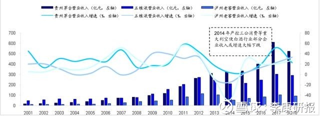 来源链接:https://xueqiu.com/9501602336/117621030 市场动态 白酒上市公司2018年三季报业绩 贵州茅台、五粮液、洋河股份、泸州老窖、古井贡酒、水井坊、舍得酒业、酒鬼酒等部分高端、次高端白酒企业最新的2018年三季报,均保持较快增长。 2001-2017年及3Q18贵州茅台、五粮液、泸州老窖的历史收入及同比增速 2001-2017年及3Q18贵州茅台、五粮液、泸州老窖的历史净利润增速 一些偏宏观的指标可能会对高端白酒消费的增长有一定的影响,如宏观经济放缓、人口老龄化、健康原因少喝酒。但我们认为:(1)宏观经济放缓对白酒消费增速的影响已经体现在机构一致预期,根据wind机构一致预期,贵州茅台、五粮液、泸州老窖收入、归母净利润增速2018-2020年都逐年呈放缓趋势。(2)人口老龄化是指整体人口结构的变化,而高端白酒消费者主要限于资产净值在中等以上的人群,从长周期角度来看,我们认为这类人群的数量和财富是持续上升的。根据贝恩公司和招商银行联合发布的《2017中国私人财富报告》显示:2016年中国个人持有的可投资资产总体规模达到165万亿人民币,2014-2016年年均复合增长率达到21%,预计到2017年底将达188万亿人民币;2016年可投资资产1千万人民币以上的中国高净值人士数量达到158万人,2014-2016年年均复合增长率达到23%,预计到2017年底将达187万人。(3)我们认为”少喝酒、喝好酒”的确是当下消费趋势,但考虑到中产及以上人口占比逐步加大,消费升级趋势下,高端、次高端白酒内涵价值增加,我们判断白酒行业总体会呈现量缩价升趋势,高端白酒板块量价齐升。 常用社交平台,分析了白云山,终于解决王老吉问题的它将会怎么走。体检龙头美年健康,康美药业,复星医药等等医药类公司。一、三、五公司,二、四、六读书,七行业策略。李康研报,提问交流。 结合高端白酒的主要消费场景,比如商务宴请、结婚和节日宴请、送礼等,在注重礼仪的国人心中,这些场合往往”由俭入奢易,由奢入俭难”。最后从高端白酒上市的历史业绩来看,除了重大经济危机、限制公务消费这样的重大利空事件,比如2014年的白酒塑化剂风波后续影响、三公消费控制趋严和限酒令等因素的同时作用使白酒行业历经”寒冬”,多数年份高端白酒收入及利润都保持连续正增长,极少出现大涨大跌的现象。 茅台官网历史年份飞天茅台出厂价(元/500ml) 根据贵州茅台2017年12月28日发布的《关于公司生产经营情况的公告》,我们测算,贵州茅台对茅台飞天53%500ml官方指导价为1499元/瓶,结合2018年查询情况看茅台云商等线上平台茅台持续售罄、媒体信息(如搜狐网、酒说等新闻平台)判断,目前市场价已经超过官方指导价,我们预计市场平均价格约在1700元/瓶,较969元/瓶的出厂价(贵州茅台2017年12月28日发布公告将产品价格平均上调18%左右,计算为969元),我们测算渠道利润率约高达70%(1700元/969元)以上(而根据行业经验判断其他白酒批发商多数在10%左右)。巨大价差既可抵御未来价格回落风险,又为再次提价预留较大空间。 茅台近况 贵州茅台2001-3Q2018收入和归母净利润及增速 2018年前三季度公司收入522.4亿元,同比增长23.1%,2001年上市以来已经连续第18年保持正增长,历年增幅在3.7%-58.2%,2001-2017年复合增长率为25.5%。前三季度归母净利润247.3亿元,同比增长23.8%,同样保持18年连续正增长,历年增幅为1%-83.3%,2001-2017年复合增长率为31.8%。 从历史增速来看,收入仅在2014、2015两年低于10%,归母净利润仅在2014-2016年三年低于10%。彼时的背景是白酒行业从2004年开始经过近10年的快速发展,已经出现价格虚高、库存过大、盲目招商等严重过热迹象。又逢2012年底政府出台”八项规定”,高端白酒消费占比较高的公务消费断崖下降。供给与需求冰火两重天导致行业长时间深度调整。对比眼下,白酒上市公司盈利恢复较快增长不过两年,远远低于上一轮行业景气周期,大幅下滑概率较低。 贵州茅台2001-3Q2018毛利率、净利率和销售费用率 公司2001年上市时毛利率为82.2%,后来震荡上行,至2008年已超过90%并持续至今,仅在2017年因为系列酒高速发展略拖累至89.8%,今年前三季度又恢复至91.1%。净利率也与毛利率保持相似的变化趋势,上市时虽然低至21.2%,但是随后即持续快速攀升,至2007年已经超过40%,2011年超过50%,今年前三季度为50.9%。 与此对应的是公司销售费用率的反向变化,上市时高达14.1%,2002年冲高至16.8%,但从2007年降至10%以内后(当年7.7%)再未超过10%,甚至2011年最低达到3.9%,今年前三季度为5.2%。一升一降的显著变化表明茅台酒已经形成卖方市场,产量与社会需求量之间的不平衡已成常态。 贵州茅台2001年至今预收账款变化 预收账款是指企业向购货方预收的购货订金或部分货款,待实际出售商品、产品或者提供劳务时再行冲减。公司上市当年预收账款3.1亿元,此后节节攀升至2011年的70.3亿元,后来经历三年调整2015年再次升至82.6亿元,并在2016年创下175.4亿元这一历史新高。当时公司不但不用赊销商品,反而预收近200亿元,数额较大。因此,不少研究人员也把预收账款作为茅台酒是否旺销的先行指标进行研究。 但是到了2017-2018年,公司的预收账款节节下滑。自2017年起逐季下降,2018Q3仅剩111.7亿,环比下降63亿元。可是另一方面,茅台酒在市场上供不应求,价格不断上行并持续维持高位,已经与出厂价有700多元价差。把预收账款当做先行指标,我们认为不