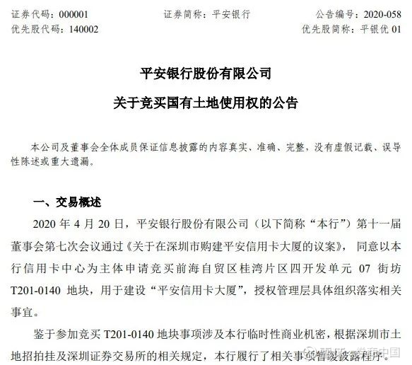 招商银行(600036):每股净资产 22.3元,每股净利润 3.13元,历史净利润年均增长 26.51%,预估未来三年净利润年均增长 14.28%,更多数据见:招商银行600036核心经营数据 招商银行的当前股价 31.63元,市盈率 8.82,未来三年的估值假设和预期收益率如下:15倍PE,预期收益率 121.54%;20倍PE,预期收益率 195.38%;25倍PE,预期收益率 269.23%;30倍PE,预期收益率 343.07%。 中国平安(601318):每股净资产 36.83元,每股净利润 8.41元,历史净利润年均增长 31.19%,预估未来三年净利润年均增长 15.17%,更多数据见:中国平安601318核心经营数据 中国平安的当前股价 71.44元,市盈率 8.74,未来三年的估值假设和预期收益率如下:15倍PE,预期收益率 169.75%;20倍PE,预期收益率 259.67%;25倍PE,预期收益率 349.58%;30倍PE,预期收益率 439.5%。 平安银行(000001):每股净资产 14.07元,每股净利润 1.54元,历史净利润年均增长 37.98%,预估未来三年净利润年均增长 14.11%,更多数据见:平安银行000001核心经营数据 平安银行的当前股价 13.41元,市盈率 9.23,未来三年的估值假设和预期收益率如下:15倍PE,预期收益率 155.95%;20倍PE,预期收益率 241.27%;25倍PE,预期收益率 326.58%;30倍PE,预期收益率 411.9%。 2020年底,平安银行搞了个大动作! 12月30日晚间,平安银行公告,当日该行竞得深圳前海自贸区桂湾片区一块面积约1.39万平米的地块,土地出让金总价款达26.46亿元,所竞买地块将用于“平安信用卡大厦”。 最近几年,金融机构豪掷巨资拿地盖楼或直接购买办公楼的情况并不鲜见。诸如新华养老保险、招联消费金融就在2018年10月各以近18亿元的价格分别竞得桂湾片区的一宗商业用地,作为未来办公楼。而两家公司所拍得的地块恰好与未来的“平安信用卡大厦”隔路相望。 年底斥资26亿拿地 据了解,早在4月下旬,平安银行就通过了关于在深圳购建平安信用卡大厦的董事会议案。 根据该议案,该行董事会同意以平安银行信用卡中心为主体,申请竞买前海自贸区桂湾片区四开发单元07街坊T201-0140地块,用于建设“平安信用卡大厦”。 考虑到参加竞买该地块的事项涉及该行临时性商业机密,根据深圳市土地招拍挂及深交所相关规定,平安银行当时履行了相关事项暂缓披露的程序。 到12月1日,该地块正式公告出让,20天公告期满后,于21日进入挂牌期,至30日15时止。最终,平安银行于12月30日参加了地块竞买活动,以26.46亿元的挂牌底价竞得这一地块。 公开信息显示,T201-0140位于前海桂湾片区四开发单元07街坊,即前海交易广场北区,土地面积约1.39万平方米,总建筑面积14万平米,土地使用年限40年。 (图:平安银行竞买地块大致位置) 据悉,前海交易广场综合体定位为要素交易中心,集超甲级写字楼、高端公寓、服务式公寓、国际五星级酒店及商业街为一体,共分六个地块,合计占地面积7.88万平米,地上群建筑最高47层(限高220米),地下3层。 值得注意的是,由于平安银行竞得的该宗地为带设计方案出让,需按照方案相关要求进行建设,同时为确保地铁1号线运营安全,该宗地的地下空间土建预留工程正在由前海控股进行建设,因此,除一次性付清26.46亿元土地出让金外,平安银行还需一次性付清设计移交费2012.52万元、土地预留工程移交费约4.07亿元。 平安银行此次公告,所竞买地块将用于建设“平安信用卡大厦”,满足该行长远发展需要,符合该行及股东的整体利益,对全行财务状况及经营不构成重大影响。 事实上,作为承载平安银行零售战略转型的排头兵,近年来平安信用卡发展迅猛。截至2020年9月末,平安银行零售贷款占比达58%,信用卡透支余额在零售贷款中的占比达35%,两项数据均稳居上市银行首位。 目前,平安信用卡用户规模、交易规模、发卡量均进入行业第一梯队,成为行业黑马。 安信证券此前发布研报认为,平安银行发展信用卡业务具有两大优势: 一是背靠集团,信用卡可作为集团客户迁徙的重要桥梁,以较低成本获得较为优质的客户; 二是平安口袋银行APP的支持,实现金融服务与消费场景的切换,提高用户体验与粘性。 然而,受2020年疫情影响,信用卡业务不良率出现行业性的上升,平安银行也不例外。上半年,该行信用卡应收账款不良率由年初的1.66%升至2.35%,信用卡不良增量与全行不良增量基本相当。 不过平安银行方面表示,三季度开始,该行信用卡不良率已趋于稳定,且环比下降0.1个百分点。该行三季报还显示,三季度信用卡总交易金额环比提升超过10%,呈现加速恢复态势。 此外,该行在三季报中披露,信用卡新一代核心系统项目进展顺利,已于三季度成功实施多轮生产并行演练验证,该系统投产后将对支撑信用卡业务快速发展、加快技术架构转型具有重要意义。 金融机构拿地、买楼并不鲜见 事实上,一直以来,金融机构拿地建设办公楼,甚至直接购买办公楼的情况并不鲜见。 平安银行公告当晚,另一家全国性股份行——民生银行也通过了关于购置成都分行新办公楼的董事会决议。 更早之前,招行曾在2016年底竞得深圳市南山区深圳湾超级总部基地的商务服务用地使用权(宗地编号为T207-0051),土地使用面积近3.6万平米,总价款近60亿元。该行披露,购买该地块土地使用权的目的是建设招行全球总部大厦。 新华养老保险、招联消费金融则在2018年10月各以近18亿元的价格分别竞得深圳前海桂湾片区的一宗商业用地,作为未来总部大楼,地块土地面积分别为6616.94平米、7154.55平米。 此外,2019