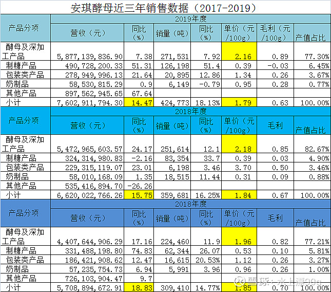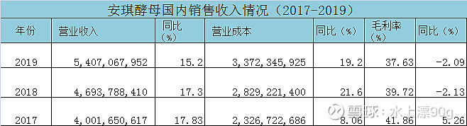 安琪酵母(600298):每股净资产 5.82元,每股净利润 1.04元,历史净利润年均增长 24.4%,预估未来三年净利润年均增长 13.35%,更多数据见:安琪酵母600298核心经营数据 安琪酵母的当前股价 31.13元,市盈率 30.23,未来三年的估值假设和预期收益率如下:15倍PE,预期收益率 -27.05%;20倍PE,预期收益率 -2.74%;25倍PE,预期收益率 21.58%;30倍PE,预期收益率 45.89%。 一、市场地位 酵母类产品,亚洲第一、全球第三,这几年差别不大,全球酵母类产值增速在6.2%,有放缓趋势。 以下是2018年的国内的相关数据,2019年没找到,估计差不多: 1、安琪酵母在国内酵母市场占据产能优势,拥有7家工厂。国内酵母市场中,安琪酵母市占率第一,约55%。产能分布上,公司拥有湖北、赤峰、伊犁、滨州、雎县等7家工厂,合计年产能15.4万吨。目前公司在国内的酵母产能处于市场绝对领先地位。 2、乐斯福国内市占率排名第二,在国内拥有酵母产能约7万吨。乐斯福是全球最大的酵母生产企业。目前乐斯福中国酵母产能合计7万吨,中国区市占率约14%。乐斯福在中国产能主要包括安徽明光酵母厂(1999年收购,酵母产能约1.4万吨)、广西丹宝利酵母有限公司(2006年与东糖集团在广西来宾合办,酵母产能约3万吨)、以及新建的年产2万吨活性干酵母及1万吨酵母抽提物生产线项目(2016年与湘桂集团合办,2019年竣工)。 3、英联马利国内市占率排名第三,在国内拥有酵母产能约4万吨。英联马利目前在国内拥有5家酵母工厂包括河北马利、番禺马利、新疆马利、烟台马利(1.8万吨产能)、英联马利食品上海有限公司,公司中国工厂合计产能约为4万吨,中国地区市占率约11%。 下面是刚刚统计的,近三年安琪酵母中酵母类产品的全球市占率,每年的销售收入呈增长态势,增速也在放缓,主要受人工材料、加工成本、汇率等一些影响比较大。 二、具体销售情况 1、国外销售情况 总体来看三年来销售收入和成本增幅都差不多,保持在10%以上,毛利率相对来讲没有太大提升,国外的毛利率情况不如国内。 2、国内销售情况 国内的业务的成本增幅还是比较大的,主要是原材料等方面原因,毛利率在下降,国内其他两家巨头的产能也在不断扩张,竞争也是相当激励的,不过收入及毛利率总体情况要高于国外。 3、单价情况 安琪最赚钱的部分就是酵母类产品,其余基本为辅助,比如制糖业务,就基本解决自需,新建蜜糖项目主要是制糖品成本上涨,估摸着盘算自家有粮,心中不慌。 所以主要看酵母产品的销售情况,总产值占全部收入的80%左右,近三年销售量增幅有所下降,市场空间的天花板效应也在凸显。收入方面增幅也是有的,也在下降。单价近三年没有提价,基本保持在2元左右,毛利0.9元不到,单这块的毛利率还是可以的。其余一些零零散散的基本不要看了。 四、总体情况 1、受国际两巨头的份额提升影响,提价方面比较困难,要追上也很难。 2、国内市场有被不断蚕食的风险,要提高市场占有率还得加大营销策略。 3、发展方向还是得继续巩固国内地位的同时,要重点以发达国家为主,消费能力和饮食习惯是需求重点。 4、少搞些乱七八糟的事情,不知道去搞化肥项目是出于什么目的。 5、最后就是,寡头企业买着风险不大,至于赚不赚钱真不好说,反正现在还算便宜,跟了一些,接下来会继续关注业绩预告。 个人观点不构成投资建议,谢谢! @今日话题 @吉普赛007 作者:水上漂90g原文链接:https://xueqiu.com/2851410833/167351930 转载请注明:www.51xianjinliu.com » 安琪酵母业务简要分析 喜欢 (0)or分享 (0)