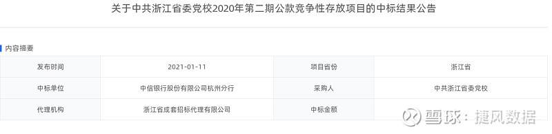 招商银行(600036):每股净资产 22.3元,每股净利润 3.13元,历史净利润年均增长 26.51%,预估未来三年净利润年均增长 14.28%,更多数据见:招商银行600036核心经营数据 招商银行的当前股价 31.63元,市盈率 8.82,未来三年的估值假设和预期收益率如下:15倍PE,预期收益率 121.54%;20倍PE,预期收益率 195.38%;25倍PE,预期收益率 269.23%;30倍PE,预期收益率 343.07%。 中信银行(601998):每股净资产 8.84元,每股净利润 0.88元,历史净利润年均增长 22.6%,预估未来三年净利润年均增长 8.22%,更多数据见:中信银行601998核心经营数据 中信银行的当前股价 5.29元,市盈率 5.34,未来三年的估值假设和预期收益率如下:15倍PE,预期收益率 216.26%;20倍PE,预期收益率 321.68%;25倍PE,预期收益率 427.1%;30倍PE,预期收益率 532.51%。 捷风数据2021-01-11根据公开信息搜集发现:【中信银行,601998】的中信银行股份有限公司杭州分行《关于中共浙江省委党校2020年第二期公款竞争性存放项目的中标结果公告》。 以下是【中信银行,601998】信息摘要的截图: 数据来源:捷风数据_jiefengnews 接下来,我们小编整理了近期【中信银行,601998】的部分经营动态如下,各位大佬可以参考: 1、捷风数据于2021-01-11根据公开信息搜集发现:【中信银行,601998】的中信银行股份有限公司杭州分行《关于中共浙江省委党校2020年第二期公款竞争性存放项目的中标结果公告》; 2、捷风数据于2021-01-06根据公开信息搜集发现:【中信银行,601998】的中信银行股份有限公司杭州玉泉支行《关于浙江省水利科技推广服务中心直属企业战略合作银行选择项目的评标结果公告》; 3、捷风数据于2021-01-05根据公开信息搜集发现:【中信银行,601998】的中信银行股份有限公司合肥分行《发行PPN非公开定向债务融资工具主承销商招标项目中标结果公告》; 4、捷风数据于2020-12-30根据公开信息搜集发现:【中信银行,601998】的中信银行股份有限公司温州分行《关于平阳县城市建设投资有限公司定向债务融资工具承销项目中标结果的公告》; 5、捷风数据于2020-12-30根据公开信息搜集发现:【中信银行,601998】的中信银行股份有限公司温州分行《平阳县城市建设投资有限公司定向债务融资工具承销项目开标结果》; 6、捷风数据于2020-12-30根据公开信息搜集发现:【中信银行,601998】的中信银行股份有限公司杭州萧山支行《关于杭州空港投资开发有限公司选聘战略合作银行招标的中标公示》。 以下是【中信银行,601998】部分经营动态的截图: 数据来源:捷风数据_jiefengnews 了解更多【中信银行,601998】的信息,请关注我们捷风数据的动态。 作者:捷风数据_jiefengnews $中信银行(sh601998)$ 作者:捷风数据原文链接:https://xueqiu.com/2536037617/168313285 转载请注明:www.51xianjinliu.com » 中信银行关于中共浙江省委党校2020年第二期公款竞争性存放项目的中标结果公告 喜欢 (0)or分享 (0)