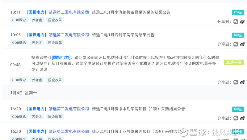 国投电力(600886):每股净资产 5.32元,每股净利润 0.63元,历史净利润年均增长 20.67%,预估未来三年净利润年均增长 7.99%,更多数据见:国投电力600886核心经营数据 国投电力的当前股价 7.51元,市盈率 9.99,未来三年的估值假设和预期收益率如下:15倍PE,预期收益率 57.36%;20倍PE,预期收益率 109.82%;25倍PE,预期收益率 162.27%;30倍PE,预期收益率 214.72%。 捷风数据2021-01-11根据公开信息搜集发现:【国投电力,600886】的靖远第二发电有限公司《靖远二电1月汽封采购采购结果公告》。 以下是【国投电力,600886】信息摘要的截图: 数据来源:捷风数据_jiefengnews 接下来,我们小编整理了近期【国投电力,600886】的部分经营动态如下,各位大佬可以参考: 1、捷风数据于2021-01-11根据公开信息搜集发现:【国投电力,600886】的靖远第二发电有限公司《靖远二电1月小汽轮机备品采购采购结果公告》; 2、捷风数据于2021-01-11根据公开信息搜集发现:【国投电力,600886】的靖远第二发电有限公司《靖远二电1月汽封采购采购结果公告》; 3、捷风数据于2021-01-04根据公开信息搜集发现:【国投电力,600886】的靖远第二发电有限公司《靖远二电1月份净水剂采购项目(1项)采购结果公告》; 4、捷风数据于2021-01-04根据公开信息搜集发现:【国投电力,600886】的靖远第二发电有限公司《靖远二电1月份工业气体采购项目(2项)采购结果公告》; 5、捷风数据于2020-12-30根据公开信息搜集发现:【国投电力,600886】的靖远第二发电有限公司《靖远二电12月进口轴承急购采购结果公告》; 6、捷风数据于2020-12-30根据公开信息搜集发现:【国投电力,600886】的靖远第二发电有限公司《靖远二电12月份电动机采购项目(1项)采购结果公告》。 以下是【国投电力,600886】部分经营动态的截图: 数据来源:捷风数据_jiefengnews 了解更多【国投电力,600886】的信息,请关注我们捷风数据的动态。 作者:捷风数据_jiefengnews $国投电力(sh600886)$ 作者:捷风数据原文链接:https://xueqiu.com/2536037617/168326000 转载请注明:www.51xianjinliu.com » 国投电力靖远二电1月汽封采购采购结果公告 喜欢 (0)or分享 (0)