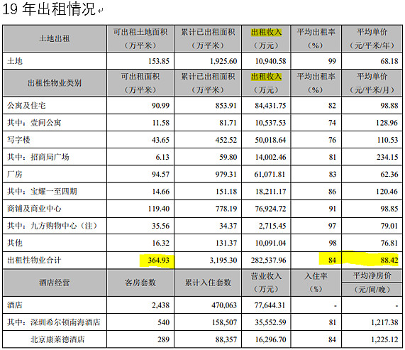 招商蛇口(001979):每股净资产 8.24元,每股净利润 1.89元,历史净利润年均增长 40.47%,预估未来三年净利润年均增长 20.71%,更多数据见:招商蛇口001979核心经营数据 招商蛇口的当前股价 16.77元,市盈率 11.01,未来三年的估值假设和预期收益率如下:15倍PE,预期收益率 197.34%;20倍PE,预期收益率 296.45%;25倍PE,预期收益率 395.56%;30倍PE,预期收益率 494.68%。 如果将收入来源与企业的具体资产一起研究,而非仅仅研究企业的一般特征,分析技术就可以大显身手了,尤其是当收入大部分来源于投资收益或其他固定可靠的资源时。 不同于招商蛇口财报中的按行业的收入划分社区与园区开发运营,若将收入与资产进行关联,可分为1)地产开发销售(主营)、2)房产出租两个主要方面。按照收入来源进行资产分类对企业的经营状况、可持续性及估值等方面的判断也具有重要意义;这里主要对2)房产出租业务及涉及的税金进行浅析,并简要估值。 投资性房地产概念与会计处理模式 与大众经常提到的拿地、开发卖楼一起,房产、土地出租同样是房企的主营业务收入重要组成部分,不同的是卖楼和出租是独立核算的。用于1)赚取租金的房产、土地或者或2)持有并准备增值转让的土地都会被核算为投资性房地产(简称“投房”)。国内第2)种炒地皮的情形少见,主要是1)中的情况。 与房企拿地盖楼后销售中被核算成存货不同,投房与固定资产类似有单独科目。会计处理方面有“成本模式”和“公允价值模式”两种,一家房企选定计量模式内部统一规则,且后不允许随意变更;国内通常采用“成本模式”。成本模式核算下投房类似固定资产,会有相应的累计折旧、减值准备科目。 投资性房地产账面资产价值 从蛇口的财报中可以看到19年投房账面价值增加至903.7亿,其中主要是前海土地增加所致,在18、17、16年底的金额分别为398、277和254亿,增幅较大。 在手的投房资产不断增加,相对应的出租收入也应是增加的,但与销售立即变现一次性获得收入不同,作为投房的厂房商铺、酒店、写字楼、公寓等,其收益是长期随着经济增长平滑向上的。账面上确认成投房(实际投入使用时点)与实际获取收入之前,中间还有投入、招商、运营持续的管理动作。比如19年财报中提到 “公司在前海土地整备范围内共拥有计容建面 455.84 万平米的项目储备(不含人才用房),截至 2019 年底有 428.84 万平米的项目储备未开工。”这部分前海储备只是土地,暂时无法带来收入,所以前景美好,还需漫漫等待。可以说目前带来主要出租收入的投房资产是19年初约400亿部分。 投房收益-出租收入 从15-19年财报披露的出租情况可以看到,这部分的收入在稳步的逐渐提升。剔除金额较小的土地出租外,房产出租收入在15到19年从约24亿提升50%到36亿。 20年的预测按照40.5亿考虑,因疫情酒店业务受疫情影响普遍减收10%。参考统一来源数据,19年克而瑞统计运营收入33.6亿低于蛇口财报实际36亿,20年运营收入统计39.2亿,若存在类似偏差可按照40.5亿保守估计。(不是所有统计数据都靠得住,还得以财报披露为准) 出租收入的收益质量分析 从18、19年财报披露可以看出,在出租物业如公寓住宅、写字楼、厂房、商铺及商业中心等合计的平均单价由77.62元上升至88.42元,具体不展开;平均出租率由86%降至84%主要是可出租面积增加所致。可以说随着商业的发展和居民生活水平的提升,商业出租的收益可以做到逐步的量价双升。 简要说完这些后,一个直观的数字是是400亿的投房资产带来了40亿的年租收入,年化回报率10%。与北京写字楼均价月均200-300元的水平相比,蛇口平均租赁收入不到100块的商业房产明显不高,那造成这么高回报率的原因就在于投房资产的账面价值过低。因为是历史的“成本模式”会计处理,早些年千元/平米成本入账的房产,现在已经价值几万甚至十万了。这里不是为了说明蛇口投房资产市值应该多少,因为核心资产是不会轻易售卖的;既然售卖可能性很低,谈变现价值显得无太多意义,但低成本仍然会以其他方式给估值带来重大影响。低成本带来的主要影响体现在每期的租赁成本中。 投资性房地产成本 介绍完收入部分再来看成本。出租房产毫无疑问最主要的成本就是房子本身,成本不会有大金额现金流出,主要是资产本身的折旧。账面价值在成本模式下计入成本的部分是通过投房的折旧/摊销科目,与固定资产折旧摊销入成本费用类似。独立核算的投房的折旧摊销在财报中也有例行披露:直线法折旧,剔除残值后分为20-30年使用寿命进行折现。 19年增加的折旧计提金额7亿,而18年的折旧为4.7亿,可以看出新增的投房带来了大量的折旧,按照7个亿来考虑,折旧占到了40亿租金收入的17.5%。实际上如果按蛇口18年底400亿的投房都按照30年最低折旧率计算,年折旧成本应该为400/30=13.33亿,18年实际折旧远低于13亿说明大量的投房投入使用已经超过20-30年使用寿命不再计提折旧;19年的折旧金额较18年增加2.3亿,是因新增确认的投房资产导致。 出租收入的税金成本 要说出租业务从收入到利润,中间扣减的最大的项还真不一定是折旧,而且折旧只是当期会计记成本的处理方法,实际没有现金付出(出血);真正放血的扣减项是税金,而且房产税又被拿来冷饭热炒多年,在此一并简要分析。 把蛇口的全部出租业务当成一家独立核算自负盈亏的子公司(蛇口出租),每笔出租收