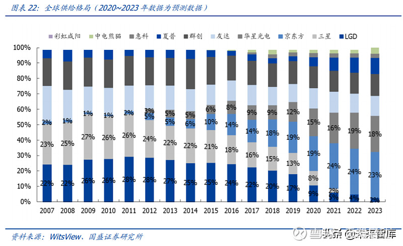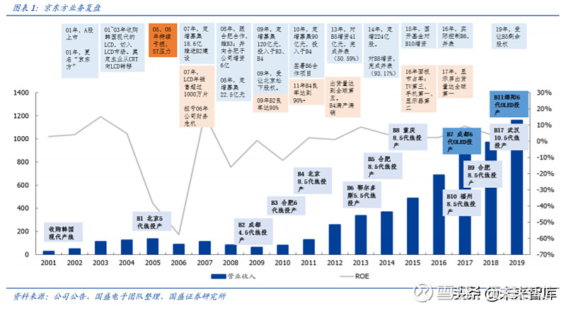 京东方A(000725):每股净资产 2.49元,每股净利润 0.1元,历史净利润年均增长 0.0%,预估未来三年净利润年均增长 39.08%,更多数据见:京东方A000725核心经营数据 京东方A的当前股价 4.25元,市盈率 77.5,未来三年的估值假设和预期收益率如下:15倍PE,预期收益率 -5.05%;20倍PE,预期收益率 26.6%;25倍PE,预期收益率 58.25%;30倍PE,预期收益率 89.9%。 一、京东方:利润与机制大拐点,面板龙头有望腾飞 京东方科技集团股份有限公司(BOE)创立于 1993 年 4 月,是一家为信息交互和人类 健康提供智慧端口产品和专业服务的物联网公司。核心事业包括端口器件、智慧物联和 智慧医工三大领域。1993 年王东升带员工创业“东方电子集团”,1997 年 B 股上市,2000 年 A 股上市,2001 年正式更名京东方,并决定从 CRT 转型 LCD。 $京东方A(SZ000725)$ $贵州茅台(SH600519)$ $恒瑞医药(SH600276)$ #银行股业绩靓丽股价大涨# #白酒股大转弯酒鬼酒两连跌停# #传小米被美国列入与中国军方相关名单# #京东方A# 公司前身为北京电子管厂。2003 年京东方 3.8 亿美元收购了韩国现代电子液晶业务 (G2.5\G3\G3.5),标志中国进军液晶平板显示器生产领域。2009 年后,京东方连续上 马北京、合肥、重庆、福州四条 G8.5 线。从并购、消化、吸收到再创新,建立公司技术、 制造、营销、供应链和专业管理体系。在早期“海外收购、自主建线”的扎根战略提升 核心技术竞争力,率先形成市场优势。 公司筹划大型国有企业股权激励。公司推动股票期权和限制性股票激励计划,合计不超 过 9.8 亿股,占总股本 2.8%,覆盖对象 2974 人。其中股票期权授予 6.4 亿股,行权价 5.43 元/股。 启动 20 亿回购进行激励,加速市场化步伐。限制性股票 3.4 亿股,行权价 2.72 元/股。 限制性股票来源于公司从二级市场回购。公司启动回购计划拟回购 2.5~3.5 亿股,回购 价格不超过 7 元/股,回购金额不超过 20 亿元,回购期限为 3 个月内。 公司上半年实现营收 608.67 亿元,同比增长 10.59%。2020Q2 单季度实现营业收入 349.87 亿元,同比增长 22.40%;单季度实现归母净利润 5.69 亿元,同比下降 7.77%; 单季度实现扣非归母净利润 3.26 亿元,同比增长 8.97%。公司二季度单季度净利润环 比提升 8.28 亿元,经营层面迎来大幅改善。 这里给球友一个好的机遇!!! 为了感谢大家的支持,特此发送福利给大家,2021新开始,是选择优秀标的的好时机。我结合财报研究了两百多只个股,结合大数据分析,筛选找到十只有翻倍潜力的龙头,基本面优秀,是行业绝对龙头,护城河宽,业绩一直保持稳步增长,属于防御性的大盘蓝筹股。 启动信号明显,极大概率成为翻倍gu,点击蓝色字体即可获得! D、S、H 三大事业板块均录得增长。收入结构上看,端口器件(D)收入 564 亿元,同 比增长 11%;智慧物联(S)收入 78 亿元,同比增长 3.6%;智慧医工(H)收入 7 亿 元,同比增长 6.16%。在新冠疫情等事件冲击下,公司各业务线仍保持增长,在智慧物 联和智慧医工等获得较快发展,物联网转型战略稳步推进。 显示业务龙头地位进一步巩固,出货量逆势增长。公司上半年显示器件整体出货量继续 保持全球第一,出货量同比增长超 15%。LCD 智能手机液晶显示屏、平板电脑显示屏、 笔记本电脑显示屏、显示器显示屏、电视显示屏等五大主流应用领域出货量仍保持全球 第一。公司北京第 8.5 代 LCD 生产线单品良率创新高;重庆第 8.5 代 LCD 生产线持续产 品小型化,生产水平进一步提升;合肥第 10.5 代 LCD 生产线单月投入基板数创新高。 公司布局成都、重庆两个智慧系统创新中心项目,物联网转型进入落地阶段。成都项目 拟投资 60 亿元,重庆项目拟投资 48 亿元,计划于年内开工,结合公司在显示、传感、 系统的资源优势,将打造五大平台。 智慧城市、智慧物联等产业快速发展,公司加速落 地产业布局,有利于迅速快速切入市场。 周期底部见韧性,乐观展望未来行业景气下的业绩。本轮面板涨价启动于 6 月份,因此 Q2 TV 面板均价比 Q1 略低。根据 witsview 数据,面板价格从 2020 年 5 月份的底部上 行涨幅接近 25%,涨价幅度最高的 32 寸已经到达 30%以上。在 Q2 均价压力下,京东 方仍然实现扣非净利润 3.26 亿(环比提升 8.28 亿),表明公司在逆周期中的抗压能力(经 营改善、产品调配、降本提效等),同时也意味着 Q3 业绩展望可以乐观一些。 大周期明确向上,明年供不应求确定性强。三周期(库存周期、产能周期、技术周期) 框架下,短期库存周期下需求拉动价格快速修复,年底韩厂关闭加大供需紧张,转单压 力进一步催化行业上行。LCD 长期占据主流技术,Mini LED 背光产品商业化即将启动, 坚定看好面板行业大周期上行。 这轮周期有什么不同?两个尾声、一个定局:产能扩张尾声,区域竞争尾声,二线面板 厂商去化,行业双寡头定局,周期性有望减弱。龙头厂商产业地位更高,潜在 ROE、FCF 中枢修复,重点推荐京东方。 二、技术周期:液晶面板是什么? 显示面板大尺寸以 LCD 为主,小尺寸以 OLED+LCD 为主。显示面板主要包括 LCD 和 OLED。LCD 是当前显示面板的主流,应用于电视、电脑、平板、手机。OLED 在中小尺 寸(手机、手表)渗透率逐渐提升。 液晶显示器件核心是背光模组和面板模组。面板模组由外向里分别为彩色滤光片、偏光 片、玻璃基板、液晶、TFT 阵列、玻璃基板。 典型 LCD 面板产线的布局分为:TFT-Array(下基板玻璃)段,CF(彩色滤光片)段, Cell(液晶注入封胶成盒、