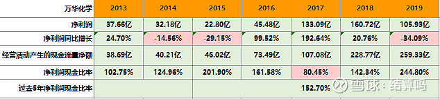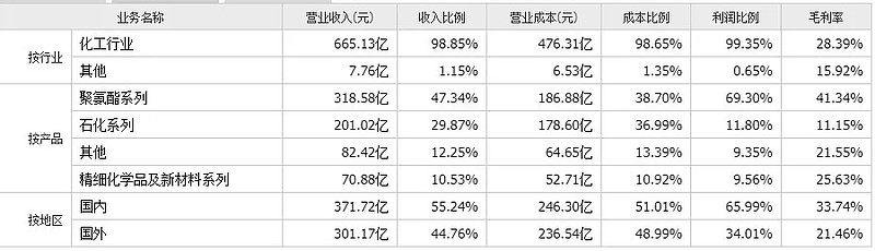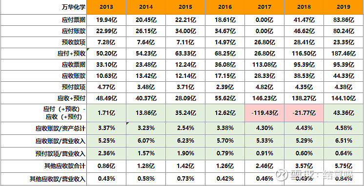 万华化学(600309):每股净资产 12.85元,每股净利润 3.88元,历史净利润年均增长 26.74%,预估未来三年净利润年均增长 12.48%,更多数据见:万华化学600309核心经营数据 万华化学的当前股价 41.59元,市盈率 26.38,未来三年的估值假设和预期收益率如下:15倍PE,预期收益率 99.14%;20倍PE,预期收益率 165.52%;25倍PE,预期收益率 231.9%;30倍PE,预期收益率 298.28%。 在此将对万华化学(600309)的分析分享,只用作自己投资成长的记录和学习交流,不构成任何投资建议。 主营业务,经营模式及行业简况 1 公司主要从事聚氨酯(MDI、TDI、聚醚多元醇),丙烯及其下游丙烯酸、环氧丙烷等系列石化产品,SAP、TPU、PC、PMMA、有机胺、ADI、水性涂料等精细化学品及新材料的研发、生产和销售。 其中MDI、TDI是制备聚氨酯最主要的原料之一,聚氨酯具有橡胶、塑料的双重优点,广泛应用于化工、轻工、纺织、建筑、家电、建材、交通运输、航天等领域。 万华化学的营收在A股相关公司里目前排名第一。 公司财务状况分析 2 1、通过总资产判断公司实力及扩张能力 从图表可以看出,万华化学的同比增长速度除个别年份外,一直保持在两位数以上,总资产规模远远甩开同行业竞争对手,公司龙头地位非常稳固。 2、通过资产负债率判断公司债务风险 万华化学的资产负债率较高,虽然近些年呈下降趋势,但资产负债率依然超过了50%,且与同行业竞争对手相比依然处于较高水平。 公司债务状况,近些年来确实有点难看。账上现金很少,发展主要靠借贷,有息负债很高,资产负债率很高,但是大股东质押率为0。 这说明公司这几年忙着扩张,占领市场,需要大笔资金,虽说借了不少钱,但是公司产品畅销,未来增长稳定,还是有人愿意借给他,所以这方面不必担心公司还不起借贷出现债务违约的情况。 3、看有息负债和货币资金判断公司偿债风险 公司货币资金远远小于有息负债,差额在200亿之上,且货币资金占总资产只有4%,经营上面长此以往指标比较难看,需要观察后期是否有提升。 4、通过“应收应付”和“预付预收”判断公司行业地位 万华化学的{(应付+预收)—(应收+预付)}指标近三年波动极大,按理说行业龙头公司不应有这么剧烈的波动,原因是2017-2018年应收票据大幅度增加。当然这伴随着营业收入的增加, 指标于2019年恢复正常,后续有待观察。 5、通过固定资产判断公司的类型 公司固定资产占比较高,属于重型资产公司,且与同行业竞争对手相比,其固定资产比率依然高一大截,抗风险能力偏弱。 6、看投资类资产,判断公司是否不务正业 万华化学专注主营业务,投资类资产可忽略不计。 7、通过营业收入判断公司的行业地位及成长能力 万华化学近年来营收同比增长波动较大,化工原材料产品受经济周期影响。市场行情及原材料变化都会导致营收发生变化,不过总体来看10年中,营收涨了7倍多,复合增长率24%已经是不错的表现。 8、通过毛利率判断公司产品的竞争力 万华化学的产品平均毛利率在30%左右,2019年首次跌破30%,不过对比行业竞争对手,其产品毛利率依然是最高的,说明产品竞争力较强。 9、通过费用率判断公司成本管控能力 万华化学的费用率较低,成本管控能力较强。 10、通过主营利润判断公司的盈利能力及利润质量 万华化学的主营利润率在17%左右,除2017年之外基本保持稳定,其主营利润率一直优于同行业竞争对手,盈利能力和利润质量都可以接受。 11、通过净利润判断公司的经营成果及含金量 万华化学的净利润同比增长波动较大,说明公司经营状况受行业周期性影响较大,近五年平均增速大约在46%左右,说明公司成长还是比较好的,而且其净利润现金比率较高,说明经营成果含金量较高。 12、通过归母净利润判断公司自有资本的获利能力 除个别年份外,公司的ROE指标一直保持在20%之上,说明资本获利能力较强,投资价值不断提升。 13、通过经营活动产生的现金流量净额,判断公司的造血能力 我通过三季报研究了两百多只个gu,结合大数据分析,选了十只2021新年金gu。 公司业绩良好连续四年近利润保持良好增长,且公司经过前期调整,处于严重低估状态,筑底吸筹已基本完成,当下资金开始抢筹,启动信号明显,极大概率成为新年翻倍gu。投资是认知的变现,想领取的朋友可以在谋。信 找:y r h 字母和 6 6 9 4 数字添加备注:十倍,就可以了。 公司现金流量净额近五年持续上升,说明公司造血能力不断加强。 14、通过分红率判断公司品质 万华化学近年的分红率稳定在40%以上,对股东非常厚道。 行业分析 3 01 行业规模及市场竞争 万华化学有三大板块:按营收依次是聚氨酯(约45%)、石化产品(约35%)、精细化学品和新材(约10%)。其中聚氨酯板利率最高,最攒钱,是公司拳头产品,贡献了公司的主要利润。 大宗异氰酸酯分为MDI和TDI两类。2019年,全球MDI市场需求约740万吨,万华全球市场份额、产能、产品质量行业领先;在中国市场,万华的市场份额超过40%。 石化业务目前主要发展C3和C4烯烃衍生物。国内丙烯需求巨大,2019年表观消费量3700多万吨,丙烯供应依然存在较大缺口,对外依存度较高。万华拥有丙烯产能75万吨/年,现已成为国内重要的丙烯及衍生物制造商。 精细化学品及新材料业务部分,万华是国际先进的TPU供应商,产品广泛应用于鞋材、线缆、汽车、电子及医疗等应用领域。万华一期8万吨/年PMMA项目一次性开车成功并产出合