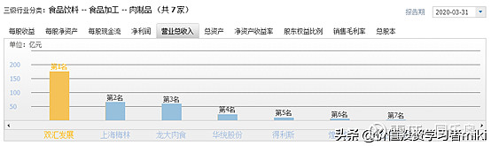 双汇发展(000895):每股净资产 4.58元,每股净利润 1.49元,历史净利润年均增长 26.47%,预估未来三年净利润年均增长 9.35%,更多数据见:双汇发展000895核心经营数据 双汇发展的当前股价 34.38元,市盈率 21.94,未来三年的估值假设和预期收益率如下:15倍PE,预期收益率 -15.03%;20倍PE,预期收益率 13.29%;25倍PE,预期收益率 41.61%;30倍PE,预期收益率 69.93%。 过去十年双汇发展的表现,可称得上是消费股中的肉制品龙头,泡面的时候加根双汇火腿肠,美滋滋,如果自己是双汇的股东就更好了。 在此将对双汇发展(000895)的分析分享,只用作自己投资成长的记录和学习交流,不构成任何投资建议。 这波牛市,终于被人发现了双汇的价值。 1 主营业务,经营模式及行业简况 公司主营为畜禽屠宰,肉类食品的加工销售和食品包装。 消费者对双汇更熟悉的必然是他的加工肉制品,也就是直达C端的产品;但是也不能忽视占双汇营收64.83%的屠宰业务。虽然屠宰业务的毛利只有9.22%,但是也比同行业的雨润4%以下的毛利高得多。 双汇的战略倾向于围绕肉类加工产业做大做强屠宰和肉制品两大主业,适当发展饲料业和养殖业等产业,完善产业链,提高产业化经营水平。双汇生鲜肉渠道分为四大类,份额从大到小为特约店、商超、农贸、餐饮加工。与雨润、龙大、中粮肉食等竞争对手相比,双汇在农贸批发、餐饮加工等走量为主的低附加值渠道占比偏低,而特约店、商超等更能实现品牌溢价的渠道占比较高,科学化的渠道结构有利于推高产品整体售价。 从营收规模来看,在肉质品加工行业双汇行业领军地位还是很明显,比第二三名的上海梅林,龙大肉食高出一倍还多,当然, 竞争者还有个没上市的金锣集团;不过目前看来暂时不能动摇双汇的地位。 2 公司财务状况分析 1、通过总资产判断公司实力及扩张能力 双汇发展近5年增长率振幅较大,19年增长重回25%以上,感觉是受到了猪肉价格上涨所致,肉贵了香肠吃的就多了?/(ㄒoㄒ)/~~,从季度报数据来看,增长率不降反增,大概率2020年可以保持20%以上的增长率。 2、通过资产负债率判断公司债务风险 双汇发展近5年的资产负债率不断提高,虽然同行业对比远好于行业竞争对手,公司债务违约风险较低,但依然值得关注。 3、看有息负债和货币资金判断公司偿债风险 公司近年来短期借款大幅增长,而与17年对比,18、19年货币资金大幅降低,勉强覆盖有息负债,且货币资金占总资产比例较低,据公司解释是由于分红和增加了银行存款。但毕竟2018年出现负值,以后还是要时刻关注是否有流动性的风险。 4、通过“应收应付”和“预付预收”判断公司行业地位 双汇发展(应付+预收)远远大于(应收+预付)},无息占用上下游公司近45亿的资金,占用资金能力极强,说明其行业龙头地位非常稳固。 5、通过固定资产判断公司的类型 本数值近4年逐年降低,并在19年首次降到40%以下,降为中型资产类公司。不过通过行业对比发现,双汇发展的固定资产比率依然高于竞争对手。 6、看投资类资产,判断公司是否不务正业 双汇发展近两年增加了大笔的投资类金融资产,是新增的银行结构性存款。存货近两年大幅增加,占总资产比例达到三成以上,说明其19年总资产大幅增加主要原因是存货增加所致,这点需要重点关注。 7、通过营业收入判断公司的行业地位及成长能力 双汇发展近四年的营收同比增长比较不稳定,2019年前规模未出现明显增长。笔者认为19年大幅增长是受猪肉价格上涨所致,公司未来的成长能力存疑。 8、通过毛利率判断公司产品的竞争力 双汇发展的平均毛利率在20%左右,虽然不高但远远好于行业竞争对手,说明其产品竞争力较强。 9、通过费用率判断公司成本管控能力 双汇发展的费用率非常低,说明公司的成本管控能力较强,行业地位也非常稳固。 10、通过主营利润判断公司的盈利能力及利润质量 双汇发展的主营利润率在11%左右,已经远远好于同行业竞争对手了,主营利润率不断上升,对比同行业可知,其盈利能力和利润质量都非常不错。 11、通过净利润判断公司的经营成果及含金量 双汇发展的净利润同比增长自18年来重回两位数,但其净利润现金比率大幅下降,净利润增速变大,但含金量降低。 12、通过归母净利润判断公司自有资本的获利能力 双汇发展近4年ROE都在30%以上,而且非常稳定,说明资本获利能力较强,不确定性较低,具有较高的投资价值。 13、通过经营活动产生的现金流量净额,判断公司的造血能力 公司现金流量净额近三年逐年下降,说明公司造血能力受到行业周期的影响,公司可能已经进入成熟稳定期。 14、通过分红率判断公司品质 双汇发展近三年的分红率均大于60%,令人叹为观止,说明其赚到了钱,对股东大方,公司厚道。 3 企业及行业分析 虽然近五年来双汇的财务表现随着周期上下波动,但是股价却稳步爬升,2019年至今更是极为亮眼。那么双汇发展未来预期如何? 01行业所处阶段及市场竞争格局 先说屠宰行业吧,在定点屠宰企业中,落后产能占比较高,仅10%屠宰场实现全机械化,70%屠宰场仍为手工屠宰。 这部分产能很落后,龙头企业有利用自己的资金和规模优势进行兼并。拉长周期看,屠宰行业的集中度提高一直在进行。近8 年来看,规模以上定点企业屠宰量占全国屠宰量的比重在30%-35%,但规模以上定点屠宰企业数量从2012 年4585 家下降至2016 年2907 家,降幅高达37%,说明
