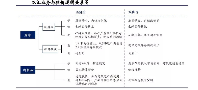 双汇发展(000895):每股净资产 4.58元,每股净利润 1.49元,历史净利润年均增长 26.47%,预估未来三年净利润年均增长 9.35%,更多数据见:双汇发展000895核心经营数据 双汇发展的当前股价 34.38元,市盈率 21.94,未来三年的估值假设和预期收益率如下:15倍PE,预期收益率 -15.03%;20倍PE,预期收益率 13.29%;25倍PE,预期收益率 41.61%;30倍PE,预期收益率 69.93%。 这周我们聊聊双汇发展。 1 企业介绍 双汇这个品牌大家应该都非常熟悉了,大部分读者应该都接触过他们的产品。 双汇前身是河南漯河肉联厂,20 世纪 80 年代连年亏损、资不抵债,1984 年万隆当选厂长开启初期扩张,84-90 年收入从 1000 万扩张到 1 个多亿,从亏损到盈利 500 多万,成为当时中国最大的肉类出口基地。 1998年公司上市,屠宰和肉类加工业为公司核心业务。 2019年,双汇入选BrandZ™最具价值中国品牌100强,荣获“2018-2019年食品安全诚信示范单位”、 “金箸奖”2019年度食品标杆企业等荣誉。 公司目前的主要生产经营区域包括河南、上海、山东、四川、江苏、河北、广东、黑龙江、辽宁、江西、浙江、广西、湖北、安徽、云南、陕西等地,这些区域为我国屠宰及肉类加工行业的重要地域,生猪资源丰富,肉类消费潜力巨大。 按2020年半年报公司的营业收入构成,行业分类:屠宰业占65%、肉制品占38.52%。 2 财务数据 按惯例我们简单看一下双汇的财务数据 净利润:2010年至今复合增长率19.56%,但同时我们也要注意到14年开始双汇的业绩增长并不是特别的快,2014~2016年5%左右,18~19年逐步提升到10%。 今年前三季度扣非净利润增长22%,主要源自特优级产品占比同比提升3.5个百分点,核心产品王中王同比增长13.8%。 同时在销售端2019年度涨价效果充分释放,双汇过去连续6年没有提价,去年下半年,在猪价不断上涨的过程中,开始尝试提价,从2020年的效果看还是不错的,肉制品收入利润创新高。 成本端,鸡肉原料价格下降,生鲜品业务加大冻品出库,同时加大肉类进口、以外补内,三季度进口肉总销量、外销量均基本翻倍增长,有效弥补了国产肉价较高的问题。 经营活动现金流产生的净额和净利润的比值: 收入质量还是很高的 自由现金流:也很不错2015~2019年分别为,35亿、46亿、52亿、37亿。 分红: 双汇的分红率是非常高的,分红率基本保持在70%左右,14年开始分红比例大幅提高,这里部分读者可能会有疑问,双汇14年开始增速并不高,并且大幅提高分红率,是不是行业已经到了天花板。 这里面有一部分原因是为了帮万洲国际收购史密斯菲尔德还债,我们后面再说他们的关系。 毛利率和净利率: 19年、20年有所下降和猪肉价格走高有一定关系。 ROE: 16年以后逐年提升,2019年ROE37% ROIC: 2019年29%。 负债率: 2019年40%, 应收账款: 2019年2.13亿。 从双汇的历史财务数据看至少截止当前企业是非常优秀的,我们下面继续分析,双汇未来是否还能持续优秀,当前是否值得投资。 3 需要思考的地方 01双汇的生意模式 公司的主要业务就是屠宰业和肉制品。 从上面的分析我们可以看到屠宰业占了营业收入的大头65%、但是贡献的净利润较少,贡献利润的20%左右,肉制品贡献利润的70%左右。 下图是双汇发展和猪价的逻辑关系图。 基本上是这个大逻辑: 屠宰业: 猪肉价格高的时候,业务量会减少,收猪成本增高收猪难度加大,产能利用率偏低,会影响到利润。 去年开始猪肉价格一路走高,今年基本都保持在30元/KG以上,从半年报数据可以看到,双汇今年屠宰生猪327.4万头,同比2019年上半年下降61.83%。 常规季度中,当猪价在 10-16 元/KG 区间内,屠宰的头均利润在 50-60 元/头;当猪价超过 16 元/KG 时,头均利润通常下滑到 30 元/头以下,按目前30元/KG的价格,头均利润大约是10~20元。 不过双汇可以通过进口肉降低影响,在国内猪肉价格高的时候,通过罗特克斯采购美国史密斯菲尔德进口肉,中美猪肉价格差比较大,19年至今美国猪肉价格基本在6~8元/kg,即使加上运输成本和关税也低于国内价格。 美国史密斯菲尔德,是万洲国际的子公司,而双汇也是万洲国际的控股企业,万洲国际即前双汇国际控股有限公司,2014年1月21日,双汇国际宣布更改公司名称为万洲国际有限公司。 大概捋一下是这么个关系,万州国际拥有100%史密斯菲尔德的股权,拥有100%罗特克斯的股权,罗特克斯有限公司又拥有70%双汇发展的股权。 简单的说,史密斯菲尔德和双汇发展是一家人,在美国生猪养殖行业,史密斯菲尔德市占率达到 15%,因为美国养殖业更具规模,产量大,同时因为饮食习惯和人口少猪肉使用量低,所以猪肉价格长期低于国内,这就给了双汇一个套利空间。 相比其他肉制品企业,双汇就多了一个平滑成本的渠道。 上面说到双汇发展14年开始大幅提高了分红率,有一部分原因就是为了能帮助万州国际偿还收购史密斯菲尔德时所欠债务。 肉制品业: 双汇现在基本上是这样一个模式,猪肉价格高的时候,本地收猪屠宰后主要用于销售生鲜肉,公司自己的加工肉制品主要用库存肉或进口肉作为原料,猪肉价格便宜的时候,屠宰后的肉更多给自己的加工肉制品做原料使用。 总体来说通过进口和库存肉调节,生猪价格高时,双汇对肉制品加工原材料有一定的平滑能力,当猪肉价格下跌,双汇会有一些受益。 由于非洲猪瘟和新冠的影响,目前的猪肉价格在一个比较高的位置,内三元生猪价格为33元左右/公斤,2016年最高到过20元/公斤,2019年1月在14