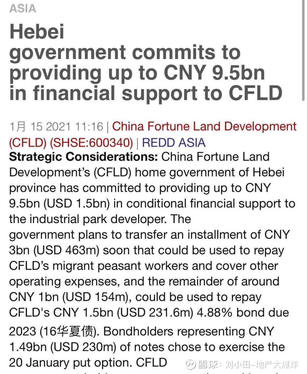 华夏幸福(600340):每股净资产 13.21元,每股净利润 3.79元,历史净利润年均增长 0.0%,预估未来三年净利润年均增长 27.99%,更多数据见:华夏幸福600340核心经营数据 华夏幸福的当前股价 22.48元,市盈率 4.98,未来三年的估值假设和预期收益率如下:15倍PE,预期收益率 430.23%;20倍PE,预期收益率 606.97%;25倍PE,预期收益率 783.71%;30倍PE,预期收益率 960.45%。 今天,地产股出现久违的全线大涨,除了华夏幸福。 事实上,股价已经跌到谷底的华夏幸福本该跟涨的,要不是因为前几天的大消息。 首先是一则出口转内销的消息。 外媒报道HB省政府向华夏幸福提供95亿财务资助,消息写得有鼻子有眼: 先到的30亿,一部分用来偿付农民工工资和其他经营费用,剩下的10亿用来还债。 地方政府介入解决华夏幸福债务问题,这是多大的利好消息呀,足够拉几个涨停来庆祝下。 然而,结果如同市场传闻平安拉来华润要战投华夏幸福一样,华夏幸福方面很快否认了: 暂没收到相关信息。 其次,还是一则来自境外的消息,华夏幸福却没法否认了。 世界三大评级机构之一的穆迪将华夏幸福的展望从“稳定”下调至“负面”,评级从“Ba3”下调至“B2”,并表示“对华夏幸福运营表现疲弱以及未来12-18个月复苏步伐不确定性的担忧。” 2021年才刚刚过去了十几天,华夏幸福却已稳站了行业的风口浪尖。 是引入央企战投? 是平安继续注水? 还是地方政府出手兜底? 相信华夏幸福等不及了,华夏幸福的投资者也等不及了。 在最终的公告出来之前,不妨让子弹先飞一会儿。 要说好华夏幸福这个故事,时间还得拉回到4年前。 01 2016年,得益于环京房价猛涨,华夏幸福销售额首次超过千亿,以1200亿的销售额挺进十强,此外,其账面上还有千亿的待收资金。 巅峰时刻,倍儿高兴的华夏幸福董事长王文学特地花4000万在海南三亚开了个年会,会场就设在喜来登酒店的露天花园里。 彼时,华夏幸福的员工们坐在海边,吃着不限量的龙虾、鲍鱼、烤猪,听着老板讲当年的创业故事,看着郎朗、汪峰、崔健、宋小宝等明星轮番上台演出,海风徐徐的吹,谁都预料不到几个月后以后,会有危机来临。 在产业园区业务渐入佳境的背景下,2017年,王文学拿着卖房得来的1000多亿,向液晶面板、孵化器、养老、新能源汽车等领域挺进。 商人不会做不赚钱的买卖,在王文学看来,这些都可以与华夏幸福自身业务结构和发展战略,形成联动发展模式。 赚不赚钱另说,但华夏幸福真的是大手笔。 比如在足球领域,明明只有球队5个国内球员注册名额,却硬生生斥重金买了7个球员,其中任航签字费高达8000万,张呈栋转会费1.5亿…… 一番操作,让足球圈的人都啧啧称奇: 华夏幸福不是“有钱任性”,而是摆明了要成为豪门的立场。 好运还在接踵而来。 当年4月,“雄安新区”千年大计正式宣布, “造城”的华夏幸福因为在那里圈了2000多亩地,成为战略的最大受益者。 股票一片飘红下,一向有政治觉悟的王文学,要求内部不得转发任何有关华夏幸福和雄安相关的微信,并发布公告: 坚决服从国家设立雄安新区的总体安排。 02 站在风口上得来的钱,往往在寻找其他风口的途中花得一干二净。 关键是环京房价高潮,很快迎来史上最严厉的调控,环京楼市进入下行通道后,华夏幸福很快遭遇了现金流危机。 华夏幸福重仓的环京板块,这几年对它的打击有多大?比如霸州孔雀城,单价最高时达到1.8万,如今降到了8500元-9500元。 这只是一个极小的例子。 要知道孔雀城,本来是华夏幸福的现金奶牛,帮助其实现园区土地变现,一卖不动,华夏幸福“以房养园”的弊端就会显现。 2018年3月,华夏幸福被爆资金链断裂;7月,传来华夏幸福的控股股东华夏控股将其19.7%股权转让给平安的消息;之后,平安再增持华夏幸福5.69%股权,总持股达到25.25% 马明哲就是在那时,统共花了不到200亿元,让平安成为了华夏幸福的第二大股东。 但如今把账细细一算,也不知是王文学要哭晕在厕所里,还是马明哲要哭倒在厕所里? 平安接手3年,被骂了吸血鬼3年,据说马明哲现在是不想再注资了。 而王文学那边,华夏幸福至今也没有走出困境,并且对赌失败后,王文学是要掏出真金白银去补偿平安的。 王文学要如何补偿平安,自然不需要我们操心,毕竟他手上还有华夏幸福的股份可以套现,再不济还有知合资本这个壳儿。 这都是大佬之间的事了。 03 说回华夏幸福。 当年平安一接手,平安系的孟森和王威就加入了华夏幸福董事会,2019年马明哲又将自己的好朋友——华润置地的灵魂人物吴向东,派去华夏幸福当CEO暨总裁。 如今回看,吴向东坐镇华夏幸福的整个过程,就是手起刀落。 先是瘦身裁员。 比如,2017年下大力气投入的产业小镇,因为模式与产业新城太雷同,又没有产能,裁! 大刀阔斧下,产业小镇从巅峰时期的1500人变成了600人,后来又变成了用来善后的5人。 产业新城是 “现金黑洞”,既然不能开源那就节流,一场瘦身运动下来,人员就少了一半,2020年受疫情影响又裁了30%。 冰冷的数字背后,是几千个人员的动荡,吴向东的目标只有一个,帮助华夏幸福活下去。 然后是设置“北京-深圳”双总部。 原有的产业新城和房地产业务仍由北京总部领衔,吴向东领衔的南方总部,主要是发展转型和创新业务。 设立双总部的目的,也是在想现金流紧张的情况下,既能保持产业新城的优势,又能通过“住宅开发+持有物业+增值服务”来提升