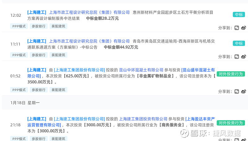 上海建工(600170):每股净资产 2.83元,每股净利润 0.29元,历史净利润年均增长 23.03%,预估未来三年净利润年均增长 16.21%,更多数据见:上海建工600170核心经营数据 上海建工的当前股价 3.23元,市盈率 7.79,未来三年的估值假设和预期收益率如下:15倍PE,预期收益率 111.36%;20倍PE,预期收益率 181.81%;25倍PE,预期收益率 252.26%;30倍PE,预期收益率 322.71%。 捷风数据2021-01-19根据公开信息搜集发现:【上海建工,600170】的上海市政工程设计研究总院(集团)有限公司《青岛市黄岛区交通运输局-西海岸新区与机场交通联系通道方案(方案编制)-中标公告》,公示金额为44.92万元。 以下是【上海建工,600170】信息摘要的截图: 数据来源:捷风数据_jiefengnews 接下来,我们小编整理了近期【上海建工,600170】的部分经营动态如下,各位大佬可以参考: 1、捷风数据于2021-01-19根据公开信息搜集发现:【上海建工,600170】的上海市政工程设计研究总院(集团)有限公司《惠州新材料产业园起步区土石方平衡分析项目方案再设计编制服务中选结果》,公示金额为28.2万元; 2、捷风数据于2021-01-19根据公开信息搜集发现:【上海建工,600170】的上海市政工程设计研究总院(集团)有限公司《青岛市黄岛区交通运输局-西海岸新区与机场交通联系通道方案(方案编制)-中标公告》,公示金额为44.92万元; 3、捷风数据于2021-01-18根据公开信息搜集发现:【上海建工,600170】的上海申宝建筑工程有限公司《广灵一路广中四村甲4号装修项目》,公示金额为2631.56万元; 4、捷风数据于2021-01-18得知【上海建工,600170】进行了排污许可证的领取申请,该企业主要从事制造业,非金属矿物制品业,石膏、水泥制品及类似制品制造,水泥制品制造; 5、捷风数据于2021-01-18根据公开信息搜集发现:【上海建工,600170】的上海市政交通设计研究院有限公司《徐汇区架空线入地及合杆配套整治工程—淮海中路(高安路—陕西南路)中标候选人公示》,公示金额为118.63万元; 6、捷风数据于2021-01-15根据公开信息搜集发现:【上海建工,600170】的上海市政工程设计研究总院(集团)有限公司《邕江上游引水一期工程-可心江原水专线工程设计评标结果公示》。 以下是【上海建工,600170】部分经营动态的截图: 数据来源:捷风数据_jiefengnews 了解更多【上海建工,600170】的信息,请关注我们捷风数据的动态。 作者:捷风数据_jiefengnews $上海建工(sh600170)$ 作者:捷风数据原文链接:https://xueqiu.com/2536037617/169183482 转载请注明:www.51xianjinliu.com » 上海建工青岛市黄岛区交通运输局-西海岸新区与机场交通联系通道方案方案编制-中标公告 喜欢 (0)or分享 (0)