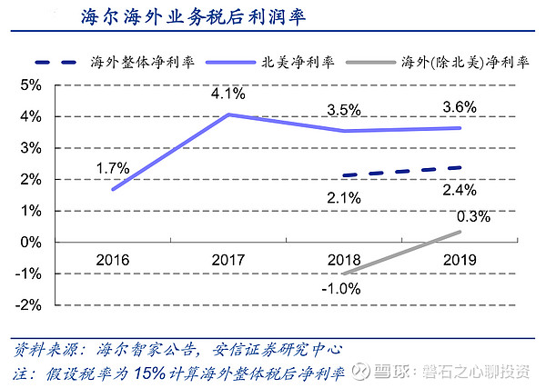 海尔智家(600690):每股净资产 6.91元,每股净利润 1.21元,历史净利润年均增长 33.17%,预估未来三年净利润年均增长 12.41%,更多数据见:海尔智家600690核心经营数据 海尔智家的当前股价 15.25元,市盈率 11.08,未来三年的估值假设和预期收益率如下:15倍PE,预期收益率 69.05%;20倍PE,预期收益率 125.4%;25倍PE,预期收益率 181.75%;30倍PE,预期收益率 238.1%。 整合上市一个措施完成后,海尔智家市值净增2000亿。不过,对长期投资者来说,这只是市值大涨的第一个措施,海外市场的盈利能力也是其中一个措施。 海外疫情蔓延,对于全球化最彻底的海尔智家来说是一个巨大挑战。资本市场也十分关注目前疫情对收入、利润的影响。面对外部的关注,海尔智家在2020年开始了一系列优化措施,目前在海外陆续取得一些成效,最终数据还需要在2020年报里体现。不过,从近期海尔智家海外市场一系列的表现看,已经表现出提升盈利水平的势头了。 那么今天,我们不妨就对海尔智家海外市场近期的表现做个梳理。 先质疑后模仿,如今错过时机的自主创牌投入要更大 改革开放初期,因为国内劳动力廉价、成本低等,国外客户纷纷找上门来做代工,因此那时候代工企业规模和利润得到了快速发展。“贴牌代工”这一成熟模式盛行,从GE到LG,从松下到东芝,从西门子到伊莱克斯,从飞利浦到惠尔浦,几乎所有的世界家电名牌都有中国家电品牌为其做代工。 据不完全统计,全球500强之列的家电企业中,近95%的企业都曾与中国的家电行业建立过贴牌生产合作关系。 而海尔智家却放弃了这一捷径,决定要在海外市场打响自己的品牌。这就意味着,海尔智家必须付出大量费用建设当地制造、研发、运营等体系,前期大量的费用投入,短期内却难以得到利润。再加上各地不同的经济发展水平、家电均价水平、溢价能力等因素,海尔智家的海外利润率水平在一定时期内持续比国内低。 这种质疑一直伴随着海尔智家,但从长期主义的视角来看,先规模后利润,只要基础搭得牢固,自主创牌的利润率自然而然会比贴牌企业有更大的上升空间。 比如在法国,2020年10月份海尔洗衣机整体份额同比提升21%,跃居当地Top3;10月,海尔+Candy双品牌洗衣机在英国、意大利等国均实现收入翻倍增长,市场份额跻身英国、意大利两国Top2;在日本,AQUA洗衣机市场份额已经高达70%;在澳新市场,斐雪派克10月份势头强劲,收入增长24%;在澳洲,海尔洗衣机份额第一;在新西兰,费雪派克、海尔的整体品牌份额第一。 这些增长都透露出海尔智家过去的一年正在全力提升高端占比,调整业务结构,提升盈利能力。而从过去三年海外盈利率看,已经是连年递增,并呈现出超越代工企业的趋势。 海尔智家的创牌成果,让很多国内企业意识到代工不是长久之计,纷纷对海外创牌达成共识,开始加快贴牌向自有品牌转换。但现在开始创牌,已经不是最佳时机,无论是自有品牌的维护,还是工厂建设,或者研发和本土化营销,现在的国际环境及时代都需要花费比之前更大的代价。 疫情下海外迎艰难时刻?创牌较贴牌成果出人意料 2020年疫情爆发,国内第一季度出口下降11.4%。部分媒体以及投资者都普遍认为,海外营收占比较高的海尔智家将会迎来艰难时刻。事实上此后的二季度、三季报,海尔智家的表现却出人意料。 据2020年半年报显示,海尔智家海外市场实现收入470亿元,同比增长0.6%,保住了基本盘。同时,6月出口放开后,当月创下20%的同比增幅。 到了三季报,海尔智家海外收入同比增长17.5%,经营利润同比增长58%。海外自主创牌实现高端品牌全面引领,制冷、洗涤、空气3大产业在20多个国家进入TOP3行列,全方位扩大领先优势。 作为海尔智家的持续观察者,笔者认为这些出色的成绩,得益于天时、地利、人和。 首先,海尔智家抢占了天时。没有选择贴牌代工而是出海建厂的海尔智家,通过大规模并购战略,迅速在美国、欧洲、日本这些全球高端家电市场站稳脚跟,让研发、智造、营销“三位一体”的本土化战略更快速地落地。 其次,海尔智家的地利。在全球市场上,基于自主创牌和三位一体的本土化运营体系,疫情之下,海尔智家在全球主要市场的生产经营得以掌控, Q3单季海外经营利润率同比增长58%。而那些代工品牌或依赖出口的品牌则受到影响比较严重。 第三,海尔智家的人和。得益于“人单合一”模式在全球市场上的推进,海尔智家旗下7大全球化品牌能够真正实现协同效应,让每个创客都实现自己的价值,从而实现营收和利润的高增长。 在清晰市场目标的驱动下,海尔智家在全球多个市场已经进入TOP3,部分市场进入TOP1。疫情严峻的2020年,多个市场都提前完成了2020年初制定的目标计划。 结语 当前,海尔智家的全球创牌成果为国内企业提供了参考样板,国内企业纷纷开始聚焦转型、创自主品牌,而此时的海尔智家又开辟了全新发展道路。 在国内,海尔智家发布的全球首个场景品牌三翼鸟已经获得了成功经验,三翼鸟海尔智家上海体验中心001客单价达到了22万元,卖场景堪比卖汽车。与此同时,7大全球化品牌纷纷开始场景化和生态化的转型升级。 这样一来,国内经验推及到国外,场景化与生态化也必将带动七大全球化品牌在利润上的突破,进一步释放海尔智家的价值,这也成为国内企业的效仿对象。 @今日话题 $海尔智家(SH600690)$ 作者:磐石之心聊投资原文链接:https://xueqiu.com/679744855
