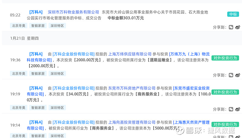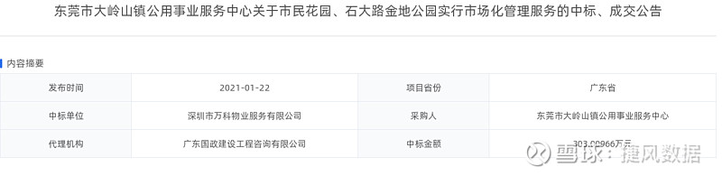 万科A(000002):每股净资产 14.8元,每股净利润 3.06元,历史净利润年均增长 28.1%,预估未来三年净利润年均增长 20.04%,更多数据见:万科A000002核心经营数据 万科A的当前股价 28.11元,市盈率 8.35,未来三年的估值假设和预期收益率如下:15倍PE,预期收益率 182.44%;20倍PE,预期收益率 276.59%;25倍PE,预期收益率 370.74%;30倍PE,预期收益率 464.88%。 捷风数据2021-01-22根据公开信息搜集发现:【万科A,000002】的深圳市万科物业服务有限公司《东莞市大岭山镇公用事业服务中心关于市民花园、石大路金地公园实行市场化管理服务的中标、成交公告》,公示金额为303.01万元。 以下是【万科A,000002】信息摘要的截图: 数据来源:捷风数据_jiefengnews 接下来,我们小编整理了近期【万科A,000002】的部分经营动态如下,各位大佬可以参考: 1、捷风数据于2021-01-22根据公开信息搜集发现:【万科A,000002】的深圳市万科物业服务有限公司《东莞市大岭山镇公用事业服务中心关于市民花园、石大路金地公园实行市场化管理服务的中标、成交公告》,公示金额为303.01万元; 2、捷风数据于2021-01-21根据公开信息搜集发现:【万科A,000002】的万城城市设计研究(深圳)有限公司《苏州虎丘投资建设开发有限公司关于苏州山塘街四期更新与活化研究咨询方案中标公告》,公示金额为428.8万元; 3、捷风数据于2021-01-20根据公开信息搜集发现:【万科A,000002】的深圳市万科城市建设管理有限公司《六联小学扩建项目施工总承包资审及业绩公示》; 4、捷风数据于2021-01-19根据公开信息搜集发现:【万科A,000002】的成都万兴绿建科技有限公司《中建科技集团新建东升星空小学项目叠合板采购招标》; 5、捷风数据于2021-01-19根据公开信息搜集发现:【万科A,000002】的上海万科物业服务有限公司《安泰经济与管理学院大楼物业管理服务中标公告》,公示金额为615.2万元; 6、捷风数据于2021-01-18根据公开信息搜集发现:【万科A,000002】的深圳市万科城市建设管理有限公司《南山区中医院建设项目医疗工艺设计与咨询(重新招标)(二次)资审及业绩公示》。 以下是【万科A,000002】部分经营动态的截图: 数据来源:捷风数据_jiefengnews 了解更多【万科A,000002】的信息,请关注我们捷风数据的动态。 作者:捷风数据_jiefengnews $万科A(sz000002)$ 作者:捷风数据原文链接:https://xueqiu.com/2536037617/169516774 转载请注明:www.51xianjinliu.com » 万科A东莞市大岭山镇公用事业服务中心关于市民花园石大路金地公园实行市场化管理服务的中标成交公 喜欢 (0)or分享 (0)