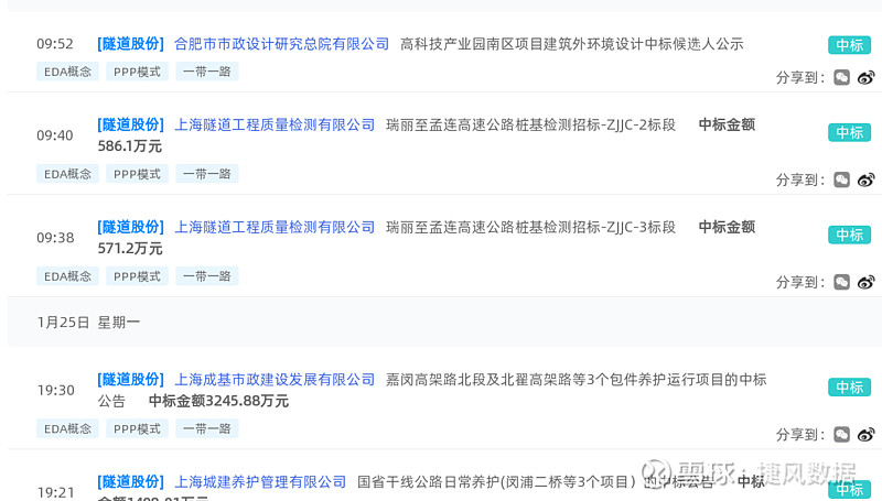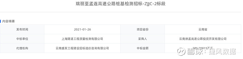 隧道股份(600820):每股净资产 6.33元,每股净利润 0.58元,历史净利润年均增长 34.78%,预估未来三年净利润年均增长 10.7%,更多数据见:隧道股份600820核心经营数据 隧道股份的当前股价 5.6元,市盈率 8.43,未来三年的估值假设和预期收益率如下:15倍PE,预期收益率 110.75%;20倍PE,预期收益率 181.0%;25倍PE,预期收益率 251.26%;30倍PE,预期收益率 321.51%。 捷风数据2021-01-26根据公开信息搜集发现:【隧道股份,600820】的上海隧道工程质量检测有限公司《瑞丽至孟连高速公路桩基检测招标-ZJJC-2标段》,公示金额为586.1万元,占上一年营业收入的0.01%。 以下是【隧道股份,600820】信息摘要的截图: 数据来源:捷风数据_jiefengnews 接下来,我们小编整理了近期【隧道股份,600820】的部分经营动态如下,各位大佬可以参考: 1、捷风数据于2021-01-26根据公开信息搜集发现:【隧道股份,600820】的合肥市市政设计研究总院有限公司《高科技产业园南区项目建筑外环境设计中标候选人公示》; 2、捷风数据于2021-01-26根据公开信息搜集发现:【隧道股份,600820】的上海隧道工程质量检测有限公司《瑞丽至孟连高速公路桩基检测招标-ZJJC-2标段》,公示金额为586.1万元; 3、捷风数据于2021-01-26根据公开信息搜集发现:【隧道股份,600820】的上海隧道工程质量检测有限公司《瑞丽至孟连高速公路桩基检测招标-ZJJC-3标段》,公示金额为571.2万元; 4、捷风数据于2021-01-25根据公开信息搜集发现:【隧道股份,600820】的上海成基市政建设发展有限公司《嘉闵高架路北段及北翟高架路等3个包件养护运行项目的中标公告》,公示金额为3245.88万元; 5、捷风数据于2021-01-25根据公开信息搜集发现:【隧道股份,600820】的上海城建养护管理有限公司《国省干线公路日常养护(闵浦二桥等3个项目)的中标公告》,公示金额为1498.01万元; 6、捷风数据于2021-01-25根据公开信息搜集发现:【隧道股份,600820】的上海市政养护管理有限公司《上海市道路运输事业发展中心部分市管高速公路日常养护采购项目的中标公告》,公示金额为9558.57万元。 以下是【隧道股份,600820】部分经营动态的截图: 数据来源:捷风数据_jiefengnews 了解更多【隧道股份,600820】的信息,请关注我们捷风数据的动态。 作者:捷风数据_jiefengnews $隧道股份(sh600820)$ 作者:捷风数据原文链接:https://xueqiu.com/2536037617/169934753 转载请注明:www.51xianjinliu.com » 隧道股份瑞丽至孟连高速公路桩基检测招标-ZJJC-2标段 喜欢 (0)or分享 (0)