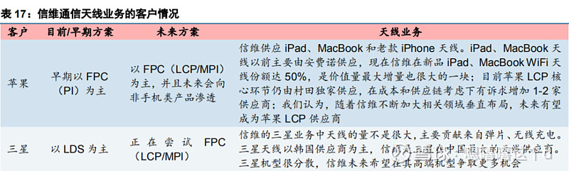信维通信(300136):每股净资产 4.65元,每股净利润 1.01元,历史净利润年均增长 67.32%,预估未来三年净利润年均增长 24.14%,更多数据见:信维通信300136核心经营数据 信维通信的当前股价 37.3元,市盈率 37.89,未来三年的估值假设和预期收益率如下:15倍PE,预期收益率 -22.54%;20倍PE,预期收益率 3.29%;25倍PE,预期收益率 29.11%;30倍PE,预期收益率 54.93%。 $信维通信(SZ300136)$ 一、公司简介 信维通信成立于2006年,始终围绕射频技术研究开发、制造和销售零部件和模组,主营业务为射频元器件,主要包括:天线、无线充电模组、射频材料、射频前端器件、EMI\EMC器件、射频连接器、音/射频模组等。 信维的业务服务涵盖4大应用场景,包括消费电子解决方案、汽车类解决方案、物联网/智能家居解决方案、企业类解决方案。(1)消费类电子解决方案提供多样定制化及标准化产品,主要包括天线、无线充电、精密五金、音射频模组、射频芯片等。(2)汽车类解决方案方面,信维拥有无线和有线互联技术,可提供天线、无线充电、连接器/线缆等。(3)物联网/智能家居解决方案方面,信维的产品和解决方案涵盖整个数据链的客户应用,包括从传感器、跟踪器、智能扬声器到安全设备等。(4)企业类解决方案,信维可向客户提供企业类连接产品(如小基站天线、基站天线、数据中心)以确保客户数据完整性及可靠解决方案的建立。 点评: 1)主业聚焦,主营产品相关性强,客户重合度高; 2)目前产品主要应用于消费类电子产品,但未来的发展空间大,有多场景可以应用; 二、发展历程 公司从成立之后大致经历了四个阶段,第一个阶段是业务较单一(天线)且客户局限在国内,第二个阶段是收购莱尔德前后所经历的阵痛期,第三个阶段是收购莱尔德之后的高速成长期以及并购其他企业来实现泛射频布局,第四个阶段是公司入股德清华莹、瑞强通信等切入射频前端领域。 2006年-2010年,公司从成立到上市,产品主要为弹片天线、FPC天线、AP天线,客户主要是步步高、OPPO、华为、三星、Jabil等。 2011年-2013年,公司收购北京Laird并切入诺基亚、摩托罗拉、Sony和LG等手机厂商,同时公司搭配LDS天线项目和技术改进项目,储备了大量潜在产能。 2014年-2016年,Laird整合成功并向“泛射频”方向扩张,收购了深圳亚力盛和入股艾利门特,涉足射频连接器、隔离器件、无线充电、NFC模组、声学等。 2017年至今,公司在射频前端、汽车天线、基站天线、MEMS器件等领域布局。 点评: 1)2012年,信维通信以1.98亿对家收购莱尔德(3G时代的天线老大)旗下子公司,北京莱尔德,主营业务为手机天线制造,主要客户为诺基亚、黑莓、亚马逊、三星、索尼爱立信等。2011年,北京莱尔德营收7.1亿,是信维通信营收体量的435.9%。但天有不测风云,2013年北京莱尔德的大客户诺基亚出现大动荡,被微软收购,北京莱尔德营收大幅下滑,仅有3.52亿,亏损6605.84万,连带导致当年信维通信归母净利润为-6561.2万。此后,从交易方案来看,信维通信的并购思路开始了转变——由一次性直接并购,转为分步并购。分步合并对买方来说,一方面可以控制风险,一方面在财务上也有一定调节空间。(注意,分步合并,如果后次的估值高于前次,会导致前次的长期股权投资账面出现增值,形成投资收益,这也是不少财务老司机的套路) 三、股权结构、管理层及股权激励 1、股权结构 1)股权结构分散,前十大股东持股合计仅33.55%,创始人彭浩持股20.43%。 2)前10大股东中,个人除彭浩外,还由于伟和周瑾两人。周瑾是2006年和彭浩共同出资设立公司的人,但并没有担任公司内职务,这里不细说。重点说下于伟,在公司上市之初于伟的持股比例仅次于彭浩有11.20%,是上市前由彭浩和周瑾转让,当时是公司研发部分的主要负责人,公司的副董事长。可以说彭浩为了留住公司的核心技术人才给出的待遇是非常高的(当时研发部另外两位技术总监也获得不少的股权),但是从13年开始,于伟不断减持,并且从13年后不再担任公司具体职务,仅作为公司非独立董事,16年后也不再担任董事(同时另外两位技术总监朱杰、周仲蓉从13年解禁后陆续减持,2016年后也不再担任公司技术总监)。 3)为什么要讲上面这段呢?后面说到研发费用部分再细说吧。 2、管理层 1)大部分高管都持有公司股份且持股价值远超过薪酬,管理层利益和股东利益一致化,加分项; 2)这里有个疑问是,12年~19年一直有吴会林担任总经理职务,为什么在19年的时候重新由彭浩兼任总经理? 3、股权激励 公司相当重视人才的内外部培养和吸引,一直在企业内部推动的“合伙人文化”。公司董事长在此前接受媒体采访时,彭浩表示,“共创、共担、共享的合伙人文化,是信维通信过往业绩的催化剂,更是未来推动公司持续高速增长的核心动力。”所以上市后,公司一共推出了3期股权激励,第一期完成,第二期第二年开始未完成,业绩增长大幅下滑未达预期。而2019年的第三期股权激励计划的行权业绩目标为2019、2020、2021年营收不低于50、65、85亿元,即连续两年同比增长30%。 四、产品与行业 1、营收拆分(年报未披露,券商推算) 产品业务方面,19年信维收入可拆分为:天线40%、无线充电14%、射频前端2%、EMI/EMC32%、连接器12%、声学2%。后面会对“天线”、“无线充电”、“射频前端”、“EMI/EMC”四个行业,从行业科普、市场空间、竞争格局、发展趋势等方面做略微的了解。 2、手机天
