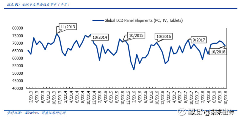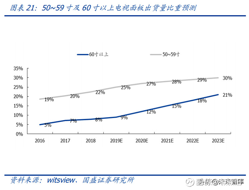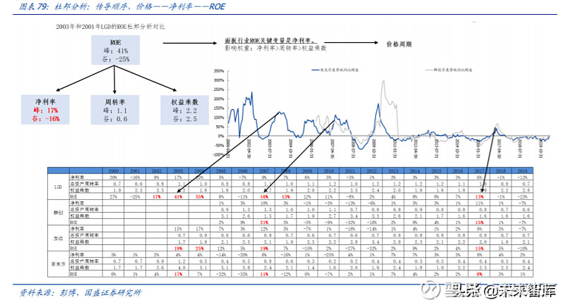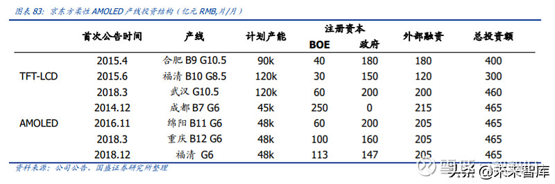 京东方A(000725):每股净资产 2.49元,每股净利润 0.1元,历史净利润年均增长 0.0%,预估未来三年净利润年均增长 39.08%,更多数据见:京东方A000725核心经营数据 京东方A的当前股价 4.25元,市盈率 77.5,未来三年的估值假设和预期收益率如下:15倍PE,预期收益率 -5.05%;20倍PE,预期收益率 26.6%;25倍PE,预期收益率 58.25%;30倍PE,预期收益率 89.9%。 一、京东方:利润与机制大拐点,面板龙头有望腾飞 京东方科技集团股份有限公司(BOE)创立于 1993 年 4 月,是一家为信息交互和人类 健康提供智慧端口产品和专业服务的物联网公司。核心事业包括端口器件、智慧物联和 智慧医工三大领域。1993 年王东升带员工创业“东方电子集团”,1997 年 B 股上市,2000 年 A 股上市,2001 年正式更名京东方,并决定从 CRT 转型 LCD。 公司前身为北京电子管厂。2003 年京东方 3.8 亿美元收购了韩国现代电子液晶业务 (G2.5\G3\G3.5),标志中国进军液晶平板显示器生产领域。2009 年后,京东方连续上 马北京、合肥、重庆、福州四条 G8.5 线。从并购、消化、吸收到再创新,建立公司技术、 制造、营销、供应链和专业管理体系。在早期“海外收购、自主建线”的扎根战略提升 核心技术竞争力,率先形成市场优势。 公司筹划大型国有企业股权激励。公司推动股票期权和限制性股票激励计划,合计不超 过 9.8 亿股,占总股本 2.8%,覆盖对象 2974 人。其中股票期权授予 6.4 亿股,行权价 5.43 元/股。 启动 20 亿回购进行激励,加速市场化步伐。限制性股票 3.4 亿股,行权价 2.72 元/股。 限制性股票来源于公司从二级市场回购。公司启动回购计划拟回购 2.5~3.5 亿股,回购 价格不超过 7 元/股,回购金额不超过 20 亿元,回购期限为 3 个月内。 公司上半年实现营收 608.67 亿元,同比增长 10.59%。2020Q2 单季度实现营业收入 349.87 亿元,同比增长 22.40%;单季度实现归母净利润 5.69 亿元,同比下降 7.77%; 单季度实现扣非归母净利润 3.26 亿元,同比增长 8.97%。公司二季度单季度净利润环 比提升 8.28 亿元,经营层面迎来大幅改善。 D、S、H 三大事业板块均录得增长。收入结构上看,端口器件(D)收入 564 亿元,同 比增长 11%;智慧物联(S)收入 78 亿元,同比增长 3.6%;智慧医工(H)收入 7 亿 元,同比增长 6.16%。在新冠疫情等事件冲击下,公司各业务线仍保持增长,在智慧物 联和智慧医工等获得较快发展,物联网转型战略稳步推进。 显示业务龙头地位进一步巩固,出货量逆势增长。公司上半年显示器件整体出货量继续 保持全球第一,出货量同比增长超 15%。LCD 智能手机液晶显示屏、平板电脑显示屏、 笔记本电脑显示屏、显示器显示屏、电视显示屏等五大主流应用领域出货量仍保持全球 第一。公司北京第 8.5 代 LCD 生产线单品良率创新高;重庆第 8.5 代 LCD 生产线持续产 品小型化,生产水平进一步提升;合肥第 10.5 代 LCD 生产线单月投入基板数创新高。 公司布局成都、重庆两个智慧系统创新中心项目,物联网转型进入落地阶段。成都项目 拟投资 60 亿元,重庆项目拟投资 48 亿元,计划于年内开工,结合公司在显示、传感、 系统的资源优势,将打造五大平台。 智慧城市、智慧物联等产业快速发展,公司加速落 地产业布局,有利于迅速快速切入市场。 周期底部见韧性,乐观展望未来行业景气下的业绩。本轮面板涨价启动于 6 月份,因此 Q2 TV 面板均价比 Q1 略低。根据 witsview 数据,面板价格从 2020 年 5 月份的底部上 行涨幅接近 25%,涨价幅度最高的 32 寸已经到达 30%以上。在 Q2 均价压力下,京东 方仍然实现扣非净利润 3.26 亿(环比提升 8.28 亿),表明公司在逆周期中的抗压能力(经 营改善、产品调配、降本提效等),同时也意味着 Q3 业绩展望可以乐观一些。 大周期明确向上,明年供不应求确定性强。三周期(库存周期、产能周期、技术周期) 框架下,短期库存周期下需求拉动价格快速修复,年底韩厂关闭加大供需紧张,转单压 力进一步催化行业上行。LCD 长期占据主流技术,Mini LED 背光产品商业化即将启动, 坚定看好面板行业大周期上行。 这轮周期有什么不同?两个尾声、一个定局:产能扩张尾声,区域竞争尾声,二线面板 厂商去化,行业双寡头定局,周期性有望减弱。龙头厂商产业地位更高,潜在 ROE、FCF 中枢修复,重点推荐京东方。 二、技术周期:液晶面板是什么? 显示面板大尺寸以 LCD 为主,小尺寸以 OLED+LCD 为主。显示面板主要包括 LCD 和 OLED。LCD 是当前显示面板的主流,应用于电视、电脑、平板、手机。OLED 在中小尺 寸(手机、手表)渗透率逐渐提升。 液晶显示器件核心是背光模组和面板模组。面板模组由外向里分别为彩色滤光片、偏光 片、玻璃基板、液晶、TFT 阵列、玻璃基板。 典型 LCD 面板产线的布局分为:TFT-Array(下基板玻璃)段,CF(彩色滤光片)段, Cell(液晶注入封胶成盒、基板切割磨边等)段,module(贴 POL、COF bonding、组装 背光源等)段。 广泛范畴显示技术处于 LCD、OLED 过渡期间,液晶技术世代线升级已经放缓,内部微 创新不断提升产品差异化和竞争力。 显示技术周期 30~40 年:80 年代末跨入液晶时代开始使用半导体制程,摩尔定律下 LCD 相对于 CRT 有革命性提升。新技术 OLED、Micro LED 同样基于半导体工艺,革命性减 弱。 液晶技术周期 2~4 年:G1 到 G10.5 持续世代线升级,夏普在 2010 年开创 10.5 后停滞 10 年,2017 年大陆京东方、华星光电才重启 10.5 代投资。技术放缓,一方面产能膨胀 