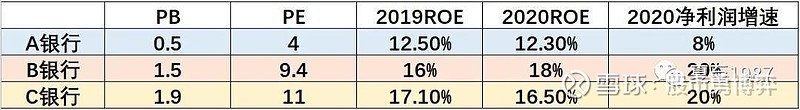 招商银行(600036):每股净资产 22.3元,每股净利润 3.13元,历史净利润年均增长 26.51%,预估未来三年净利润年均增长 14.28%,更多数据见:招商银行600036核心经营数据 招商银行的当前股价 31.63元,市盈率 8.82,未来三年的估值假设和预期收益率如下:15倍PE,预期收益率 121.54%;20倍PE,预期收益率 195.38%;25倍PE,预期收益率 269.23%;30倍PE,预期收益率 343.07%。 宁波银行(002142):每股净资产 14.67元,每股净利润 2.15元,历史净利润年均增长 27.57%,预估未来三年净利润年均增长 19.32%,更多数据见:宁波银行002142核心经营数据 宁波银行的当前股价 24.04元,市盈率 10.43,未来三年的估值假设和预期收益率如下:15倍PE,预期收益率 127.9%;20倍PE,预期收益率 203.86%;25倍PE,预期收益率 279.83%;30倍PE,预期收益率 355.79%。 这几年下来,银行股里谁涨的最好?答案不是招行,而是一家城商行: #宁波银行# 。 这家小银行现价对应PB达1.79倍,也超过招行的1.53倍,动态市盈率约11倍。 这个价格贵吗? 我觉得还好,看看它的成长性: $宁波银行(SZ002142)$ 近几年的营收和净利润增速非常的快,平均都达到20%了,这样一家业绩高速增长的中型企业,按照成长股估值的标准,给个20倍PE应该不过分吧? 或者加一点安全垫,折价给个15倍PE?但现价才11倍PE,这是一眼看得见的低估。 当然了,银行股的低估似乎是天经地义的,因为这板块不受人待见嘛,即使是中国最好的银行,最优秀的银行。 市场就是这个样子,还是坦然接受的好。 1、银行股估值之谜 聪明的投资人会发现我这里耍了一个小技巧,就是以净利润增速来给银行股估值,这个显然是不够严谨的。 有问题的地方不在于PEG这个估值体系本身,而在于市场经常将“净利润增速”的指标神话了,赋予了它特别高的权重和想象空间,而很少考虑净利润的增长是怎么来的。 我给大家打个比方,现在有三家银行A、B、C,它们的财务数据如下所示: 其中,A银行是名副其实的烟蒂行,PB、PE双低,而B的PE、PB要高得多,但是它的净利润增速可以达到20%的水平,远远超过了A的8%。 那么A、B两家谁的投资价值更高呢?不好说,得算。 如果有点儿估值基础,普通散户会发现对于一家企业,如果不向外融资,那么它的长期净利润增速是不可能高于平均ROE的。 也就是说如果有一个成长股可以保持20%的净利润增速,那么只有三种可能: 一个是它的ROE远远高于20%,但是我们知道这样的股票在市场上是非常少见的,你可以翻翻那些上市公司的财报,或者用条件选股器筛选一下,看看这样的股票在市场上有多少家。 我初筛了一下,近3年ROE全部高于20%的只有80家上市公司,扎堆在少数行业。 比如食品饮料、白电领域的茅台五粮液伊利格力美的这样的,或者是少数医药生物如恒瑞片仔癀华东医药济川药业通策医疗等,还有一大票是地产行业的股票像万科保利新城招蛇荣盛这样的,以及地产后周期的欧派索菲亚顾家金牌橱柜等,或者是大华海康等硬核科技股,其他的行业真的很少很少。 以上这些是名副其实的好股票,凤毛麟角的,也早就被市场挖掘干净了。当然了,银行业是很难达到这样的标准的,或者说银行确实没有成为长期大牛股的基因。 还有一种可能是ROE虽然不是特别高,但ROE正处在一个向上的通道里,比如上面的银行B,从16%的ROE提升到18%的过程就有可能带来净利润增速20%的增长。 这个过程只能在短期内实现,如果要把长期的净利润增速搞到20%以上,那么你的ROE也必须一直往上提,直到超过24%以上的水平,因为多少还要分点红。 对于净利润增速G,始终存在这样的公式:G=ROE*(1-分红比率),有兴趣的朋友不妨亲手算算。 记住这个关键指标,ROE,搞明白了ROE与净利润增速之间的关系,就算是一只脚踏进了价投的门槛了,否则永远是个门外汉。 以上两个模型都非常的好,稳定的高ROE或者是ROE在持续提升,都算是内生式的良性增长,是我们喜闻乐见的增长,是“真实”的增长。 那么还有一种可能是银行C这样的,ROE在下降(从2019的17.1%到2020的16.5%),但是净利润还在高增长,怎么得来的? 原因只有一个,就是对外融资,发股或是发可转债(后期转股)。这里的银行A影射一众烟蒂银行,而宁行和C就非常像了,那么B是招行吗? 现实情况是招行的ROE虽然有所反弹,但提升的速度不快,主要是拨备增长的速度过快,如果降低拨备标准,招行是有实现净利润增速20%的可能的,所以B不等于招行。 以上我们讲了这一堆看似和银行无关的东西,其实是关系到投资中一个非常重要的核心问题:如何给一支股票估值?以及如何给银行股估值? 有的人可能做了一辈子价投,都没搞明白估值是怎么回事儿,每天“净利润增速,高增长,成长股”之类的词儿挂在嘴边儿,还要变着法儿的想一堆支撑高估值的理由,也是个苦命人。 比如一个垃圾股,ROE从3%提升到6%,净利润暴增100%,结果就被误认为是超级成长股,这样的垃圾股市场上不要太多,但恰恰是最容易被热炒的股票,实在是匪夷所思。 对于宁波银行来说,我们说它是一种另类的成长,是股权融资+内生价值双驱动下的高增长,这个时候再去衡量价值,就相对复杂了,因为你很难分清这个增长中到底哪部分属于内生增长,哪部分来源于增发股份。 这些年宁波银行向市场拿了多少钱? 2007年IPO融资41亿后,紧接着2010年就增发融资43亿,2014年再增发融资30亿,2020年增发融资80亿。 还没完,2018年4季度发了100个亿的可转债,其后在2019年全部转股,这前前后后加起来有300亿