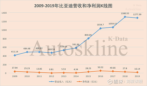 比亚迪(002594):每股净资产 19.22元,每股净利润 0.93元,历史净利润年均增长 18.34%,预估未来三年净利润年均增长 2.63%,更多数据见:比亚迪002594核心经营数据 比亚迪的当前股价 53.03元,市盈率 51.17,未来三年的估值假设和预期收益率如下:15倍PE,预期收益率 -71.56%;20倍PE,预期收益率 -62.08%;25倍PE,预期收益率 -52.61%;30倍PE,预期收益率 -43.13%。 新能源汽车市场竞争的激烈程度,似乎已经超越传统汽车领域。不仅有新势力造车的涌入,传统车企正在不断加快电动化的步伐。据天眼查数据显示,我国2020年共新增新能源汽车相关企业(全部企业状态)超过6.8万家,较2019年同比增长85%。 比亚迪身为新能源汽车的先行者和指引者,面对造车新势力如雨后春笋般浮现,危机感和紧迫感前所未有地强烈。 新能源总销量突破90万辆 连续八年销量全国第一 去年中国汽车市场销量出现下滑,然而新能源汽车异常火爆。据乘联会公布消息,新能源市场2020年1至12月,全年累计销量达124.7万辆,同比增幅达到了14.6%。 新能源领域的一哥比亚迪,面对大环境的利好,从成绩单来看稍有落后。其新能源车型2020年销量为189,689辆,同比下滑17.35%。或许是受疫情因素的影响,让比亚迪在最擅长的领域,受到了巨大的冲击。 但值得注意的是,比亚迪在电动化领域仍遥遥领先,新能源汽车已经累计总产销超91万辆,连续8年销量全国第一。 从乘联会公布的2020年新能源销量排行榜中能看到。全新秦EV排名第五,去年累计卖出41,219辆,同比暴增1279.0%。 上市不到1年的比亚迪汉延续了火爆局面,2020年总销量为28,772辆,其中去年12月销量创单月历史新高为12,089辆,这也是连续两个月汉车型销量破万。从排行榜可以看到,两辆车型均进入排行榜前十,由此可见比亚迪的实力不容小觑。 比亚迪汉2020年7-12月销量走势 市值突破7000亿 成为中国市值第一车企 销量增长是品牌竞争力的一方面,资本市场的风向更能反映出,企业所在行业的地位和自身能力。2020年比亚迪在A股市场股价持续大涨,涨幅超过400%。截止1月29日收盘价为247元,市值突破7000亿,一跃成为中国市值第一车企。 比亚迪的股价节节攀升,华创证券认为:“2021年仍是比亚迪产品大年:汉和唐扎根于20万元以上中高端市场、DM-i超级混动开启新一轮产品周期等动作,预计其新能源总销量有望突破40万辆,同比增长23%。”基于以上等多种因素,证券公司给出比亚迪“强推”评级。 资本对比亚迪的青睐不止于此,就在几天前,比亚迪获得了近300亿港元的融资,据悉此次融资成为近十年来亚洲汽车行业最大股票融资项目,吸引了200多家机构投资者参与。值得一提的是背后投资阵容强大,包括了红杉中国、社保和CIC等中国主权基金,还有欧洲和中东主权基金。 刀片电池解决电动车易燃痛点 超强的内核实力离不开比亚迪在新能源电池领域的深厚功底。2020年3月,比亚迪推出了“刀片电池”,该电池密度大、稳定性强、更安全。 目前电动汽车动力的两大技术路线分别为三元锂电池和磷酸铁锂电池。三元锂电池能量密度高,但安全性能不如磷酸铁锂电池。而磷酸铁锂电池安全性能高,但能量密度低于三元锂电池。 作为磷酸铁锂电池的开发者,比亚迪一直在探索如何在确保安全的前提下,提高磷酸铁锂电池的能量密度。刀片电池的问世很好地解决了这个问题,实现了高强度、高安全和高续航。 刀片电池采用了热稳定性更高的磷酸铁锂材料,相比于目前流行的三元锂材料,磷酸铁锂电池拥有放热反应起点温度高、放热慢、产热少、不释氧等四大特点。在针刺试验中,比亚迪刀片电池针刺点附近位置仅有较低程度的温升变化,基本杜绝了出现燃爆的可能。 DM-i超级混动系统 续航里程1200公里 技术控的比亚迪在不久之前,发布DM-i超级混动系统。这套混动系统以电为主,具备快、省、静、顺、绿等多重优势,在亏电状态下,也能够实现3.8L/百公里的油耗,综合续航里程突破1200公里。 该平台可装配比亚迪自主研发的刀片电池,两者相辅相成,电池为新平台保持高效的动力系统做保障。据了解,比亚迪DM-i超级混动系统将率先搭载于秦PLUS、宋PLUS以及唐三款车型。 2021年是新能源汽车的爆发年,各家车企铆足全力向新能源市场进攻。近日网络上曝光了一张图片,比亚迪计划在第一季度发布秦Plus、宋Plus(已发布);二季度发布宋Max和宋Pro;三季度则发布全新EV2.0平台,并推出平台首款车型-“海豚”;而四季度则发布汉的新车型。此外,比亚迪还计划在未来1-2年内推出自主的高端品牌,与现有的王朝系列形成高低搭配,进一步强化品牌形象。 比亚迪是否值得投资? 1、比亚迪2019年业绩如何? 销量、营收、利润三大指标均下滑。 4月21日晚间,比亚迪发布2019年财报显示,2019年,比亚迪全年汽车销量为46.14万辆,同比下降11.39%,仅完成全年65万辆销量目标的70.98%;营业收入为1277.39亿元,同比微降1.78%;归属于上市公司股东的净利润为16.14亿元,同比下滑41.93%;扣非净利润为2.31亿元,同比大降60.64%;基本每股收益0.5元/股,同比下滑46.24%。 值得一提的是,汽车K线通过查阅历史数据发现,比亚迪新能源板块在2019年之前的五年内,一直呈现走强态势,而燃油车走势趋于下行,两个板块的拉锯使比亚迪近五年整体销量忽高忽低。 从营收和净利润K线图来看,2009年之后比亚迪的营收一路向上,而净利润则忽高忽低,不过两个数据同时“低头”的情况,还是2012年
