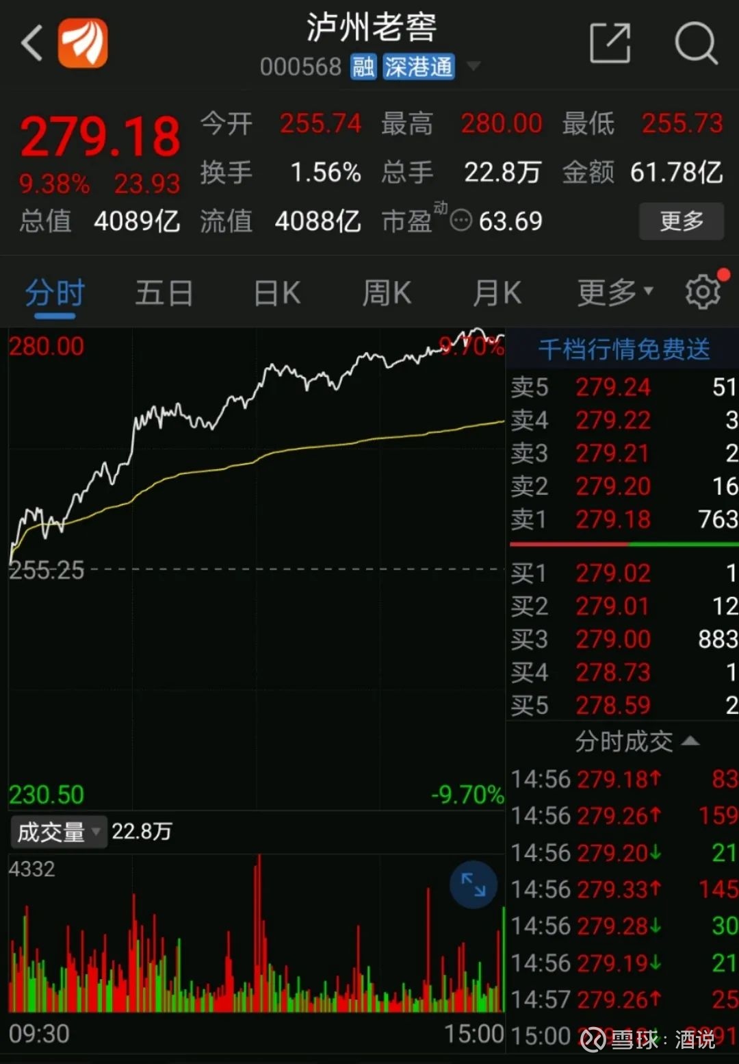泸州老窖(000568):每股净资产 12.67元,每股净利润 2.38元,历史净利润年均增长 39.46%,预估未来三年净利润年均增长 26.59%,更多数据见:泸州老窖000568核心经营数据 泸州老窖的当前股价 71.65元,市盈率 23.17,未来三年的估值假设和预期收益率如下:15倍PE,预期收益率 1.08%;20倍PE,预期收益率 34.77%;25倍PE,预期收益率 68.46%;30倍PE,预期收益率 102.15%。 2月2日,白酒板块集体上涨,泸州老窖强势领涨。截止当日收盘,泸州老窖股价为279.18元,单日涨幅高达9.38%、逼近涨停,并创下历史记录——泸州老窖市值成功超过4000亿元,公司总市值位列上市白酒企业前三。 对于酒类行业和资本市场而言,“泸州老窖总市值超过4000亿”这一历史新纪录,其实早是预期中的大概率确定性事件。“今天的酒类板块基本是被泸州老窖带起来的,预计2020年业绩会超预期、2021年的一季报大概率实现‘开门红’”,智邦达咨询机构董事长张健这样说道。 张健表示,当前泸州老窖聚焦国窖1573,在高端白酒上已经做出了显著的“盘量”。这反映了一个重要发展逻辑,即越聚焦、越集中,发展的确定性更好,未来的成功概率就越大。 首先,泸州老窖在股市的持续稳健增长势头,很大程度是受到了早前披露的2020业绩预告的充分利好。 公告显示:受公司核心产品销售收入增长影响所致,泸州老窖预计全年公司实现归母净利润55.70-60.35亿元,同比增长20%-30%,基本每股收益3.80-4.12元。尽管泸州老窖并未披露2020年的营收数据,但净利润作为财务核心指标,以及前三季度成功实现的115.99亿营收,这些都足以说明泸州老窖“涨”字为先的强劲势头。 其次,以国窖1573为核心的五大单品持续强劲增长,构成了泸州老窖在资本层面“飘红领涨”的核心支撑力。 作为高端浓香白酒的实力代表,国窖1573在产品价格、渠道动销以及商家配合度上的市场亮眼表现,再加上国窖1573封藏大典、国窖1573冰JOYS、国窖1573·七星盛宴、冠名《故事里的中国》等多元化的营销创新赋能,这一系列的综合举措让国窖1573在品牌价值、市场表现以及消费者影响力上都获得更多的价值提升。 同时,泸州老窖老字号特曲站上300元价格带,持续激发老名酒新活力;特曲60版站稳500元,加快全国化布局,引领行业复古情怀;窖龄酒IP化创新营销,强化品牌声量和市场能量;头曲、二曲深化消费者培育;重磅发布并聚焦打造“第三曲线”高光品牌……这些都成为泸州老窖更进一步的核心驱动力。 再者,随着春节日益临近,市场和消费者对泸州老窖的产品需求进一步提升。来自市场的利好消息传导至资本市场,助推泸州老窖在资本层面的火热涨势。 对此,民生证券分析认为,春节属于白酒消费旺季,市场对高端和次高端白酒需求旺盛。这也进一步表明,在茅台、五粮液、泸州老窖等带动下,白酒板块的情绪不断提振,行业总体向好的趋势保持平稳。 作者:酒说原文链接:https://xueqiu.com/1922346940/170752872 转载请注明:www.51xianjinliu.com » 泸州老窖市值超4000亿历史新纪录 喜欢 (0)or分享 (0)