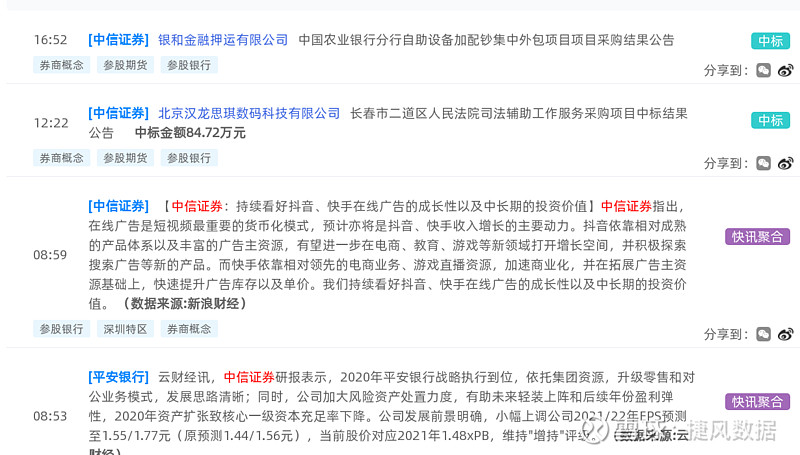 中信证券(600030):每股净资产 12.87元,每股净利润 0.77元,历史净利润年均增长 30.08%,预估未来三年净利润年均增长 22.28%,更多数据见:中信证券600030核心经营数据 中信证券的当前股价 22.9元,市盈率 23.5,未来三年的估值假设和预期收益率如下:15倍PE,预期收益率 -7.78%;20倍PE,预期收益率 22.96%;25倍PE,预期收益率 53.7%;30倍PE,预期收益率 84.43%。 捷风数据2021-02-02根据公开信息搜集发现:【中信证券,600030】的北京汉龙思琪数码科技有限公司《长春市二道区人民法院司法辅助工作服务采购项目中标结果公告》,公示金额为84.72万元。 以下是【中信证券,600030】信息摘要的截图: 数据来源:捷风数据_jiefengnews 接下来,我们小编整理了近期【中信证券,600030】的部分经营动态如下,各位大佬可以参考: 1、捷风数据于2021-02-02根据公开信息搜集发现:【中信证券,600030】的银和金融押运有限公司《中国农业银行分行自助设备加配钞集中外包项目项目采购结果公告》; 2、捷风数据于2021-02-02根据公开信息搜集发现:【中信证券,600030】的北京汉龙思琪数码科技有限公司《长春市二道区人民法院司法辅助工作服务采购项目中标结果公告》,公示金额为84.72万元; 3、捷风数据于2021-02-01根据公开信息搜集发现:【中信证券,600030】的南宁国泰保安押运有限公司《来宾分行合山支行押运守护服务采购结果信息公开》; 4、捷风数据于2021-02-01根据公开信息搜集发现:【中信证券,600030】的西安长城数字软件有限公司《物资采购单位院校级管理信息系统成交公告》,公示金额为102.39万元; 5、捷风数据于2021-01-29根据公开信息搜集发现:【中信证券,600030】的中信证券股份有限公司《中国银联2021年第一期财务咨询采购项目结果公示》; 6、捷风数据于2021-01-29根据公开信息搜集发现:【中信证券,600030】的中信证券股份有限公司《合肥高新股份有限公司公募REITs项目公开选聘中介机构服务项目中标候选人公示》,公示金额为260.0万元。 以下是【中信证券,600030】部分经营动态的截图: 数据来源:捷风数据_jiefengnews 了解更多【中信证券,600030】的信息,请关注我们捷风数据的动态。 作者:捷风数据_jiefengnews $中信证券(sh600030)$ 作者:捷风数据原文链接:https://xueqiu.com/2536037617/170752403 转载请注明:www.51xianjinliu.com » 中信证券长春市二道区人民法院司法辅助工作服务采购项目中标结果公告 喜欢 (0)or分享 (0)
