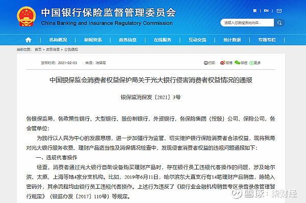 招商银行(600036):每股净资产 22.3元,每股净利润 3.13元,历史净利润年均增长 26.51%,预估未来三年净利润年均增长 14.28%,更多数据见:招商银行600036核心经营数据 招商银行的当前股价 31.63元,市盈率 8.82,未来三年的估值假设和预期收益率如下:15倍PE,预期收益率 121.54%;20倍PE,预期收益率 195.38%;25倍PE,预期收益率 269.23%;30倍PE,预期收益率 343.07%。 中国平安(601318):每股净资产 36.83元,每股净利润 8.41元,历史净利润年均增长 31.19%,预估未来三年净利润年均增长 15.17%,更多数据见:中国平安601318核心经营数据 中国平安的当前股价 71.44元,市盈率 8.74,未来三年的估值假设和预期收益率如下:15倍PE,预期收益率 169.75%;20倍PE,预期收益率 259.67%;25倍PE,预期收益率 349.58%;30倍PE,预期收益率 439.5%。 光大银行(601818):每股净资产 5.89元,每股净利润 0.61元,历史净利润年均增长 21.99%,预估未来三年净利润年均增长 11.64%,更多数据见:光大银行601818核心经营数据 光大银行的当前股价 3.68元,市盈率 5.18,未来三年的估值假设和预期收益率如下:15倍PE,预期收益率 245.96%;20倍PE,预期收益率 361.29%;25倍PE,预期收益率 476.61%;30倍PE,预期收益率 591.93%。 2月3日,银保监会消费者权益保护局发布《关于光大银行侵害消费者权益情况的通报》(以下简称“《通报》”)。 根据《通报》,光大银行存在的违规问题包括违规代客操作、短信营销宣传混淆自营与代销产品、适当性管理落实不到位、个贷业务与保险产品强制捆绑、存贷挂钩、违反质价相符原则收取财务顾问费等。 具体来看,光大银行存在以下6类违规问题: 一、违规代客操作 经查,消费者通过光大银行自助设备购买理财产品时,存在银行员工违规代客操作的问题,涉及哈尔滨、太原、上海等地4家分支机构。比如,2019年6月11日,哈尔滨东大直支行有14笔理财产品销售,除输入密码外,其余流程均由银行员工违规代客操作。 二、短信营销宣传混淆自营与代销产品 光大银行成都、济南、青岛等地7家分支机构在短信营销中存在片面夸大产品收益、混淆自营理财和代销产品等问题。比如,2019年3月27日,成都冠城支行向消费者发送营销短信,宣称光大银行冠城支行3月27日-3月31日发行光大阳光北斗星(代码865034),但该产品实际由光大证券发行、光大银行代销,非光大银行自营产品。 三、适当性管理落实不到位 光大银行对客户风险承受能力评估管控不力,导致大量高龄客户风险承受能力评估结果高于实际等级,适当性管理落实不到位。2018年1月至2019年6月,该行客户年龄超过70周岁的风险承受能力评估问卷中年龄选项失真,涉及554家分支机构,北京、河北、吉林、福建、大连等地分支机构问题较为突出。 四、个贷业务与保险产品强制捆绑 光大银行与某财险公司合作开展的“联合I贷”和小额无抵押贷款业务未区分消费者信贷风险水平和授信状况,限定承保机构、强制捆绑搭售保险,严重侵害消费者自主选择权和公平交易权。比如,2019年4月,光大银行总行零售业务部开办了小额无抵押贷款业务,主要面向稳定受薪人士和小微企业客户,该类客群多数有房产/车辆或有社保/寿险保单记录。 除借款保证保险外,上述客群应有权利选择其他增信方式,但该业务借款人的授信准入条件仅为“已向相关保险公司投保个人贷款保证保险”,未区分借款人信贷风险水平和授信状况,强制捆绑借款人购买指定财险公司的保证保险。该业务涉及北京、上海等8家分行,截至2019年6月末,该业务累计贷款金额59.56亿元。 五、存贷挂钩 光大银行石家庄、沈阳、南昌、郑州等10家分行存在存贷挂钩的违规问题,要求借款人以办理本行结构性存款、单位定期存单、预存“还款保证金”等作为贷款审批发放条件。 六、违反质价相符原则收取财务顾问费 光大银行总行、武汉分行、苏州常熟支行违反质价相符原则收取财务顾问费,涉及6269.5万元。比如,2019年6月,武汉分行与某借款企业签订《财务顾问协议》,约定财务顾问服务期限为2019年6月至2020年3月,并收取697.5万元财务顾问费。该行提供的服务成果《并购融资建议书》于2019年1月出具,早于《财务顾问协议》签订时间,也早于合同约定的服务期限,且部分内容从贷前调查报告中摘抄,设计的并购融资方案与借款人贷款申请方案基本雷同。 《通报》指出,光大银行上述违规行为,侵害了消费者知情权、自主选择权、公平交易权、财产安全权等基本权利,银保监会消费者权益保护局已要求其进行整改。 此外,针对上述问题,银保监会要求,各银行保险机构要引以为戒,排查整改,自上而下切实承担起主体责任,有效保护消费者合法权益。 作者:柒财经原文链接:https://xueqiu.com/6817277373/170875149 转载请注明:www.51xianjinliu.com » 光大银行侵害消费者权益被通报个贷强制捆绑搭售借款保证保险等六项违规 喜欢 (0)or分享 (0)
