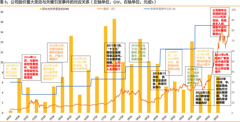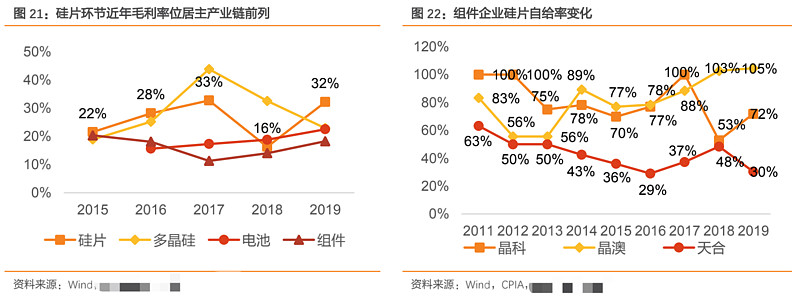 隆基股份(601012):每股净资产 6.84元,每股净利润 0.93元,历史净利润年均增长 37.79%,预估未来三年净利润年均增长 45.29%,更多数据见:隆基股份601012核心经营数据 隆基股份的当前股价 24.52元,市盈率 21.26,未来三年的估值假设和预期收益率如下:15倍PE,预期收益率 74.49%;20倍PE,预期收益率 132.65%;25倍PE,预期收益率 190.81%;30倍PE,预期收益率 248.97%。 年初给粉丝朋友选出2021年三条投资主线和金股池,今天聊聊“碳中和”赛道的首选标的“隆基股份” 一、隆基的8年40倍是怎么做到的? 1.成长决定长涨,周期主导快涨 隆基股份是当前全球最具价值的太阳能科技公司,自 2006 年以来,专注于单晶硅片的制造与研发,2014 年开始逐步转型为一体化公司,并成长为市值最大的光伏公司。 上市以来,公司业绩从 2011 年盈利 2.84 亿元增长到 2019 年净利润 52.8 亿元,年均增长44%,同时股价在 8 年多时间里涨幅超 40 倍。 股价高增背后来自业绩的持续增长,根据公司历史,深挖公司业绩持续增长的深层因素; 2.从行业层面来看,光伏行业兼具周期与成长两大属性 周期性来自两方面:下游装机受政策(如 2012 年的“双反”、2018 年的“531 新政”)、不可抗力(如 2020 年的新冠疫情)等影响而大幅波动,进而造成各企业的盈利波动。 建设周期长的环节如硅料、玻璃可能出现供需错配,轻则使该环节龙头的盈利发生大幅波动,重则卡住行业装机上限,进而影响行业内各企业的盈利水平; 成长性来自两方面:首先,经过近 10 年来的加速发展,光伏发电的度电成本下降了 82%,进入化石能源的发电成本区间,部分地区新建项目投标电价已降至 0.1 元/kWh 以内,发电侧平价即将席卷全球。 另一方面,作为能源革命的领头人,光伏装机不断增长趋势明朗,而 2019 年全球光伏发电量占比仅 2.7%,还处于较低水平,未来空间较大。 3.公司层面,公司股价也有成长与周期的双重属性 通过对公司股价、估值与净利润的关系进行复盘可以得出公司股价增长的主要驱动因素,即长期上涨由成长决定,短期快涨由周期主导。公司股价在过去 8 年的多数时间内随业绩持续增长而上涨,其中在 2015年上半年、2017 年下半年、2018Q4-2019 年上半年、2020 年出现了股价快速上涨,涨幅分别达 193%、113%、112%、274%。 4 次股价大涨均伴随估值提升,而最近 3 次则是估值和业绩的戴维斯双击: 2014 年末,公司切入下游组件推动单晶需求增长。 公司从被动接受下游需求到主动引导终端需求转向,打开了硅片业务的长期发展空间。这半年时间里公司股价上涨了 193%,估值水平最高达到了 120 倍以上。 2017 年下半年,单晶硅片盈利超预期,装机首次进入全球前十。 行业层面市场对未来担忧被破除,公司层面在 2016 年末起单晶路线确立后 2017 年装机需求快速增长导致单晶紧缺价格坚挺、组件放量进入全球前十。半年时间里公司股价上涨了 113%,估值水平最高达到 30 倍以上。 2018 年“531 新政“后行业估值大跌,11 月的座谈会逐步恢复了行业信心,公司组件海外销量开始大幅放量。 政策层面的短暂波动不会影响行业长期发展大势,公司组件业务增 长的风险被逐步排除。这半年多时间里公司股价上涨了 112%,估值水平最高在 35 倍左右。 2020 年中欧政策层面支持新能源长期发展,公司一体化优势初步彰显。 龙头强者恒强得 以检验,无论是政策的支持引导还是平价的强力支撑,行业长期需求增长已明晰。 公司加快电池、组件产能建设,向深度一体化转型,减弱硅料、银浆等原辅材涨价影响,远期成长空间可见。 2020 年初至今公司股价上涨了 280%,估值水平最高在 40 倍以上。 二、隆基是如何乘风破浪的? 1.从“第一性原理”出发,谋长远经营,轻短期盈利 公司更加突出的核心竞争力是:坚持“第一性原理”并高效执行选定战略、量产踩点精准并赚取技术进步利润、极强的供应链管理能力。 选定单晶路线从光伏行业的本质看,其最终目的是要替代传统能源,所以首要任务是不断降低度电成本,而单晶恰好具备将度电成本做到最低的潜力。 单晶电池效率潜力更大,利于集约利用土地,降低非技术成本。 多晶的本质是大量小单晶的集合体,虽然每一部分单晶均是单一晶向、无晶界、位错缺陷和杂质密度极低的,但是集合起来就无法形成大面积高品质的硅片,因此每当有新技术导入时,单多晶电池的转换效率差距就会被拉大。 在同样面积的土地上,使用更高效率的单晶电池可带来更高的瞬时功率,满足用电侧需求。尤其是分布式电站,可利用面积有限,更需要使用高效单晶电池。 单晶硅片的薄片化潜力更大,有利于降低硅材料成本。 单晶晶格致密、杂质含量少,天然可以切得更薄,而多晶受制于晶体结构缺陷和杂质含量少,薄片化容易引起断线率和碎片率升高等问题,导致成本升高。 最后,单晶组件弱光响应更强,发电量更多。由于单晶可接收的光谱辐照度更高,即使是阴天也可接收更多阳光,使得其发电时间明显长于多晶,全生命周期发电量也更多 因此,公司在排除了高投资、产业基础弱的薄膜路线后,又否决了可短期获取较多盈利的多晶产品,专注于具有更高效率潜力、更薄硅片潜力、更多发电量的单晶产品的生产,并最终引领了“单晶替代多晶”的革命,推动行业更快的发展。 2.隆基公司一体化转型 随着公司单晶硅片成本的降低,其所制成的单晶组件逐渐具备经济性。 行业路径依赖制约了