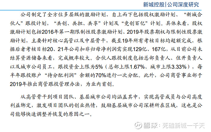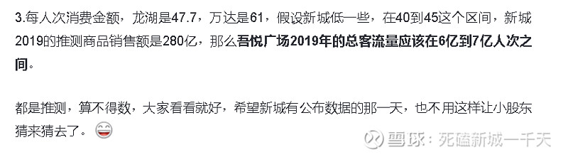 新城控股(601155):每股净资产 13.0元,每股净利润 4.69元,历史净利润年均增长 48.78%,预估未来三年净利润年均增长 28.62%,更多数据见:新城控股601155核心经营数据 新城控股的当前股价 29.02元,市盈率 5.9,未来三年的估值假设和预期收益率如下:15倍PE,预期收益率 415.81%;20倍PE,预期收益率 587.75%;25倍PE,预期收益率 759.69%;30倍PE,预期收益率 931.63%。 之前我做过一期专栏,名称是《新城研报品读,它山之石可以攻玉》。反响不错,所以以后如果碰到有价值的研报,我就以《攻玉》系列和大家分享,今天这个是该系列的第二篇,给大家带来一份来自广发地产团队的研报,该团队在某次分析师评奖中力压袁豪团队拔得头筹,实力可见一斑。 ~~~~~~~~~~~~~~~~~~~~~~~~~~~~~~~~~~~~~~~~~~~~~~~~~~~~~~~~~~~~~~~ 该份研报的名称是《思巧而行坚,持资且善维》,个人对这个题目十分赞赏。 思巧:指的是双轮驱动的模式讨巧。 行坚:指的是新城的骆驼精神和执行力。 持资:指的是新城的财务状况,现金流充裕。 善维:指的是新城住开的周转和商业运营能力。 短短十个字,把新城的优点几乎都提到了,十分机敏。 摘要: 提供的有效信息: 1.综合体货地比6.5,单项目回款可以保证2.3个项目的前期投入。这点非常重要,因为现在很多人认为吾悦沉淀资产会影响新城的周转效率,但是这份研报提到了综合体的裂变开发模式,通过极高的地货比提高周转速度,反而比普通住开拥有更高的杠杆效率。就这一点,已经超过很多研报的认知水平了。 2.回款口径管理销售费用率3.85%,低于行业平均的6.8%,而由于3.13倍的销售负债比,财务费用率低至2.15%,大幅小于行业的8.72%,从而带了7.14%的超额利润率。 点评:逻辑严谨,因果清楚。由地货比谈周转速度和杠杆效率,由销售负债比谈财务费用率,由管理费用率和财务费用率谈净利率,层层递进,十分精彩。 有点遗憾的地方是表述有些瑕疵,地货比是1:6.5,应该用极低来表述。货地比是6.5,应该用极高来表述。而研报里表述的是极高的地货比,有些欠妥。 目录: 点评:一共5部分,重点内容是二,三和四,研究对象分别是吾悦,住开和估值。和其他研报有所不同的是,这份研报把吾悦放在了住开的前面,突显了吾悦的重要性。第二章的小节和页数也是最多的,是本研报的最大看点。 第一章:简介 提供的有效信息: 重点介绍了激励和跟投。 点评:千篇一律的简介写的也有特色,详细介绍了激励和跟投,不可跳过,需要细读。 第二章:吾悦 提供的有效信息: 点评:吾悦整体的分布情况,数据比较详细,值得收藏。 点评:双轮驱动的原理解释,直观简单。 研报中首次分析配建比的研报,这张图非常重要。详细解释了为什么吾悦的双轮驱动如此高效?因为新城的配建比中可售部分面积占比82.5%,远高于万象汇的42%和万象城万达的50%左右,所以吾悦的沉淀资产远小于友商,同时还能提高吾悦周围的居住人口,提高吾悦的消费覆盖力。非常非常好的数据,强烈建议观看原文。 唯一美中不足的是,表中吾悦广场的可售项目占比是83%,自持部分是18%,相加大于100%,不够严谨。 点评:这张图还为我们描绘了一个典型的吾悦综合体的样子:总建面53.4万方,吾悦9.4万方,可售部分44万方。以后我们判断一个吾悦是否沉淀资产的时候,看总建面和吾悦建面的比例就行了,简单,方便。 点评:新城的拿地均价和销售均价的对比图,以及拿地均价和拿地方式的统计图,都是干货,十分重要。可以看到随着拿地难度的提高,2020年的综合体拿地比例大幅度上升。 点评:新城综合的货地比高达6.54,高于住宅部分的3.72,也高于行业平均的2.95。并且指出新城相对于万达龙湖的优势主要是三条:高货地比,高配建比,三四线城市的低预售条件。 然后是研报的第15页到第18页,一段非常精彩,数据详实,过程清楚,逻辑严谨的论述,由于内容全部是精华,因此我不摘录了,大家请移步原文观看,我直接说结论: 1.100个吾悦的平均单独投资是5.1亿,和我自己的《吾悦成本探讨》一文中的计算过程以及结果,全部不谋而合,也算是心有灵犀了,吾道不孤也。 当然了后文为了计算的保守,使用8-10亿的建造成本进行测算,可以说是非常非常谨慎。 2. 新城综合项目是唯一一个可以在不需要其他资金支持的情况下,单个项目回款可以支持一个以上后续项目开发的模式。 点评:这段论述说是颠覆性的也不为过,而且证据确凿,逻辑严谨,层层递进,我个人的溢美之词无以言表,还是那句话,请大家务必阅读原文的第15到18页。 后面研报用多层次的数据勾勒出一个典型吾悦的租金增长水平: 开业第二年相比第一年租金增速是343%,第三年增加26%,第四第五年是20%,第六年增速14%。 五年内吾悦的租金增速和主流公司基本相当,而5年以上的吾悦增速高于主流公司,吾悦在长期运营上更具优势。 点评:这点很重要,这个数据和新城的骆驼精神公司文化完美契合,很多投资者担心新城长期运营的前景,但是数据告诉我们这样的担忧不但是多余的,而且新城的优势就在长期运营上。 这又是一个非常重要的表格,首次列出了新城的客单价客流量等数据。 这个我之前有推测过,详见《一个小股东对新城控股的建议》一文。 我当时推测吾悦广场2019年的销售额在280亿,这篇研报里是274亿。我推测客流量在6到7亿人次之间,合每天165万—192万之间,这篇研报里是186万人次。我预测2019年客单价40到45之间,这篇研报里是40.3. 点评:对于数