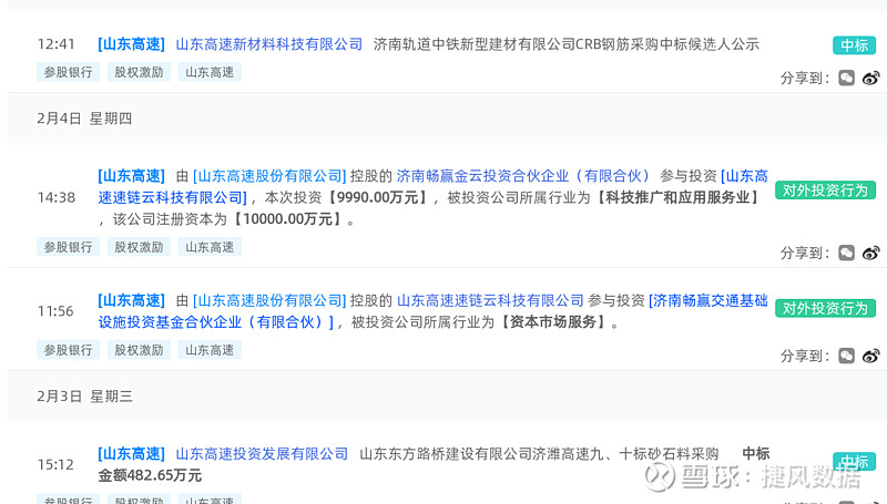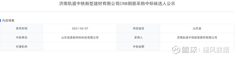 山东高速(600350):每股净资产 5.89元,每股净利润 0.61元,历史净利润年均增长 12.91%,预估未来三年净利润年均增长 5.09%,更多数据见:山东高速600350核心经营数据 山东高速的当前股价 4.24元,市盈率 9.68,未来三年的估值假设和预期收益率如下:15倍PE,预期收益率 151.28%;20倍PE,预期收益率 235.04%;25倍PE,预期收益率 318.8%;30倍PE,预期收益率 402.56%。 捷风数据2021-02-07根据公开信息搜集发现:【山东高速,600350】的山东高速新材料科技有限公司《济南轨道中铁新型建材有限公司CRB钢筋采购中标候选人公示》。 以下是【山东高速,600350】信息摘要的截图: 数据来源:捷风数据_jiefengnews 接下来,我们小编整理了近期【山东高速,600350】的部分经营动态如下,各位大佬可以参考: 1、捷风数据于2021-02-07根据公开信息搜集发现:【山东高速,600350】的山东高速新材料科技有限公司《济南轨道中铁新型建材有限公司CRB钢筋采购中标候选人公示》; 2、捷风数据于2021-02-03根据公开信息搜集发现:【山东高速,600350】的山东高速投资发展有限公司《山东东方路桥建设有限公司济潍高速九、十标砂石料采购》,公示金额为482.65万元; 3、捷风数据于2021-01-27根据公开信息搜集发现:【山东高速,000498】的山东高速绿色生态发展有限公司《山东高速路桥集团股份有限公司公路桥梁公司乳山砂石料竞争性谈判采购》,公示金额为876.0万元; 4、捷风数据于2021-01-21根据公开信息搜集发现:【山东高速,600350】的山东高速投资发展有限公司《山东高速路桥集团股份有限公司钢材、声测管、周转材料、中空锚杆材料集中采购》,公示金额为154.48万元; 5、捷风数据于2021-01-11根据公开信息搜集发现:【山东高速,600350】的山东高速铁建装备有限公司《中国铁路济南局集团有限公司2021年工务大修用岔枕、轨枕、热塑性弹性体垫板、道岔(包件11-23、27)的招标结果公告(项目编号:JTZB2020CL-020-2)》,公示金额为536.66万元; 6、捷风数据于2021-01-08根据公开信息搜集发现:【山东高速,600350】的山东高速铁建装备有限公司《中国铁路济南局集团有限公司2021年工务大修用岔枕、轨枕、热塑性弹性体垫板、道岔(包件11-23、27)中标候选人公示(项目编号:JTZB2020CL-020-2)》。 以下是【山东高速,600350】部分经营动态的截图: 数据来源:捷风数据_jiefengnews 了解更多【山东高速,600350】的信息,请关注我们捷风数据的动态。 作者:捷风数据_jiefengnews $山东高速(sh600350)$ 作者:捷风数据原文链接:https://xueqiu.com/2536037617/171250615 转载请注明:www.51xianjinliu.com » 山东高速济南轨道中铁新型建材有限公司CRB钢筋采购中标候选人公示 喜欢 (0)or分享 (0)