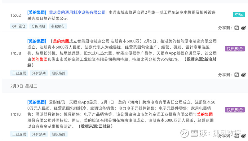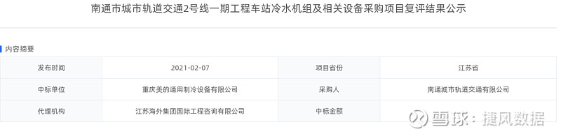 美的集团(000333):每股净资产 14.11元,每股净利润 3.08元,历史净利润年均增长 -100.0%,预估未来三年净利润年均增长 14.43%,更多数据见:美的集团000333核心经营数据 美的集团的当前股价 49.0元,市盈率 14.48,未来三年的估值假设和预期收益率如下:15倍PE,预期收益率 41.28%;20倍PE,预期收益率 88.37%;25倍PE,预期收益率 135.46%;30倍PE,预期收益率 182.55%。 捷风数据2021-02-07根据公开信息搜集发现:【美的集团,000333】的重庆美的通用制冷设备有限公司《南通市城市轨道交通2号线一期工程车站冷水机组及相关设备采购项目复评结果公示》。 以下是【美的集团,000333】信息摘要的截图: 数据来源:捷风数据_jiefengnews 接下来,我们小编整理了近期【美的集团,000333】的部分经营动态如下,各位大佬可以参考: 1、捷风数据于2021-02-07根据公开信息搜集发现:【美的集团,000333】的重庆美的通用制冷设备有限公司《南通市城市轨道交通2号线一期工程车站冷水机组及相关设备采购项目复评结果公示》; 2、捷风数据于2021-01-29得知【美的集团,000333】进行了排污许可证的领取申请,该企业主要从事制造业,电气机械和器材制造业,家用电力器具制造,家用厨房电器具制造; 3、捷风数据:【美的集团,000333】邯郸美的制冷设备有限公司的邯郸美的制冷设备有限公司新建钣金生产线及总装产能提升项目,进行发改委投资项目备案,项目位于【河北省】,状态为【通过】; 4、捷风数据于2021-01-27根据公开信息搜集发现:【美的集团,000333】的广东美的制冷设备有限公司《鹤壁市城乡一体化示范区古城办事处古城街道办事处冬季清洁取暖低温空气源热泵热风机采购-中标公告》,公示金额为1014.0万元; 5、捷风数据于2021-01-25根据公开信息搜集发现:【美的集团,000333】的重庆美的通用制冷设备有限公司《南通市城市轨道交通2号线一期工程车站冷水机组及相关设备采购项目中标候选人公示》,公示金额为1359.48万元; 6、捷风数据于2021-01-21根据公开信息搜集发现:【美的集团,000333】的广东美的暖通设备有限公司《广州宾馆维修翻新项目中央空调设备采购及相关服务招标结果公示》,公示金额为587.5万元。 以下是【美的集团,000333】部分经营动态的截图: 数据来源:捷风数据_jiefengnews 了解更多【美的集团,000333】的信息,请关注我们捷风数据的动态。 作者:捷风数据_jiefengnews $美的集团(sz000333)$ 作者:捷风数据原文链接:https://xueqiu.com/2536037617/171256291 转载请注明:www.51xianjinliu.com » 美的集团南通市城市轨道交通2号线一期工程车站冷水机组及相关设备采购项目复评结果公示 喜欢 (0)or分享 (0)