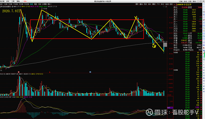 海思科(002653):每股净资产 2.06元,每股净利润 0.31元,历史净利润年均增长 5.5%,预估未来三年净利润年均增长 33.73%,更多数据见:海思科002653核心经营数据 海思科的当前股价 19.55元,市盈率 50.79,未来三年的估值假设和预期收益率如下:15倍PE,预期收益率 -43.12%;20倍PE,预期收益率 -24.15%;25倍PE,预期收益率 -5.19%;30倍PE,预期收益率 13.77%。 中信证券(600030):每股净资产 12.87元,每股净利润 0.77元,历史净利润年均增长 30.08%,预估未来三年净利润年均增长 22.28%,更多数据见:中信证券600030核心经营数据 中信证券的当前股价 22.9元,市盈率 23.5,未来三年的估值假设和预期收益率如下:15倍PE,预期收益率 -7.78%;20倍PE,预期收益率 22.96%;25倍PE,预期收益率 53.7%;30倍PE,预期收益率 84.43%。 江西铜业(600362):每股净资产 14.82元,每股净利润 0.71元,历史净利润年均增长 2.35%,预估未来三年净利润年均增长 15.2%,更多数据见:江西铜业600362核心经营数据 江西铜业的当前股价 13.16元,市盈率 18.47,未来三年的估值假设和预期收益率如下:15倍PE,预期收益率 23.72%;20倍PE,预期收益率 64.96%;25倍PE,预期收益率 106.21%;30倍PE,预期收益率 147.45%。 吾股舵手个人微信公众号:股民读书会(ID:gumindushuhui)声明:只做客观解读,不做主观预测。个股例子皆是圈友提问,仅为缠论教学所用,单一的技术层面图解,仅供参考,勿作交易依据。 今天A股普涨,而且涨幅还不小,大盘日线下跌一笔结束了吗? 目前还是无法确定的,大盘日线还没有形成底分型,还在5日均线之下,上周五向下的跳空缺口还没有补上,大盘30分钟还是下跌结构。 大盘30分钟图: 大盘30分钟图以2021.2.18日为分析基点,舵手处理成2个下跌结构a+A+b+B。 目前正在构筑第二个30分钟下跌中枢B,30分钟这笔上涨结束会形成中枢B完成类卖点,也就是图里缠论4卖。 很明显,大盘30分钟还是下跌结构,相对于下跌,反弹力度不够强,大盘30分钟强弱关键位在3608点,只要这两天不站上、站稳3608点,就会形成缠论4卖,30分钟可能还有新低。 1、中国石化日线图 中国石化日线图以2020.9.24日为分析基点,至2021.2.23日舵手处理成一个上涨结构a+A+b。 2021.2.2日附近是日线级别中枢A完成类买点,也就是图里缠论4买。 在a+A+b这个上涨结构里,b的上涨力度很强,而且量价配合也到位,因此,这次调整大概率是机会,日线这笔下跌只要不破中枢A上沿就会形成缠论3买。 什么时候形成3买?什么价位形成3买? 这个是未知的,不可测的,但是形成买点的时候,学习缠论的朋友应该可以分辨出来。 市场是不可预测的,但具有可操作性:买点买、卖点卖,强者留之、弱者去之。这既是缠论的不测而侧。 2、包钢股份日线图 包钢股份日线走势从2021.2.22日这根涨停板开始,进入量价激活阶段,之前是长期的无量无价死盘阶段。 关注股票就应该关注这样的股票,有量、有价、有料,无量无价死盘的股票看它干嘛,浪费时间。 如果用缠论解析,应该把分析基点取值在2020.4.29日,目前是a+A+b的上涨结构。 2021.2.10日是中枢A完成类买点,也就是图里缠论4买。 包钢股份与中国石化的结构是趋同是,只不过包钢股份的走势力度比较强。 3、江西铜业日线图 江西铜业日线图以2020.9.30日为分析基点,至2021.2.23日舵手处理成一个上涨结构a+A+b。 2021.2.8日是日线级别中枢A完成类买点,也就是图里缠论4买,b的上涨力度比较强,量价齐升。 目前是日线下跌一笔,这笔下跌不破中枢A上沿就会形成缠论3买。 现在要做就是耐心等待日线缠论3买形成。 4、中信证券日线图 中信证券日线图以2020.7.8日为分析基点,舵手处理成一个上涨下跌结构a+A+b,目前来看b的下跌力度比a的下跌力度还要大。 现在中信证券周线处在缠论3买位置,日线在2021.2.9日形成过缠论1买,但是1买之后的上涨力度太弱,之后形成缠论3卖,继续创新低。 中信证券是券商板块龙头,它都起不来,而且还跳空破位下跌,哪个资金会来? 5、兆易创新日线图 兆易创新日线图以2020.7.14日为分析基点,至2021.2.4日舵手处理成一个下跌结构a+A+b,2021.2.9日形成日线缠论1买。 目前日线缠论1买之后的上涨一笔,压力位在中枢A上沿230元附近,也是强弱关键位。 兆易创新突破并站上中枢A上沿才算强,不然就是弱,会再次形成中枢A完成类卖点,构成中枢A延伸,延续原来的下跌结构。 6、海思科周线图 海思科周线图以2018.2.9日为分析基点,至2020.7.31日舵手处理成2个上涨结构a+A+b+B+c,2020.8.7日这周形成周线级别缠论1卖。 海思科周线缠论1卖之后,日线每次下跌都是放量,反弹无量,2020.9.7日破位杀跌之后,弱反弹形成缠论3卖,就代表行情结束了。 目前的上涨依然量能不足,技术上形成日线道氏理论买点,对于这样前面已经走完了一个主升浪的,上涨空间不要抱太大希望。 做股票要做强势股,最起码要做上涨结构的股票。 作者:吾股舵手V原文链接:https://xueqiu.com/8772495527/173118346 转载请注明:www.51xianjinliu.com » 舵手图解中国石化包钢股份江西铜业中信证券兆易创新海思科 喜欢 (0)or分享 (0)