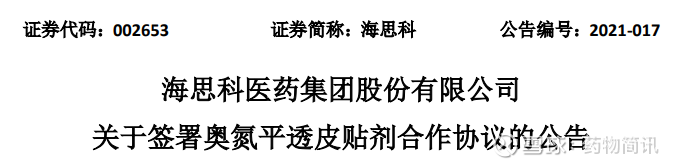 海思科(002653):每股净资产 2.06元,每股净利润 0.31元,历史净利润年均增长 5.5%,预估未来三年净利润年均增长 33.73%,更多数据见:海思科002653核心经营数据 海思科的当前股价 19.55元,市盈率 50.79,未来三年的估值假设和预期收益率如下:15倍PE,预期收益率 -43.12%;20倍PE,预期收益率 -24.15%;25倍PE,预期收益率 -5.19%;30倍PE,预期收益率 13.77%。 2021年3月1日,海思科医药集团股份有限公司宣布近日与美国 Starton Therapeutics Inc.(之前叫 ChemioCare)签订了关于奥氮平透皮贴剂(以下简称“STAR-OLZ”)的合作协议。 一、合作协议主要相关情况 (一)主要合作方式 Starton 授予海思科其在研的每周一次奥氮平透皮给药系统、拟 用于肿瘤化疗引发的恶心呕吐产品 STAR-OLZ 在中国大陆区域开发、 注册和商业化 STAR-OLZ 的独家权利。 海思科3月1日收盘股价 (二)交易对价 交易总对价为 750 万美元,包括现金预付款及潜在开发和注册里 程碑付款。此外,如该产品成功在中国大陆区域获批上市,海思科将 根据该项目在中国大陆的年度净销售额向 Starton 支付一定的特许权使用费。 (三)Starton 简介 Starton(网页链接)的目标是通过安全有效地开发基于当前治疗模式的产品,对癌症患者的生活产生积极影响。该公司是一家临床阶段的生物科技公司,致力于改变现有护理疗法的标准。公司专注于透皮贴,筛选已批准多年的畅销药物,在其丰富的临床使用基础和数据上,开发新的剂型或新的适应症,通过 505(b)2 的申报途径,降低药物开发时间和开发风险。 Starton使用连续递送技术来递送批准的活性成分。在粘合基质透皮给药系统(TDS)中的药物开发方面具有独特的能力,并且正在开发连续的皮下(SC)程序。开发计划的目标是减少药物的曲线下面积(AUC)和最大血浆浓度(Cmax),以提高耐受性,并避免由于半衰期短(T1/2)而导致的亚治疗剂量。 在每个项目中,建立一个AUC目标以通过口服给药来识别血药水平(mcg/L)点估计值,其中一半的剂量间隔高于该点估计值,一半的剂量间隔低于该点估计值。使用这种中点方法,总的AUC低于每日口服给药所观察到的AUC,这可以降低较高的AUC所观察到的毒性,同时保持疗效。 此外,该公司还有一款STAR-LLD是使用一种新型的连续给药低剂量来那度胺的治疗方式。来那度胺的连续递送的使用允许较低的峰和更高的谷,其在整个给药间隔期间提供治疗性血液水平,而每天一次口服给药与每天给药期间来那度胺的亚治疗性血液水平相关。重要的是,每天的总暴露量比每日一次口服给药低55-70%,而所得的AUC也比口服疗法低。血液水平“曲线变平”的预期结果是,由于暴露量较低,因此耐受性更好,并且通过连续保持治疗间隔的最小抑制浓度,可以提高疗效。 二、药品主要相关情况 (一)药品基本信息 STAR-OLZ 是一种每周一次的透皮给药系统(TDS),拟用于治疗由化疗引起的恶心和呕吐(CINV)和 PARP 抑制剂引起的恶心和呕吐 (PIINV)。STAR-OLZ 已完成对 36 位健康志愿者的人体生物利用度研究。在这项研究中,发现 STAR-OLZ 可在 7 天内提供目标治疗水平的奥氮平,对皮肤具有良好的耐受性,在给药间隔内粘附在皮肤上且易于去除,并且在与 ZYPREXA( 奥氮平片)口服的对比中具有较低的总体镇静副作用强度。该研究达到了所有临床指标终点和目的。 多项随机对照研究表明,在 CINV 预防中,奥氮平在控制恶心方面优于NK-1 受体拮抗剂,并在控制呕吐方面非劣于 NK-1受体拮抗剂。NCCN 指南推荐将奥氮平用于 CINV,但当前的奥氮平标签中没有包含恶心和呕吐适应症。PARP 抑制剂是一种长期的癌症治疗剂,可导致 70%以上的患者恶心。目前没有药物获批用于 PIINV。STAR-OLZ 正在开发中,致力成为用于 PIINV 的首个获批产品。 (二)药品审批情况 目前 STAR-OLZ 仍在研尚未获批上市,目前全球也无奥氮平透皮贴剂获批。 (三)其他相关情况 海思科在肿瘤呕吐领域已深耕数年,成功开发并且商业化包括甲磺酸多拉司琼注射液和盐酸帕洛诺司琼注射液在内的预防恶心呕吐的产品。目前,两个产品在肿瘤呕吐领域已占领相当的市场份额。本次引进 STAR-OLZ 将有望进一步完善丰富公司在肿瘤止吐领域的产品线。 作者:药物简讯原文链接:https://xueqiu.com/2792818099/173123551 转载请注明:www.51xianjinliu.com » 海思科750万美元引进一款奥氮平透皮贴剂 喜欢 (0)or分享 (0)