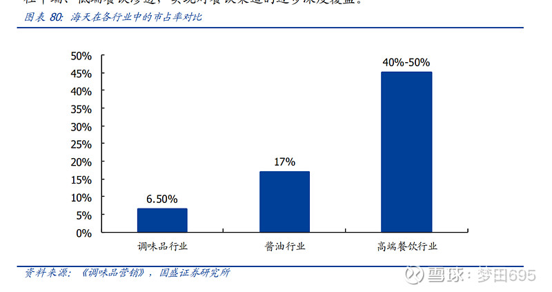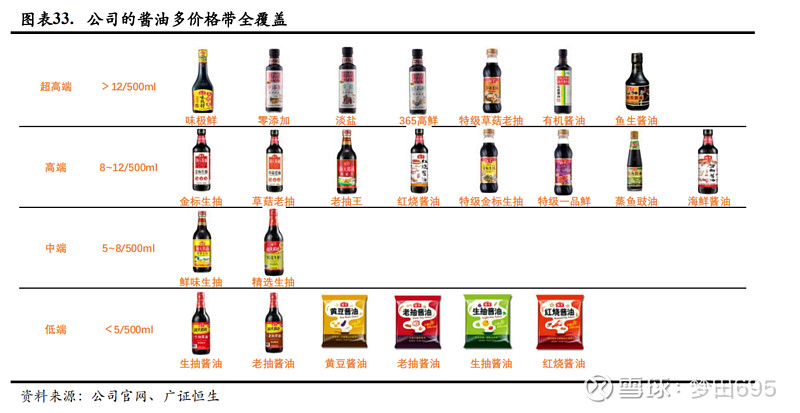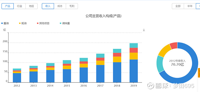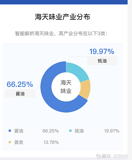海天味业(603288):每股净资产 5.58元,每股净利润 1.62元,历史净利润年均增长 25.56%,预估未来三年净利润年均增长 19.32%,更多数据见:海天味业603288核心经营数据 海天味业的当前股价 94.21元,市盈率 50.19,未来三年的估值假设和预期收益率如下:15倍PE,预期收益率 -56.18%;20倍PE,预期收益率 -41.58%;25倍PE,预期收益率 -26.97%;30倍PE,预期收益率 -12.36%。 一,海天味业自我介绍 2 二,海天味业灵魂七拷问 4 三,海天味业主营业务 4 四,海天味业是不是好生意-活得久 6 1.调味品的行业分析 6 2.酱油的行业分析 8 2.1.酱油行业的市场规模 8 2.2.酱油市场竞争格局 9 3.海天味业蚝油分析 11 4.调味酱行业分析 12 五, 海天味业是不是好生意-现金流三拷问 14 5.1.同行公司 14 5.2.第一问:投资环节消耗的现金流是多少? 15 5.3.第二问,判断【运营环节】公司占用上下游资金的能力 16 5.4.第三问,公司的【销售模式】究竟属于哪一种? 17 六, 海天味业的护城河分析 18 6.1.海天味业的商业逻辑 19 6.2.海天味业护城河分析 19 6.3.宽窄护城河判断 27 七, 海天味业的盈利模式 27 分析海天味业的盈利模式,我们用杜邦分析法,通过杜邦指标来判断是高利润低周转,还是低利润高周转,还是杠杆型。 27 八, 海天味业的盈利源泉是否可持续 28 第一步:拆解净利率判断未来趋势 29 第二步:拆解总资产周转率判断未来趋势 35 第三步,杠杆倍数的考察 38 九、 海天味业公司估值 39 一,海天味业自我介绍 大家好,我是海天味业,大家吃饭炒菜一定会用到我的哦,海天酱油就是我的主打产品,在国内无人不知无人不吃,哈哈,谢谢大家为我捧场。 我是在1994年出身的,我是个90后哦~不过呢,虽然我是90后,看起来很年轻,但其实我追溯到历史的话,已经有是几代人传承了,在清乾隆年间那时候我叫佛山酱园,至今已有300年的历史,是首批“中华老字号”企业之一哦~大家可以看看我的成长历程哦~ 我的老板叫庞康,我的老板是个很有能力的人,也很睿智,在公司成立第一天就把公司的70%的股份给了全体员工,这也是让我迈出了崛起的第一步。用了大概20年的时间上市,在2014年2月11日上海交易所上市,我的证券代码为603288,大家可以通过这个来找到我哦~ 从创立公司到现在25年了,我老板凭着一瓶酱油带着我闯天下,创下了调味品行业2000亿市值的巨无霸,哈哈,我不能骄傲,我要谦虚低调。 不过呢,我还是要夸夸我的老板,我的老板很有凝聚力,因为能把公司的员工都能拧成一股绳,大家都一起奋斗,能看到希望,大家都赚的盆钵满地的哦~大家可以看看我的股权结构. 我的老板舍得跟员工分享利益,这样自己才能赚取更多的钱。我大概统计了下,有34人成为了亿万富翁,我的老板庞康身价更是超过了500亿~在最新2020年10约19日发布的胡润百富榜名单种,海天一共有27人上榜,数量堪比阿里巴巴了~ 所以我说我们能老板他有远见和格局,管理水平也是一流,公司核心高管都在海天工作 15 年,对于中层骨干做了很好的激励政策,并且公司核心员工的薪酬也是高于同行的,所以公司很有凝聚力。感谢我有这么好的老板,能让我被人人所皆知,并造福天下所有人,吃到好调味品~ 据说巴菲特就是食品饮料行业的忠实爱好者,他很喜欢食品饮料行业“盈利稳定、现金流充沛、不太需要再投入”等特性。而我所在的调味品赛道,在食品饮料中属于刚需消费品,周期性、季节性更弱,并且消费者的价格敏感度较低,所以更胜一筹哦。大家一定要多多关注我哦 二,海天味业灵魂七拷问 海天味业的销售模式和上下游好牛批呀,可以多多深入研究下,看着就是做品牌做渠道很有一套的公司哦~ 三,海天味业主营业务 从海天味业2019年年报中,总结出海天味业是做调味品的,产品涵盖酱油、蚝油、酱、醋、鸡精味精等,酱油耗油销量遥遥领先市场,也说明了这两个主营产品是核心产品。 从2019年海天味业的主营收入数据来看,酱油占比53.43%,蚝油占比20.5%,调味酱11.3%。从历年数据上总的来说,一个核心业务+两个成长业务,支撑起了海天帝国。也许就是这样的主打自己的品牌,赛道是做酱油,让大家买酱油就想到海天味业~ 海天味业品类丰富: 海天味业主营酱油产品细分如下: 海天味业把酱油的细分可谓是做到了极致,你要什么有什么,不管任何消费人群,都有一瓶符合你。(我不是专业做烹饪的,就是搞不懂这些酱油咋用,如果可以,麻烦公司普及下不同酱油的使用技巧) 四,海天味业是不是好生意-活得久 分析思路:海天味业一个核心业务(酱油)+两个成长业务(蚝油,调味酱),支撑起了海天帝国。那么我们从调味品行业来宏观分析,再微观重点分析酱油行业和海天味业的酱油龙头优势,成长业务蚝油和调味酱分析总结目前的状态即可。 1月开始带大家布局的陕西黑猫(601015)涨幅171%,和盛和资源(600392)涨幅175%,到现在都已经实现了翻倍! 还有前几天在(公 众 号)提示的朗姿股份(002612)和 海得控制(002184) 也都吃了一波肉,这足以证明笔者的实力。 3月份布局已经开始了 ,把握住好机会!最近复盘精选一只高质量翻倍妖股。该股目前已被游资机构重仓,处于震荡上行趋势,庄家控盘程度极高,近期受大盘调整后,技术上弧形底部,主力控盘不错。尾盘大资金介入明显,这波大资金,很大机会要打造一只大妖股!也是我最近一直重点关注!短期预计至少有128%以上的涨幅,下周正是低吸建仓最佳时机!接下来吃一次大 肉,早点跟上,早点回