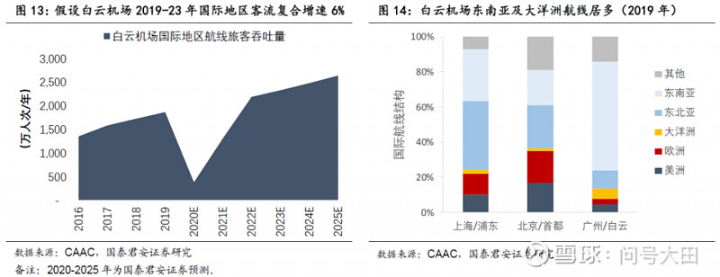 白云机场(600004):每股净资产 7.66元,每股净利润 0.55元,历史净利润年均增长 12.25%,预估未来三年净利润年均增长 10.08%,更多数据见:白云机场600004核心经营数据 白云机场的当前股价 12.95元,市盈率 34.21,未来三年的估值假设和预期收益率如下:15倍PE,预期收益率 -15.02%;20倍PE,预期收益率 13.3%;25倍PE,预期收益率 41.63%;30倍PE,预期收益率 69.96%。 机场板块业绩主要由免税业务贡献,免税业务只有出入过国境的人(国际游客)才能购买。此前,为了防止国外疫情倒灌我们国内,民航局在今年3月底出台“五个一”政策,要求一家航空公司在一个国家只保留一条航线,一周最多飞一个航班。“五个一”政策一出,中国的国际航空客运量直接下滑98%(至今也未有明显改善),机场免税业务基本停顿,各家机场的业绩更是惨不忍睹。但新冠疫情突袭,也给机场板块提供了一个绝佳上车机会。如果新冠疫苗研发进展顺利,新冠疫情将变成短期的事件冲击,机场板块后续将存在超额收益的机会。我将介绍中国三大门户机场中存在感最卑微、但潜力较大的一位:白云机场。 01 公司简介 中国大陆机场中,白云机场在飞机起降架次和旅客吞吐量都是排名国内第三,仅次于北京首都机场和上海浦东机场。而且北京首都机场/上海浦东机场/广州白云机场的定位级别最高,是中国仅有的三个国际门户机场,分别处在中国经济最发达的京津冀/长三角/珠三角地区。出国时,其他机场的客流通常会汇聚到这三大枢纽机场。机场股中,也只有这3个股票最有投资价值,其他的机场股都容易被边缘化。 机场业绩主要看免税,免税业务主要靠国际客流量。白云机场因为区位分布、竞争格局等因素,国际客流量不如“首都机场和上海机场”。 (1)从区位分布来看。1)广州白云机场位于中国版图南端,白云机场的国际客流以东南亚及大洋洲航线为主;2)而上海浦东机场位于中国版图的东部,国际客流以东亚地区(日本、韩国)的客流为主;3)北京首都机场位于中国首都,政治地位突出,国际客流以欧美地区为主。欧美和日韩的国际客流人均收入及消费能力,均远高于“东南亚地区”。因此白云机场的国际客流消费能力(免税商品购买能力)也比不上 “上海浦东机场、北京首都机场”。 (2)从竞争格局来看,三大门户机场中:1)上海一市两机场,上海浦东机场主要面向国际旅客,上海虹桥机场则面向国内旅客,上海浦东机场的竞争格局最好;2)北京也是一市两机场,虽然北京首都机场/北京大兴机场都同时面向国内和国际旅客,但“北京首都机场离北京市中心的距离”,要远近于“大兴机场离北京市中心的距离”,因此北京首都机场的竞争格局也还可以;3)广州白云机场的存在感却很卑微,粤港澳大湾区的国际枢纽机场还有香港机场/深圳机场,没必要非得从白云机场出国,白云机场的竞争格局并不太好。 粤港澳大湾区机场的国际航线中,香港机场>白云机场>深圳机场。因为香港机场的发展时间早,国际通航点多(大约为白云机场的1.6倍),香港机场的国际航班占比达76.8%,而白云机场的国际航班占比仅为22.9%。 但2019年香港机场受到非法集会等活动影响,部分旅客会考虑安全因素,将从香港出境改为从广深的机场出境,白云机场会受益“香港机场的国际客流量溢出”。 02 业务模式 机场业务可以分为航空性收入、非航空性收入: (1)航空性收入:包括飞机起降费、旅客服务费、安检费等收费,是与提供飞行服务直接相关的收费,实行政府指导价。航空性收入的政府指导价,毛利率在10-15%之间,净利率基本上不赚钱。 (2)非航空性收入:包括广告、餐饮、免税等,是与飞行不相关的商业性服务收费,采用市场定价。由于坐飞机的人相对有钱,机场航站楼就是汇聚了有钱人的商务场所,变现价值很高,机场的非航空性业务非常赚钱。 将白云机场业绩重新拆分后,粗略估测2019年公司广告业务净利润为3.3亿元,免税业务净利润为5.7亿元、航空性业务及其他的净利润为1.5亿元。免税及广告等非航空性业务虽然是白云机场的主要业绩来源,但白云机场免税及广告的体量离上海机场、首都机场的差距非常大,2019年上海机场免税提成(38亿)大概是白云机场(估测7.7亿)的5倍。 白云机场免税及广告等非航空性业务发展不足,有三个原因:1)区位及竞争格局较差;2)机场商业化设计不足;3)特许经营占比低。 (1)区位及竞争格局较差。白云机场面向消费能力较低的东南亚国际客流,而且又面临香港机场和深圳机场的分流,非航空性业务发展不足。 (2)机场商业化设计不足。机场航站楼可以分为陆侧和空侧:1)安检之前的航站楼部分是陆侧;2)安检之后的航站楼部分是空侧。 因为安检的时间很长、而且没法预估。在安检之前,乘客着急赶飞机,没心情来购物,因此航站楼的陆侧不适合商业经营。在安检之后,赶飞机悬着的心落地,如果登机时间充足,乘客就有很强的意愿来购买东西,航站楼的空侧却非常适合商业经营(免税/有税/广告/餐饮)。 白云机场T1航站楼就采用美国设计方案,大部分商业区分布于陆侧,空侧也没有设计集中的商业区(过多分布在指廊里面、缺乏集中大块的商业区),商业价值比较低。所以T1航站楼投运以来,因为商业化设计不足,非航空性业务发展地也并不好,白云机场的盈利能力也没有得到有效提升。 白云机场T2航站楼最早也采用与T1相似的指廊模式。但考虑到T1多年实际运营中发