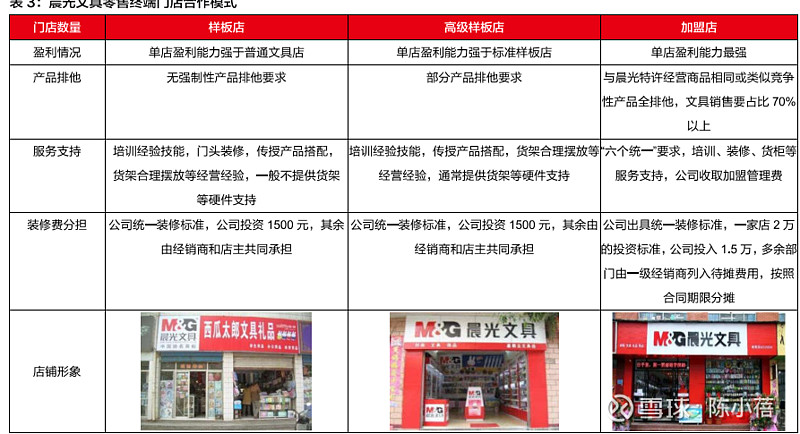 晨光文具(603899):每股净资产 4.28元,每股净利润 0.87元,历史净利润年均增长 29.95%,预估未来三年净利润年均增长 25.58%,更多数据见:晨光文具603899核心经营数据 晨光文具的当前股价 42.62元,市盈率 39.85,未来三年的估值假设和预期收益率如下:15倍PE,预期收益率 -39.25%;20倍PE,预期收益率 -19.0%;25倍PE,预期收益率 1.25%;30倍PE,预期收益率 21.5%。 晨光文具,我曾经在去年买入一点观察仓,价位在58左右,后来涨了一点,在60来块就卖出了,一来小仓位,其次略高的PE,PB拿着,心总有些不安,而事后呢,它一绝前尘涨到了100,半年几乎翻了个倍,真是呜呼哀哉。 痛定思痛,则好好研究这家公司,其实我倒经常接触这家公司,两个孩子上学需要的文具,各种手工材料,这次元宵节,老师安排做灯笼,群里家长说材料来不及淘宝买,有人回复,去晨光文具买。 看看,这强大的品牌护城河和客户粘性,在上学族的家长心中,需要学习用品,第一想到去晨光买,而不是其他家或者网上买,谁还为了几块钱的笔,再淘宝下单,耽误孩子写作业,耽误家长做手工交差。 这就是文具店常青原因所在,你可能经常看到不少小超市,杂货店关门,而文具店则很少闭门,往往一家文具店,几年,十几年,长期运营,即使电商如此发达的现在,它所受的影响很小。 这也就是晨光文具所定位的,确定的线下门店。 晨光文具店招打法 它第一所打通的就是多年校园周边文具店,一招是免费换店招,并传授产品搭配,货架摆放等经营经验,这种销售模式很吃得开,多数店家都很乐意接受,对自己运营有所帮助,又是免费,何乐而不为呢。 而店招则是公司的免费广告,印有公司:晨光文具 的店招,从几百,几千,到现在截至2019年报的8.5万家,已经形成浩浩荡荡压倒势的品牌效应。 而店招送店家了,接下来事情就好办多了,一般文具店的品牌种类杂乱,没有较好的管理,关系初步建立起来后,公司建议店家升级为高级样板店,也就是店家多卖些晨光的文具,并且公司给与强有力支持, 比如提供货架,投资装修费等,再升级的话,则是晨光加盟店,一步步来,一步步让晨光的货,多多出现在店铺中。 这种销售运营模式,无往而不利,很快拓展了晨光的地盘。 晨光在市场销售方面的确高于其他对手,第一这些店铺不是新开店,一般是多年老店,公司只是投入一点资金改造升级,这些店铺周围已经聚集了一定的客户群体,经营基础稳定,在此基础上,植入晨光品牌,输入晨光产品。 这些店铺一般是聚集在校园周边,数量巨大,直接面向3亿以上学生这一文具主力消费群体。根据公司多年的市场调研与积累,国内目前校边商圈的普通文具店数量在18 万家左右,数量庞大,直接面对 3 亿以上学生这一文具主力消费群体, 这些现有普通文具店具备商业布点上的天然优势和终端改造升级的巨大潜力。晨光文具各类终端目前 80%的校边商圈覆盖率为样板店的扩张起到强大品牌宣传作用。 风险小,投入回报很高。 伙伴金字塔式经销模式 公司的销售模式为伙伴金字塔式,这种销售模式可实现渠道伙伴利润最大化,同样也是公司充分利用经销商当地资源,发挥当地优势。 层层投入,是指各地经销商充分利用当地资源投入资金,管理,人员等,层层分享,这个则是在规定的价格下,经销商们可享受各区的经营收益。 这也就是公司所指的,不单是买卖关系,而是伙伴关系,互相依托。 管理层创始人 公司从文具代理商起步,实际控制人为陈湖文、陈湖雄及陈雪玲 ,3人持股比例高,3人持股接近70%,家族产业,陈湖文家族来自于潮州。 陈湖雄成绩不佳,但头脑灵活,对商业比较感兴趣,高考失败后,他应聘做文具厂销售员,连续8年荣获厂销售冠军。据说,他经手的销售额,占到全厂营收额的四成,不过,十年的磨炼,让陈湖雄对整个文具行业的运作规律了如指掌,决定与双胞胎哥哥陈湖文联手创业,逐步成为韩国、台湾等新潮文具的代理商,可是,1997年亚洲金融危机中,他代理的“麦克美高”品牌也难逃倒闭的命运。而正因如此,陈氏兄弟开始把目光转向文具产业链的制造环节,终于闯出自己的一条新路。 晨光文具在品牌和渠道有如此靓眼的表现,创始人眼光和阅历起了很大作用。 上下游分析 公司产品结构中,书写工具营收占比21%,利润占比达到32%,最大的利润组成来自于这部分。 公司一部分产品自主生产,技术含量较高,容易出质量问题的,在产能不够的情况下,资源利用考虑,一部分委外生产,比如笔记本,尺子,胶带等。笔的重要原材料包括墨水(尤其中性墨水)、制造笔头的易切削不锈钢材等,主要依赖进口。 制造笔头需要的易切削不锈钢、铜镍合金等柔性钢,以及高精度多工位笔头,加工设备仍主要依赖进口,目前笔头制造所需原材料主要为日本所垄断,根据公司最新的消息,目前已可实现笔头自产,成本控制上,则更有主动和话语权。 笔头厂商需要与制笔厂商保持紧密的联系,根据制笔厂商的产品设计研发要求、与墨水匹配要求等来制造相应的笔头。墨水也大部分依靠进口。 从公司发的招股说明书来看,上游材料价格浮动将不会成为一个风险,相反,占比较大的笔头和墨水,价格逐年有所降低,公司只提到供应商较集中的风险,但供应商集中,对公司的议价能力有所增强。 笔头采购的平均单价持续下降,一是发行人通过对不同型号的笔头的调整和优化,在确保产品质量的同时,降低了单价较高的笔头的使用量,从而从结构上降低了整