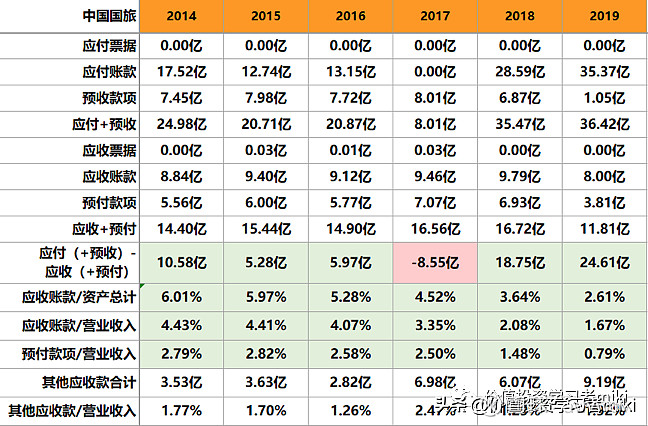 2019年1月,公司股东大会批准将全资子公司国旅总社100%股权转让给中国旅游集团。公司未来将聚焦免税主业,主要包括烟酒、香化等 免税商品的批发、零售等业务。自此中国国旅彻底将旅行社业务剥离,未来专注吃免税牌照红利。(改名中国中免) $中国中免(SH601888)$ 2019年,三亚国际免税城全年接待顾客731万人次,购物人数 217 万人次,全年实现营业收入104.65 亿元,同比增长30.65%,其中免税商品销售收入 101.74 亿元,同比增长 30.93%。 上海机场免税店(含浦东国际机场和虹桥机场免税店,2018 年3月纳入合并报表)实现营业收入151.49亿元,同比增长44.95%;首都机场免税店(含T2、T3 航站楼和大兴机场免税店)实现营业收入85.89亿元,同比增长16.25%。香港机场免税店实现营业收入24.02 亿元,同比增长14.54%。广州机场免税店实现营业收入19.22亿元,同比增长117.46%。 根据文化与旅游部发布的《2019 年旅游市场基本情况》显示,2019 年,旅游经济继续保持高于GDP增速的较快增长。全年,国内旅游人数 60.06 亿人次,比上年同期增长 8.4%;入出境旅游总人数 3.0 亿人次,同比增长 3.1%;全年实现旅游总收入 6.63 万亿元,同比增长 11%。 旅游业对GDP的综合贡献为 10.94 万亿元,占GDP总量11.05%。旅游直接就业 2825万人,旅游直接和间接就业 7987 万人,占全国就业总人口的10.31%。 免税行业是旅游行业的一个子行业,随着旅游产业的不断升级,各国特别是中国出境旅客人数逐年增加,旅客购买能力不断增强,未来发展势头迅猛。 随着人们生活水平的提高,旅游会越来越融入人们的生活,未来旅游是一门经久不衰的生意。 对中国中免来说,免税牌照就是下金蛋的母鸡。在王府井之前,我国具有免税资质的企业共有7家,中免+日上+海免(背后国旅)、珠免、深免、中出服、中侨,而王府井因为拿到了免税牌照,股价短短两个月内已经翻了3倍。 在以上企业中,中国中免的市场占有率在85%以上,先发优势及行业统治力非常明显。 机遇:随着海南离岛免税购物额度提高至每人每年10万元,旅游人数连年不断的增长,本国和外国出入境的游客不断增多,未来国内免税行业有望迎来井喷式发展。 风险:目前全球疫情还未得到有效控制,境外境内旅游业受冲击比较明显,行业企稳回升可能要等到国外疫情稳定,或疫苗问世。 02. 公司财务状况分析 研究过去5年公司的经营财务表现。 1、通过总资产判断公司实力及扩张能力 可以看出中国国旅总资产增长态势良好,19年同比增长下降的原因是由于剥离旅游业务所致。2020年受疫情影响,可能会停止增长或产生亏损。 2、通过资产负债率判断公司债务风险 资产负债率大于60%具有债务违约风险。中国国旅资产负债率低于30%,基本无债务违约风险。 3、看有息负债和货币资金判断公司偿债风险 中国国旅货币资金充足,有息负债总额可以忽略不记,完全没有偿债风险。 4、通过“应收应付”和“预付预收”判断公司行业地位 {(应付+预收)–(应收+预付)}指标除2017年外都很健康,应收账款与总资产、营业收入的比值极低,说明中国国旅占用上下游公司资金的能力不断变强,免税行业龙头地位比较稳固。 5、通过固定资产判断公司的类型 本数值在10%以下,为轻资产类公司。 6、看投资类资产,判断公司是否不务正业 中国国旅投资类资产占总资产的平均比例小于10%,说明其对于主业非常专注,在剥离旅游业务后更加专注于免税业务领域。公司存货自17年来大幅增加,主要是销售量增长备货增加导致,需要重点关注。 7、通过营业收入判断公司的行业地位及成长能力 中国国旅近三年平均营业收入增长速度在30%左右,成长态势良好。剥离旅游业务后,现金收入与营业收入的比值呈下降趋势。 8、通过毛利率判断公司产品的竞争力 剥离旅游业务后,公司专注于毛利率水平较高的免税品零售市场,毛利率不断提高。毛利提高的想象力在哪里?同行业老大Dufry的毛利率约为60%。 9、通过费用率判断公司成本管控能力 中国中免销售费用大幅增长,主要是机场免税业务增长带来的机场租赁费用增加所致,这是免税行业特点,可以接受。 10、通过主营利润判断公司的盈利能力及利润质量 零售行业利润率一般不会超过10%,并且近年来受电商冲击,平均利润率已降到5%以下。免税零售行业属于垄断性质且受电商冲击较低,主营利润率和营业利润率都在两位数以上,公司盈利能力和利润质量都较高。 11、通过净利润判断公司的经营成果及含金量 中国中免净利润稳步增加,但现金含量较低,说明公司有大量的应收账款或者存货。公司销售回款能力需要进一步加强,因行业特点,存货的量也很大,需要关注风险,看以后是否可以优化。 12、通过归母净利润判断公司自有资本的获利能力 中国国旅近年ROE持续上升,说明资本获利能力逐渐变强,投资价值不断提高。 13、通过经营活动产生的现金流量净额,判断公司的造血能力 公司持续造血能力比较稳定,无流动性危机,且有多余的资金扩大规模。 14、通过分红率判断公司品质 分红率低于30%的公司,要么品质有问题,要么能力有问题。中国国旅近三年的分红率均大于30%,说明其对股东是非常厚道的。不过分红率有所降低,值得注意。 03. 企业及行业分析 从历史数据看,中国中免是一支非常有价值的股票,但未来预期如何? 从行业所处阶段及市场规模、行业竞争格局、企业护城河、企业风险等4个方面去