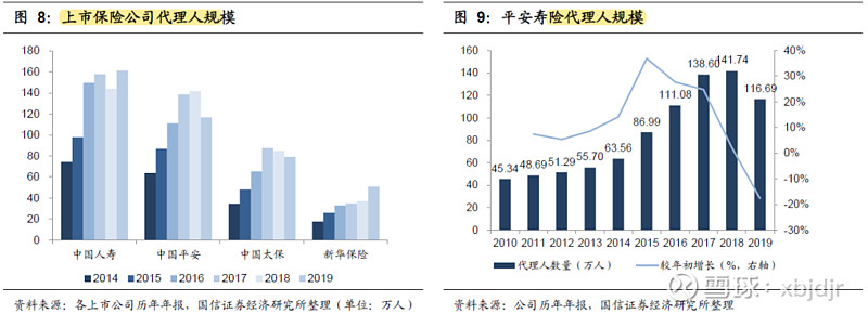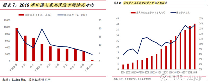 中国平安(601318):每股净资产 36.83元,每股净利润 8.41元,历史净利润年均增长 31.19%,预估未来三年净利润年均增长 15.17%,更多数据见:中国平安601318核心经营数据 中国平安的当前股价 71.44元,市盈率 8.74,未来三年的估值假设和预期收益率如下:15倍PE,预期收益率 169.75%;20倍PE,预期收益率 259.67%;25倍PE,预期收益率 349.58%;30倍PE,预期收益率 439.5%。 中国平安(601318):每股净资产 36.83元,每股净利润 8.41元,历史净利润年均增长 31.19%,预估未来三年净利润年均增长 15.17%,更多数据见:中国平安601318核心经营数据 中国平安的当前股价 71.44元,市盈率 8.74,未来三年的估值假设和预期收益率如下:15倍PE,预期收益率 169.75%;20倍PE,预期收益率 259.67%;25倍PE,预期收益率 349.58%;30倍PE,预期收益率 439.5%。 引言 $中国平安(SH601318)$ 横向对比而言,2019年中国大陆的保险密度(人均保险费额)和保险深度(保费收入/GDP)分别为3051元、4.30%。2019年中国大陆的保险密度仅相当于美国的6%、中国香港的4%,保险深度仅相当于美国的38%、中国香港的22%。由于保险密度的差距=保险深度的差距×人均GDP的差距。未来随着中国大陆人均GDP增加(提升4-5倍)、以及保险深度向海外看齐(提升4-5倍),预计中国大陆的保险密度(人均保险费额)可能还有16-25倍的提升空间,国内保险赛道足够长。价值集训营今天将介绍国内保险行业龙头:中国平安。 01 公司简介 全球保险行业呈现“S型曲线”增长。在人均GDP较低时,保险深度(保费收入/GDP)的增速较慢。随后逐渐加快,到了一定阶段之后,增速又逐渐放慢。中国目前人均GDP约10000美元,国内保险行业正快速增长,预计还有十几年的快速增长期。中国平安总资产虽然超过8万亿元,但成长性并不亚于中小公司。 新业务价值(NBV)是保险公司的关键指标,NBV指每年销售的新保单将未来价值贴现到今天的价值。2013-2018年,中国平安NBV年增速高达31.8%,领跑上市同业,但2019年却降至5.1%。 短期内,平安NBV增速下滑,主要是:互联网保险兴起、代理人增速放缓、保险人群变迁等所致。 (1)互联网保险兴起。传统保险主要靠线下代理人销售渠道,互联网人身险的快速兴起,抢占了部分市场份额。 (2)代理人增速放缓。寿险产品为 “隐性需求”,需要保险代理人去挖掘/引导用户,代理人对险企经营的影响很大,中国平安的代理人渠道NBV占比在90%以上。2014-2018年,代理人数量高速增长拉动个险新单增长。但目前代理人高速增长的红利期已经过去。2019年末,平安代理人规模为117万,较年初下降17.7%。 (3)保险人群变迁。80/90后逐渐成为保险消费主力,80/90后大多在互联网环境下长大,更愿意自己在网上搜索,而不是与人当面交流,这冲击了传统寿险的代理人销售渠道。 那如何看待中国平安的核心竞争力及未来前景呢? 02 业务模式 中国平安商业模式聚焦在“金融+科技+生态”,核心竞争力依旧牢固。 (1)金融。平安集团具有保险/银行/信托/证券等牌照,是中国少数能为客户同时提供保险、银行及投资等全方位金融产品和服务的金融企业。平安通过“一个客户、多种产品、一站式服务”的综合金融经营模式,为2亿个人客户和5.16亿互联网用户提供金融产品及服务。2019年公司归母营运利润中,寿险及健康险、财产险、银行、信托、证券、其他资产管理、科技业务营运利润占比分别为66.2%、15.7%、12.3%、2.0%、1.7%、3.5%、2.6%。区别于其他单一金融公司,平安综合金融模式的利润来源多元化,增长更加平稳。 (2)科技。平安通过科技全面改造金融主业,降低经营成本,加强风险管控,从而提高客均利润。2019年末,科技公司中金融壹账通、平安好医生及汽车之家已完成上市,陆金所控股与平安医保科技完成对外融资,旗下科技公司估值总额达691亿美元。 (3)生态。平安已经形成“金融服务、医疗健康、汽车服务、房产服务、智慧城市”五大生态圈。2019年,公司新增客户3657万人,其中1490万人来自五大生态圈,占比达到40.7%。 中国平安的核心竞争力来自:先进公司治理、科技赋能、生态赋能。 (1)先进公司治理。中国平安的股权结构分散,民营/外资/国企/公众共同持有,不存在控股股东和实际控制人,管理层不会束手束脚、可发挥空间大。从而可采取联席CEO制度决策模式,也构建了股权激励机制,管理非常高效。 (2)科技赋能。传统寿险中,代理人在线下经营自己社交圈,范围窄、成本高、效率低。寿险公司必须要赋予代理人在线上经营的能力,提升线上获客和线上展业能力,从而更高效、更低成本地经营。平安早在2017年就推出了客户端金管家app及代理人端口袋e app,通过内容生产/客户洞悉/圈子运营/线上直播等方式,打造代理人的线上经营能力。虽然代理人规模下滑,但通过科技赋能,公司代理人的产能及收入都在提升。2019年公司人均保单件数为1.38件,同比提升13.1%,人均NBV同比提升16.4%,人均NBV接近同行的一倍。 (3)生态赋能。中国寿险的客户体验较差,寿险业NPS净推荐值(推荐者-贬损者)平均数为17%,大幅低于银行整体NPS平均数(26%-28%),主要是因为单一险种不能满足客户多方面风险保障需求,客户需要更多元化的保险产品。在产品同质化背景下,保险产品的特色化、高附加值服务成为吸引客户的关键。 保险作为消费场景与生活场景的附属品,天然具有场景化特征。健康医疗、养老服务、在线教育等增值服务切合客户日常消费场景,而且与保险需求