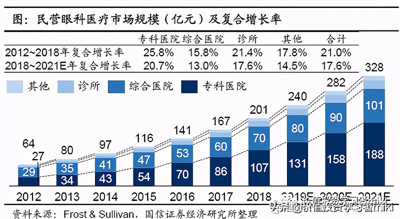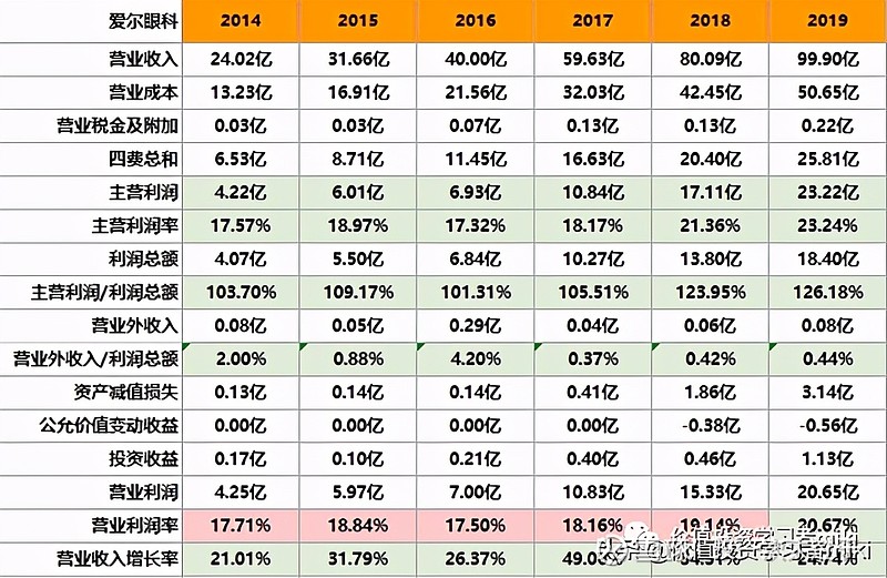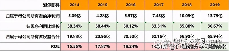 爱尔眼科(300015):每股净资产 2.08元,每股净利润 0.43元,历史净利润年均增长 42.34%,预估未来三年净利润年均增长 32.98%,更多数据见:爱尔眼科300015核心经营数据 爱尔眼科的当前股价 38.11元,市盈率 87.78,未来三年的估值假设和预期收益率如下:15倍PE,预期收益率 -69.7%;20倍PE,预期收益率 -59.6%;25倍PE,预期收益率 -49.5%;30倍PE,预期收益率 -39.4%。 爱尔眼科,A股唯一上市眼科医院公司。文章内容主要为爱尔眼科的分析和估值。 1.主营业务,经营模式及行业简况 公司为专业眼科连锁医疗机构,主要从事各类眼科疾病诊疗、手术服务与医学验光配镜,主营业务非常清晰。从市值69亿到现在近1400亿,营收、净利润年复合增长均超过30%,作为首批登上创业板的企业,爱尔眼科(300015.SZ)无疑是一骑绝尘的白马股。 爱尔眼科的扩张模式 $爱尔眼科(SZ300015)$ 爱尔眼科通过不断的收并购其他医院和诊所进行扩张和全国分级连锁布局,找投资机构合作成立了很多并购基金,对小诊所进行投资。不由爱尔眼科直接投资,业绩不用合并上市公司报表。等诊所开始盈利了,再由爱尔眼科收购,纳入上市公司体系内,消除并购的风险。 从财务角度看,这样做有两个好处,第一,并购基金是爱尔眼科和其他投资人共同设立,爱尔眼科只需要出一部分钱就能撬动更多的资金,投资更多的诊所。第二,这个方法对提高爱尔眼科的市值很有帮助。只收购成功的优质诊所,不仅可以提升利润,还能增加资本市场对其业绩增长的预期。 资本市场对利润是有放大作用的,企业一块钱的利润,乘以市盈率,市值就放大了几十倍。并入报表的一块钱利润,其实值几十块钱;如果亏损了,因为没有合并进报表,其实价值就是一块钱,而且是和其他投资人共同承担。 爱尔眼科用实物期权当中的“延迟期权”策略,通过基金投资锁定标的,在体系外培养观察,等前景明朗之后再在决定纳入上市公司体系内,尽可能消除了并购的风险,同时又能不停地扩大市场规模。 截止2020年5月底,公司和产业并购基金旗下在大陆地区已开业医院409家,门诊部107家。爱尔眼科收入和利润的增长一方面来自于新建或收购医院和诊所数量的增加,另一方面也来自于成熟医院就诊人数和人均就诊费用的增加。从历史数据来看,爱尔眼科平均就诊费用从2006年的468.54元/人次增加到2019年的1507.2元/人次。 2019年A股医药行业营收排名,爱尔眼科排第二位。细分领域中,竞争对手还有光正集团(上海新视界眼科医院集团)、希玛眼科(香港及广东省领先的眼科服务商)、德视佳(专注视力矫正手术)、还有各连锁医院所在地有影响力的眼科医疗结构,如复旦大学,中山大学、军医大学的眼科中心及眼耳鼻喉医院。 2 公司财务状况分析 爱尔眼科还处在成长期,可以通过财务分析了解一下公司的经营和发展变化的趋势。 1、通过总资产判断公司实力及扩张能力 可以看出爱尔眼科总资产增长态势良好,近五年平均增长在40%左右,扩大速度惊人,公司发展态势良好。 2、通过资产负债率判断公司债务风险 爱尔眼科自16年来资产负债率稳定保持在40%左右。基本无债务违约风险。 3、看有息负债和货币资金判断公司偿债风险 爱尔眼科自2018年货币资金大幅减少,已不能覆盖有息负债总额,并且现金占总资产比例较低,公司资金状况比较紧张,其有息负债主要为长期借款,暂时无偿债风险,但需重点关注公司资金状况的变化。 4、通过“应收应付”和“预付预收”判断公司行业地位 {(应付+预收)–(应收+预付)}指标17年及19年为负值,其他年份也勉强为正,说明爱尔眼科占用上下游公司资金的能力非常一般。 5、通过固定资产判断公司的类型 本数值在20%以下,为轻型资产类公司。 6、看投资类资产,判断公司是否不务正业 爱尔眼科2019年投资类资产占总资产的比例小于3%,但商誉占总资产20%以上,这里分析一下。 26亿的商誉中,收购ClínicaBaviera.S.A(欧洲最大的连锁眼科医疗结构)占11亿,剩下是收购其他眼科医院过程中产生。 爱尔眼科在2017年上半年的时候收购了CB公司, 2013年以来,CB公司(在法国上市)的营收、利润、现金流都在稳步上升,近几年增速进一步扩大,且每年现金流都大于净利润。同时,CB公司的眼科医院在欧洲也有着不错的竞争优势,西班牙和德国的市占率都是第一,生意模式的质地也不错,现在每年1-2亿的现金流(还在以20%以上的增速增长),这块11.1亿的商誉暂时没有减值的风险。 收购各地的眼科医院是爱尔眼科生意上扩张的重要模式,眼科医院资产属于朝阳行业,过去五年的眼科行市场规模增速达到15%,随着人口老龄化趋于严重、数码产品的普及(对眼睛的伤害)、居民收入的提升,这样的增速大概率将得以保持,这是一门质地不错的生意,因为经营问题而出现商誉减值的风险不大。 2019年约计提了3.36亿的减值准备,查找一下原因: 香港亚洲医疗集团(计提1.42亿):16年收购,并入爱尔之后经营健康,直到19年才被计提减值。原因:从19年下半年开始的香港社会事件,严重影响了医院的经营,公司基于审慎考虑对其计提商誉减值。 成都康桥(0.89亿):13年收购,被收购后业绩优异,16年冲入公司医院净利润前十。因建筑消防原因不适宜长期经营,需更换地址,且为了优化同城布局(与成都爱尔重复),并将定位逐步转为主营视光业务,盈利预期与之前发生了变化。抛开业务转移因素,算上成都东区爱尔,两家医院总体业绩达