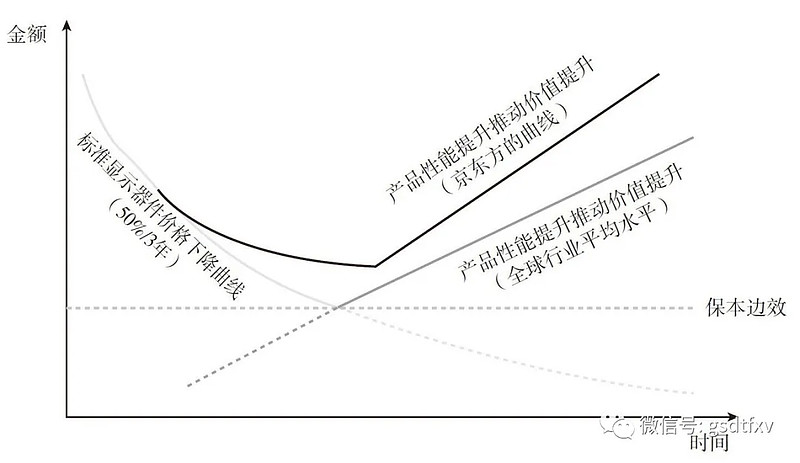京东方A(000725):每股净资产 2.49元,每股净利润 0.1元,历史净利润年均增长 0.0%,预估未来三年净利润年均增长 39.08%,更多数据见:京东方A000725核心经营数据 京东方A的当前股价 4.25元,市盈率 77.5,未来三年的估值假设和预期收益率如下:15倍PE,预期收益率 -5.05%;20倍PE,预期收益率 26.6%;25倍PE,预期收益率 58.25%;30倍PE,预期收益率 89.9%。 作者:肖俊清 来源:股市动态分析 笔者在近两年的时间内已经写过多篇关于看多面板双雄的分析,本文是在重温巴菲特部分理念和阅读段永平问答录后,第一次直面曾经避而不谈,关于面板企业商业模式上所存在的固有问题。需要说明一点的是,笔者依旧看好未来3到4年京东方经营规模、净利润和市值的趋势性向上,这与本文的内容并不冲突。 商业模式天然缺陷 在《光变:一个企业及其工业史》中,作者路风曾对行业有过简单而直白的论述:集成电路和显示器工业,产品的变化要求全部生产设施的变化(不仅包括设备,还包括厂房)——即一代产品一代生产线。在这种情况下,由于技术进步速度和规模效应对于竞争优势至关重要,所以半导体类工业的投资强度非常大——企业只有不断地投资才能保持竞争优势,甚至只是为了生存下去。 2010年4月21日,王东升在集团中心组战略务虚会上首次提出液晶显示行业生存定律,并且在当年集团年中工作会上做了进一步解释:“每三年,液晶显示面板价格会下降50%,若要生存下去,产品性能和有效技术保有量必须提升一倍以上”。 根据王东升对这个定义中的两个概念的解释,第一,产品性能是指产品功能与品质的总和(如图像更真美、更轻薄、更节能、更环保、更便利、更人性的方向进步),产品性能提升可以用产品性能指数来衡量。产品性能指数是产品成本创新和价值创新程度的衡量工具,以某时间点代表产品的边际收益为基准计算。第二,有效技术保有量是指支撑产品性能提升、成本下降和产线效能增强的技术保有量,简而言之是指支撑产品竞争力和产线盈利力的技术能力。产线效能是指生产节拍、生产柔性度、良率保证度、运转稳定性等。这一定律可用王东升的“对勾曲线”来表示。(见图一) 图一:对勾曲线图 不过图一所展示的,是一个周期内的价值曲线。实际情况是,每完成一个周期后,价格趋势性向下的走势又将重来一遍,而企业又必须重复不断研发投入、产线改造、技术改革提升产品性能以期推动价值提升。价格和性能,一个趋势向下,一个趋势向上,但节奏上存在明显的不同步,加上LCD虽然是资金壁垒和技术壁垒较高的产业,但实际上行业大部分时间都处在产能过剩的状态,这导致面板玩家的业绩,在亏损与盈利之间不断切换成为常态。而且,从数量上看,亏损持续的周期显然比盈利周期稍长。 而这些问题反应到资本市场的结果就是,LGD、群创、友达和奇美,几乎所有面板企业的股价,从上市开始没有一只股票的走势是趋势性向上的。(见图二) 图二:LGD上市以来股价走势 这个趋势与光伏产业的历史异曲同工,光伏产业曾经被誉为价值杀手,出货量增加十倍,价格就可以下降十倍,而且区间性能还在持续提升,技术也在不断进化。而且,未来光伏发电+储能平价的大趋势是大概率的事情,这将极大改变行业的竞争属性。而已经进入成熟市场的面板行业,没有如光伏市场未来预期的巨大增长空间,整体上看每年出货面积增量都是5%以下的个位数。 面板行业有没有如光伏一般的平价时刻呢?笔者认为,至少LCD面板应该有。随着LCD面板产能持续向中国大陆集中,未来有能力承接液晶面板产能转移,把成本做到比中国还低的市场几乎不存在,未来LCD面板的话语权一定在中国。这个“LCD最后的周期大戏”肯定会改变我国面板厂商的估值逻辑。 不过,在这之前,LCD面板可能还要经历一场“阵痛”。TCL的T8、T9土地已经平整好了,力图在IT领域有所作为,惠科未来有望上市,也还在寻求扩产,京东方可在原有的产能上进行扩张,LCD还有一轮产能扩张,目标是直指台湾的面板产业。 “新技术”或重走LCD的老路 平板显示20年前还包括TFT-LCD(半导体液晶显示)、PDP(等离子)和FED(真空微电子显示)等多个技术,但当目前平板显示技术已经单指半导体显示技术的时候,AM-OLED、FlexibleDisplay(柔性显示)的技术都不过是半导体显示在不同技术领域的延伸。 在《光变》中,王东升对于新技术的看法是,半导体显示技术决定性地战胜非半导体显示技术之后,决定显示技术发展的关键因素不仅取决于显示方式,而且取决于TFT(薄膜晶体管)技术特别是半导体材料技术的发展。 对于OLED是否会像LCD取代CRT显像管取代LCD时,王东升表示:“我们是否可以从哲学高度用两句话来回答,从CRT到TFT-LCD是技术的中断和开始,从TFT-LCD到AM-OLED是技术的延伸和发展。”这两句话是两个判断:从CRT到TFT-LCD的发展是技术的革命性替代,因为在性质上是半导体技术替代真空电子技术;但从TFT-LCD到AM-OLED则是连续性替代,因为半导体驱动技术的基础是连续的——“它们之间技术相关性和资源共享性高达70%”。王东升的判断是:多种半导体显示技术将长期并存、相互促进,应用各有侧重,市场各有所需。 该判断一定程度上印证了京东方“LCD黄金十年”的说法,但从另一个角度看,OLED或更远的microLED技术若成为主流,都将大概率重走LCD面板的老路,因为它们在根上是相同的。 如果成真,这对于投资