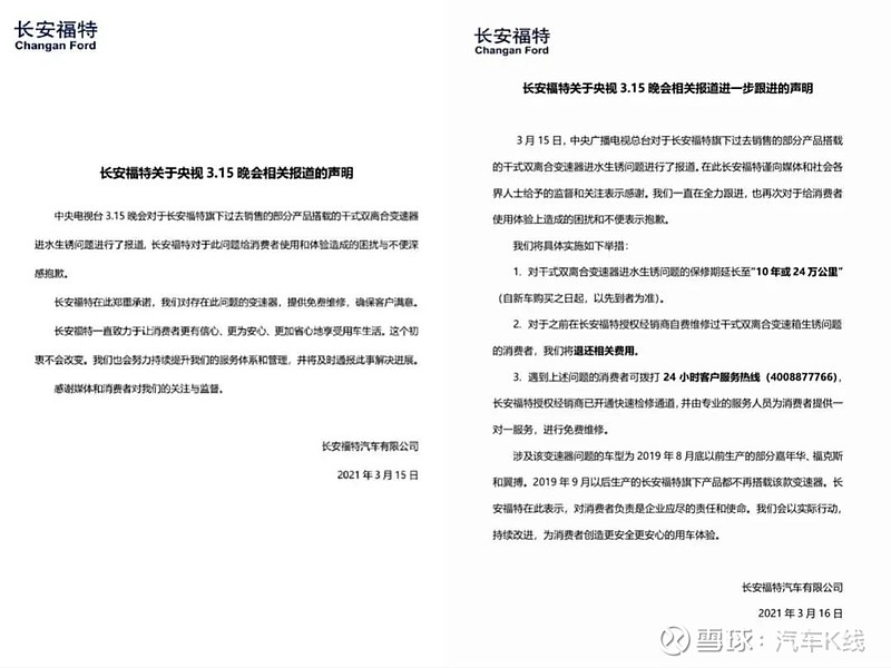 长安汽车(000625):每股净资产 9.07元,每股净利润 0.14元,历史净利润年均增长 9.2%,预估未来三年净利润年均增长 99.66%,更多数据见:长安汽车000625核心经营数据 长安汽车的当前股价 10.26元,市盈率 -15.67,未来三年的估值假设和预期收益率如下:15倍PE,预期收益率 62.91%;20倍PE,预期收益率 117.21%;25倍PE,预期收益率 171.52%;30倍PE,预期收益率 225.82%。 “熊孩子”不给父母省心,直接拖累股东双方股价表现。 @今日话题 3月16日,长安汽车股价低开,一度跌破15元/股,跌幅超过3%,为过去四个月低点;随后跌幅震荡缩窄,收盘报收15.1元/股,下跌0.92%。 $长安汽车(SZ000625)$ 当晚,福特汽车股价震荡走低,截止美国时间16日收盘,福特汽车股价大跌5.38%,报收12.49美元/股,终结了自去年3月以来的大涨态势。 $福特汽车(F)$ 这或许与3月15日晚,两大汽车上市公司的合资子公司长安福特产品缺陷登上央视315晚会有些牵连。 值得注意的是,2020年长安福特市场表现刚刚有所起色,股东双方也签署战略合作协议要加速长安福特在华发展,并导入更多新产品。 今年1~2月,长安福特销量达到4.1万辆,同比增长111.8%。 不过,3·15晚会被“点名”曝光,尤其是设计缺陷导致变速箱生锈以及厂商对待问题的态度,可能对其重新建立的产品和品牌形象造成较大打击。 虽然事后长安福特很快发表道歉声明,但被指没有诚意;不久后其发布进一步声明,一方面将央视改称为“中央广播电视总台”,也给出更为具体的处理措施。 长安福特表示,2019年8月底以前生产的部分嘉年华、福克斯和翼博车型存在变速箱生锈问题,而从央视曝光车主购车时间来看,这个时间跨度相当大。 也不排除在监管部分要求下,长安福特要对缺陷车辆进行大规模召回。 某种程度上,这可能会影响长安福特2021年业绩表现,从而拖累长安汽车和福特汽车的整体业绩。 目前,长安汽车处在快速恢复的过程中,2020年累计销量成为中国市场为数不多保持两位数增长的汽车上市公司,今年1~2月,该公司销量达到近41.47万辆,同比增幅高达153.89%。 虽然销量表现长虹,可长安汽车股价却难言乐观,从去年12月初最高的28.38元一路下滑至当前的15元左右,几乎腰斩。 3月17日,长安汽车股价开盘略有回升。 不久前,长安汽车还宣布了股权激励计划,包括朱华荣等长安汽车高层和研发人员等皆在其中,但旗下最重要合资公司“马失前蹄”,还是让人担心。 对福特汽车而言,也似乎结束了去年3月以来的大涨态势,连续两日股价下跌。除了合资公司在中国市场自己闹出的“坑爹”,芯片短缺也可能对其息税前利润产生10亿~25亿美元的负面影响。 @雪球汽车 @雪球 @雪球达人秀 #股民的日常# #今天聊点啥# #汽车股# 作者:汽车K线原文链接:https://xueqiu.com/5781322612/174670887 转载请注明:www.51xianjinliu.com » 长安福特生锈问题被点名后长安汽车与福特股价双双下跌| 315专题 喜欢 (0)or分享 (0)