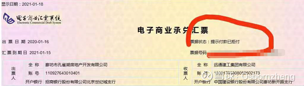 华夏幸福(600340):每股净资产 13.21元,每股净利润 3.79元,历史净利润年均增长 0.0%,预估未来三年净利润年均增长 27.99%,更多数据见:华夏幸福600340核心经营数据 华夏幸福的当前股价 22.48元,市盈率 4.98,未来三年的估值假设和预期收益率如下:15倍PE,预期收益率 430.23%;20倍PE,预期收益率 606.97%;25倍PE,预期收益率 783.71%;30倍PE,预期收益率 960.45%。 华夏幸福商票拒付 近日,市场上出现华夏幸福商票逾期拒付的消息。一则流传的电子商票显示,由华夏幸福旗下廊坊市孔雀湖房地产开发有限公司开立的商票,持票人提示付款后被拒付。该票据到期日为1.15日,图片的票据显示日期为1.18日,状态为:提示付款已拒付。 针对上述商票,需关注到几点: 1)商票的开立人:廊坊市孔雀湖房地产开发有限公司,该公司是华夏幸福孙公司,通过其间接控股的子公司廊坊市京御幸福房地产开发有限公司(为公司全资子公司廊坊京御房地产开发有限公司控股50.5%的子公司,其余49.5%的股权款为信托投资款,廊坊京御房地产开发有限公司对该公司拥有实际控制权)。 2)关于票据的提示付款应答:根据票交所的规则,这张票应该是新规则下前几批自动拒付的票!票交所规则如下: 若持票人在票据到期日前提示付款、承兑人在票据到期日的次日(遇法定休假日、大额支付系统非营业日、电子商业汇票系统非营业日顺延)仍未应答的,电子商业汇票系统于日终时变更票据状态为拒付状态。 例如:一张银行承兑汇票的到期日为2021年1月13日,持票人在2021年1月11日通过电子商业汇票系统发起提示付款,如果承兑人到1月14日日终仍未应答的,电子商业汇票系统于1月14日日终时变更票据状态为拒付状态。 根据上述规则,1.15日票据到期,在下一个交易日即1.18日系统自动应答为拒付! 多持票人维权 同时华夏幸福商票价格上涨,引起很多华夏幸福商票持有者恐慌。前期华夏幸福较多施工款是以商票方式支付,因过往华夏幸福的商票兑付都较为及时,因此在市场积累一定信誉度。较多施工单位也接受华夏幸福商票。这次拒付让较多施工方措手不及,年末农民工的工资难付。 网页链接 根据媒体报道,不少企业持票人通过核酸检测后到北京华夏幸福拉横幅维权。 媒体报道:据一位现场的持票人透露,“这也是我们的无奈之举,真的是没钱了,不能开工不说最主要的是工人还等着发工资,这疫情闹得这么厉害谁愿意出来啊!给华夏幸福打电话只是一味的敷衍。说跟上面沟通马上解决,结果杳无音信。所以只能来公司讨债”。 根据媒体报道,华夏幸福曾回应说建议节后再提付款请求。 华夏幸福:到期商票肯定兑付 澎湃新闻获悉,产业新城运营商华夏幸福基业股份有限公司(华夏幸福600340.SH)发行的商票陆续出现兑付逾期的情况。1月24日,华夏幸福对澎湃新闻明确表示,肯定会兑付,“明天(1月25日)工作日,会和各区域进行核对。” 华夏幸福表示,对目前在公开市场再融资遇到的困难,其控股股东华夏幸福基业控股股份公司和第二大股东中国平安正讨论方案,预计在春节前后能有所披露,但目前因上市公司需符合监管要求,在未最终确定前还无法披露更多信息。 1月15日,有外媒报道称,河北省承诺为华夏幸福提供95亿元的有条件财政支持,首笔提供30亿元中有15亿元用于需要回售的债券,剩余资金用来偿付建筑工人工资及覆盖营业费用。对于这一数额,华夏幸福方面没有确认。但华夏幸福称,公司已争取河北省和廊坊市两级政府给予政策和资金支持,盘活资产。 受疫情影响,华夏幸福去年业绩不佳,北方重镇房地产销售推进缓慢,南方商业地产有所斩获,但还未形成可观的利润和现金回流。加上2021年伊始,华夏幸福多笔债券到期,资金周转存在困难,被多家机构调低评级,引发市场紧张情绪。 截至2020年9月底,华夏幸福营业收入567.34亿元,同比减少11.79%;归属于上市公司股东的净利润72.8亿元,同比减少25.3%;有息负债合计2226亿元,其中一年内到期的负债为1177亿元。 作者:Osbornzheng原文链接:https://xueqiu.com/2701143866/174704727 转载请注明:www.51xianjinliu.com » 华夏幸福到期商票肯定兑付 喜欢 (0)or分享 (0)