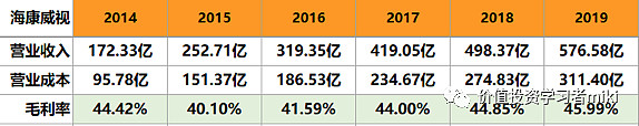 海康威视(002415):每股净资产 4.33元,每股净利润 1.24元,历史净利润年均增长 39.63%,预估未来三年净利润年均增长 17.85%,更多数据见:海康威视002415核心经营数据 海康威视的当前股价 29.0元,市盈率 22.61,未来三年的估值假设和预期收益率如下:15倍PE,预期收益率 4.98%;20倍PE,预期收益率 39.97%;25倍PE,预期收益率 74.97%;30倍PE,预期收益率 109.96%。 在此将对海康威视(002415)的分析分享,只用作自己投资成长的记录和学习交流,不构成任何投资建议。 一、财报分析 先上结论: 1.盈利能力稳定,总资产收益能力略有下降,但在25%以上【利好】 2.成长能力维持稳定,盈利增速保持稳定【利好】 3.运营能力有所削弱,应收账款周转速度需加快【利空】 4.毛利率提高,产品竞争力提高【利好】 5.净利润现金含量低于100%,在80%左右【一般】 1、收集相关公司的年报数据 首先准备好海康威视近5年的年报资料,以及同行业其他公司的企业年报。 2、浏览海康威视2019年年度报告,寻找异常数据 通过收集整理2019年度资产负债表、现金流量表、利润表中的数据,将占总资产比率大于3%且同比增长或下降大于30%的异常数据做标记,并寻找原因。 异常数据整理表 通过查阅财报可知: 1)投资活动现金流出同比减少72.56%,主要原因是上年保本理财产品到期净收回金额较大,而本期无类似投资活动; 2)筹资活动产生的现金流量净额同比减少596.18%,主要原因是本年借款净流入减少及股利分配增加,此外上年收到股权激励认购款,而本期无类似筹资活动; 3)期初现金及现金等价物余额同比增加62.40%,说明公司正在储备更多现金,以应对未来不确定性风险。 4)经营性应收项目增加98.37%,经营性应付项目增加405.38%,说明公司应收账款和应付账款的账期都在变长。应收账款增加由于销售收入增长而增加;应付账款变化更大说明公司对其下游企业的影响力在变大。 5)存货增加96.82%,因为公司应对贸易摩擦,增加备货导致库存增加。 6)长期借款及非流动负债同比大幅增加946.40%及677.27%,由于项目借款增加导致。具体为质押借款年末余额13.48亿元,由7项涉及政府PPP项目合作的权益和收益组成;信用借款年末余额31.36亿元(4亿欧元),主要用于公司杭州创新产业园项目和西安科技园项目的投资建设。其他借款年末余额1.9亿元,由国开发展基金有限公司向杭州电子增资而来。 因此以上异常数据并无问题。 3、通过总资产判断公司实力及扩张能力 可以看出海康威视近年来一直保持超高速增长,随着公司市值增加,增长速率逐步放缓。 海康威视资产增长统计表 海康威视资产增长柱状图 结论:公司稳步增长,潜力巨大;增长步伐逐步放缓。 4、通过资产负债率判断公司债务风险 资产负债率大于60%具有债务违约风险。海康威视资产负债率在40%左右,资产负债率较低,基本无债务违约风险。 海康威视资产负债率统计表 结论:立讯精密56%,工业富联53%,海康威视对于资产负债率的控制相对较好。 5、看有息负债和货币资金判断公司偿债风险 海康威视由于短期周转资金需求减少导致短期借款降低,长期借款大幅增加则主要由于ppp项目质押借款以及杭州创新产业园项目和西安科技园项目的投资建设借款增加所致。公司货币资金充足,远超有息负债总额。 海康威视债务统计表 结论:公司现金充足,无偿债风险。 6、通过“应收应付”和“预付预收”判断公司行业地位 {(应付+预收)–(应收+预付)}指标自2017年以来呈现逐年下降趋势,应收账款与总资产、营业收入的比值则保持稳定,各单项指标同步稳定增长,说明海康威视的业务增长态势良好,行业地位不断提升。 不过应收账款占总资产比例大于25%,占营业收入比例大于35%,且都呈逐渐上升的势头,说明公司资金回收压力较大。 海康威视收付款统计表 结论:公司业务增长态势良好,行业地位不断提升;资金回收压力较大。 7、通过固定资产判断公司的轻重 本数值在10%以下,为轻资产类公司。 海康威视固定资产统计表 结论:资产结构无风险。 8、看投资类资产,判断公司是否不务正业 与主业无关的投资类资产占总资产比率大于10%的公司不够专注,海康威视投资类资产占总资产的比例非常小,说明其专注于主业。 海康威视投资类资产统计表 结论:公司专注主营业务发展。 9、通过营业收入判断公司的行业地位及成长能力 海康威视营业收入稳步增长,增长速度有所降低。现金收入与营业收入的比值正常。 海康威视营业收入统计表 结论:营业收入稳步增长,但增速放缓。 10、通过毛利率判断公司产品的竞争力 海康威视毛利率一直稳定保持在40%以上,并不断缓慢提升,说明公司产品技术含量稳步提升,产品竞争力不断提高。 海康威视毛利率统计表 结论:公司产品竞争力较强。 11、通过费用率判断公司成本管控能力 海康威视连续5年费用率/毛利率小于55%,成本管控能力较强。该数值呈快速上升态势,主要由于销售费用和研发费用的不断增加所致。 海康威视成本费用统计表 公司注重研发投入,持续创新,使得公司可以保持并扩大技术领先优势,并将技术优势快速转化为产品优势,持续推动公司业绩增长。 海康威视研发投入情况 结论:公司成本管控能力较强;研发投入保持较高水平。 12、通过主营利润判断公司的盈利能力及利润质量 海康威视主营利润率稳定保持在20%以上,说明公司盈利能力强;主营利润与利润总额的比