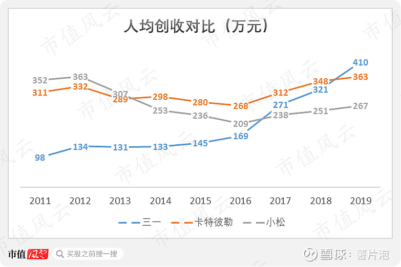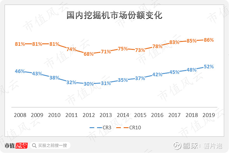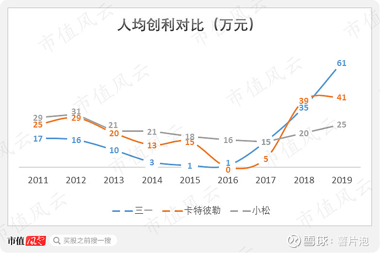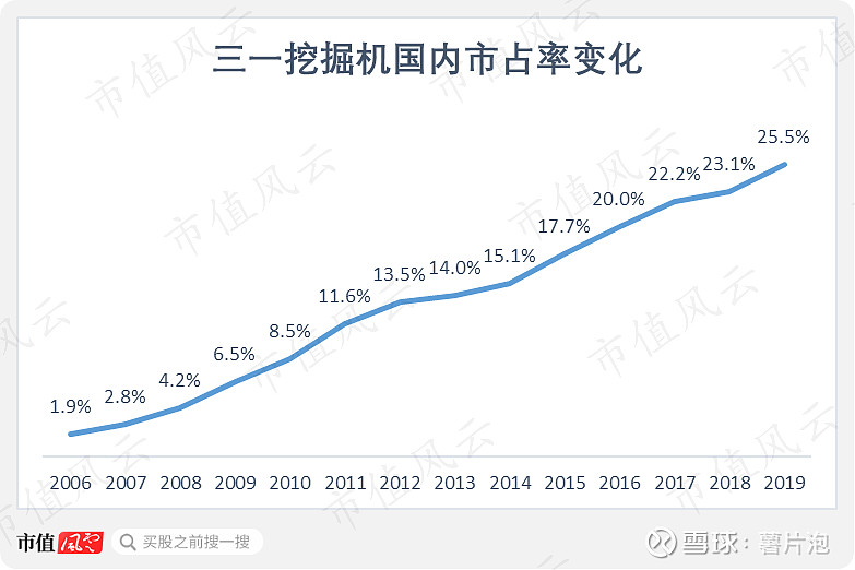 三一重工(600031):每股净资产 5.03元,每股净利润 0.79元,历史净利润年均增长 29.32%,预估未来三年净利润年均增长 34.71%,更多数据见:三一重工600031核心经营数据 三一重工的当前股价 15.6元,市盈率 12.65,未来三年的估值假设和预期收益率如下:15倍PE,预期收益率 85.86%;20倍PE,预期收益率 147.81%;25倍PE,预期收益率 209.76%;30倍PE,预期收益率 271.71%。 在三一董事长梁稳根的老家湖南娄底,有一句民间谚语:“讨米讨得久,总要碰席酒”。当全国上百家挖掘机企业只剩如今二十余家之际,三一的市值也在资本热潮助推下,攀升至3500亿元。 纵观国内,不管是福耀玻璃曹德旺、格力电器董明珠,还是美的集团方洪波,一时都风头无两。中国制造业终于重新踱回镁光灯下,而这一切,对于30年前的三一来说,宛若梦幻…… 1989年,三一集团的前身湖南涟源焊接材料厂成立;1993年,三一集团投资创建三一重工(600031.SH)(“三一”,“公司”);2003年,三一重工在上交所上市。 从一家小焊接厂到世界500强,三一仅用30年时间,就成长为全球知名的工程机械制造商。 渡尽劫波豪杰在,历经周期与波折,三一扣准时代脉搏,乘势而起。 一、投资驱动型经济的“卖铲人” (一)β:时代红利+行业规模 三一成长的底板,是中国的城镇化和工业化进程。 1995-2019年,我国基建投资额由4118亿元增至18.6万亿元,CAGR达17%;1990-2019年,我国房地产开发投资额从253亿元增至13.2万亿元,CAGR达24%。 在此背景下,我国城镇化率由1990年的26%提升至2019年的60%。 (来源:wind) 时代红利下,我国工程机械行业开始迅速崛起,需求加速释放。2000-2019年,A股工程机械板块整体营业收入由48亿元增至2130亿元,增长了44倍,CAGR达到22%。 (来源:wind) 在投资拉动经济的传统模式里,紧跟时代发展的主流路径,此谓之天时。 另一方面,工程机械行业全球市场规模足够大。2019年,全球工程机械销售额超1.3万亿人民币;国内工程机械行业销售收入达到6600亿元,国内行业空间同样广阔。 万亿级的规模决定了行业天花板足够高。所谓“海阔凭鱼跃,天高任鸟飞”,“钓鱼的第一要义,是到有鱼的地方去钓”。在挤满大鱼的大江大河里,即使是姜太公那种钓法,也保不齐盆满钵满。 此谓之地利。 天时、地利都有了,还只是成大事的必备基础,毕竟抱着金饭碗饿死的人也不在少数。 这时人的主观能动性所能发挥的作用就是关键。 (二)α:产品力+渠道+数字化升级 1、产品力过硬 工程机械设备的本质,是下游客户的“生产资料”。它具有两大特征:高成本+耐用性。 高成本意味着机器故障停运时,客户无法直接修复,造成直接损失较大;且较高的设备购置成本和售后成本,使得替换成本高,客户具有粘性。 耐用品则意味着设备折旧期限长,零配件更换率高。因此对下游客户来说,设备的全生命周期成本,不仅包括购买成本,还包括配件、维护、燃料、人员等。 (来源:风云君制作) 因此,优质产品提供的议价空间来自于三方面: 首先是过硬的产品品质带来较低的使用成本,比如操作简便、节油等; 其次是减少停机时间,及时、专业的售后服务降低客户停机的隐形成本; 还有残值率高。 三一创始人肯定明白这些道理。 说到三一创始人梁稳根,其目前直接持股2.78%,另外他作为控股股东的三一集团持有三一30.17%的股权,梁稳根为三一实控人。 其他股东包括中国证金,持股2.75%;中央汇金持股0.98%;阿布扎比投资局持股0.65%等。 上市之初,三一的核心产品以混凝土机械为主,此后三一迅速成长为国内混凝土机械领域的龙头。 而挖掘机是工程机械适用范围最广的品种,又被称为“工程机械皇冠上的明珠”,谁拥有了这颗明珠,谁就拥有更好的发展前景。 因此自2010年起,发展挖掘机成为当时三一业务战略的重点突破方向。目前,三一产品涵盖挖掘机械、混凝土机械、起重机械、桩工机械、路面机械等。 2020年上半年,三一挖掘机械营收186亿元,占比39%,是公司第一大收入来源,国内市场上连续第10年蝉联销量冠军;混凝土机械实现营收135亿元,占比28%,稳居国内第一品牌。 起重机械营收达94亿元,占比19%;桩工机械营收38亿元,占比8%,同样是国内第一;路面机械营收15亿元,占比3%。 混凝土机械是跟房地产投资最相关的产品,更依赖于基建投入力度。而挖掘机下游应用领域更广泛,矿山开采、乡村改造、机器替人的过程中都能用到,需求来源广泛,公司的收入也更加多元化。 如今,国内市场逐渐转向存量市场,主要机械设备陆续进入更新需求为主的阶段。各大主机厂积极布局海外,纷纷推出国际化战略,以降低受单一区域行业景气度的影响。 2006年开始,三一在海外成立或收购子公司。目前,三一在海外建有印度、美国、德国、巴西等四大研发和制造基地,业务已覆盖全球100多个国家和地区。2019年,三一国际营收142亿元,占比19%,较2006年提高9个百分点。 (来源:三一官网) 不管愿不愿意,国内机械制造企业最终的竞争就是国际市场竞争,把产品卖到海外去,就是衡量产品竞争力的标尺之一。 三一的业务国际化是必由之路,从企业成长的角度来看是挑战,从增强业务抗风险能力的角度看是机遇。 (1)挖掘机业务:逐渐成为利润核心 自2015年以后,投资驱动的工程机械产生的财富效应逐渐减弱,行业附加值较低的设备逐渐出清,且随着中大型挖掘机国产化推进,如同大多数传统行业一样,挖掘机的市场格局也呈现龙头崛起的局面。 2015-2019