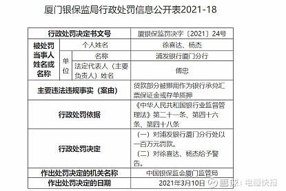招商银行(600036):每股净资产 22.3元,每股净利润 3.13元,历史净利润年均增长 26.51%,预估未来三年净利润年均增长 14.28%,更多数据见:招商银行600036核心经营数据 招商银行的当前股价 31.63元,市盈率 8.82,未来三年的估值假设和预期收益率如下:15倍PE,预期收益率 121.54%;20倍PE,预期收益率 195.38%;25倍PE,预期收益率 269.23%;30倍PE,预期收益率 343.07%。 浦发银行(600000):每股净资产 16.36元,每股净利润 1.85元,历史净利润年均增长 26.78%,预估未来三年净利润年均增长 8.47%,更多数据见:浦发银行600000核心经营数据 浦发银行的当前股价 10.42元,市盈率 5.01,未来三年的估值假设和预期收益率如下:15倍PE,预期收益率 239.88%;20倍PE,预期收益率 353.17%;25倍PE,预期收益率 466.47%;30倍PE,预期收益率 579.76%。 《电鳗快报》 赵超/文 作为1999年在上海证券交易所挂牌上市的全国性股份制商业银行,浦发银行(600000.SH)分行/支行自2020年12月以来连续领到三张罚单。 《电鳗快报》研究发现,浦发银行分行/支行被处罚的原因,包括“贷款部分被挪用作为银行承兑汇票保证金或存单质押”、“违规通过贷款、理财提供融资”、“信贷资金被挪作他用”等。 此外,2020年,虽然浦发银行营业收入同比增长,但归属于母公司股东的净利润却呈现下滑。 分公司被罚 乱象频现 2021年3月10日,中国银保监会厦门监管局发布的《厦银保监罚决字〔2021〕24号》显示,浦发银行厦门分行及徐喜达、杨杰,因贷款部分被挪用作为银行承兑汇票保证金或存单质押,依据《中华人民共和国银行业监督管理法》第二十一条、第四十六条、第四十八条,对浦发银行厦门分行处以一百万元罚款;对徐喜达、杨杰给予警告。 《中华人民共和国银行业监督管理法》第二十一条规定:银行业金融机构的审慎经营规则,由法律、行政法规规定,也可以由国务院银行业监督管理机构依照法律、行政法规制定;前款规定的审慎经营规则,包括风险管理、内部控制、资本充足率、资产质量、损失准备金、风险集中、关联交易、资产流动性等内容;银行业金融机构应当严格遵守审慎经营规则。 《中华人民共和国银行业监督管理法》第四十六条规定:银行业金融机构有下列情形之一,由国务院银行业监督管理机构责令改正,并处二十万元以上五十万元以下罚款;情节特别严重或者逾期不改正的,可以责令停业整顿或者吊销其经营许可证;构成犯罪的,依法追究刑事责任:未经任职资格审查任命董事、高级管理人员的;拒绝或者阻碍非现场监管或者现场检查的;提供虚假的或者隐瞒重要事实的报表、报告等文件、资料的;未按照规定进行信息披露的;严重违反审慎经营规则的。 《中华人民共和国银行业监督管理法》第四十八条规定:银行业金融机构违反法律、行政法规以及国家有关银行业监督管理规定的,银行业监督管理机构除依照本法第四十四条至第四十七条规定处罚外,还可以区别不同情形,采取下列措施:责令银行业金融机构对直接负责的董事、高级管理人员和其他直接责任人员给予纪律处分;银行业金融机构的行为尚不构成犯罪的,对直接负责的董事、高级管理人员和其他直接责任人员给予警告,处五万元以上五十万元以下罚款。 2021年1月29日,浦发银行杭州余杭支行,因违规通过贷款、理财提供融资,根据《中华人民共和国银行业监督管理法》第四十六条,被中国银保监会浙江监管局罚款50万元。 2020年12月30日,徐州银保监分局发布的《徐银保监罚决字〔2020〕17号》显示,浦发银行股份有限公司徐州分行,因信贷资金被挪作他用、贸易背景真实性审核不严,根据《中华人民共和国银行业监督管理法》第四十六条第(五)项,被中国银行保险监督管理委员会徐州监管分局,罚款85万元。 《中华人民共和国银行业监督管理法》第四十六条第(五)项规定,银行业金融机构严重违反审慎经营规则的,由国务院银行业监督管理机构责令改正,并处二十万元以上五十万元以下罚款;情节特别严重或者逾期不改正的,可以责令停业整顿或者吊销其经营许可证。 收入增长 利润下滑 根据浦发银行《2020年度业绩快报公告》,公司实现营业收入1963.71亿元,同比增加56.83亿元,增长2.98%;归属于母公司股东的净利润583.25亿元,同比下滑0.99%。 截至2020年末,浦发银行资产总额7.96万亿元,较上年末增加9533.22亿元,增长13.61%;其中,贷款总额4.54万亿元,较上年末增加5080.72亿元,增长12.62%。报告期末负债总额7.31万亿元,较上年末增加8685.58亿元,增长13.48%;其中,存款总额4.08万亿元,较上年末增加4490.34亿元,增长12.38%。 浦发银行表示,2020年,公司全力以赴降风险,加快存量不良资产清收处置,加大风险成本计提,进一步夯实稳健发展的基础。截至报告期末,公司后三类不良贷款余额784.61亿元,较上年末减少34.20亿元;不良贷款率1.73%,较上年末下降0.3个百分点;拨备覆盖率为152.77%,较上年末上升17.83个百分点。 根据浦发银行三年行动计划,以“建设具有国际竞争力的一流股份制商业银行,推动公司成为新时代金融业高质量发展的排头兵和先行者”为战略目标。公司拥有银行、租赁、基金、信托、货币经纪、境外投行等多种金融牌照。 2020年上半年,浦发银行口径实现营业收入1014.07亿元,同比增加38.08亿元,增长3.90 %;实现利润总额335.66亿元,同比减少46.52亿元,下降12.17%;税后归属于母公司股东的净利润289.55亿元,同比减少31.5