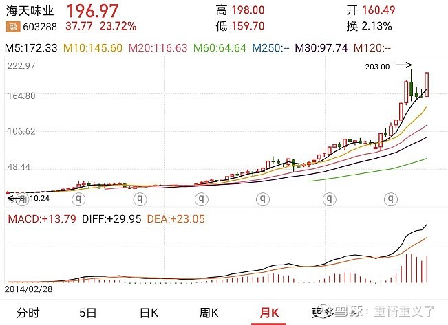 海天味业(603288):每股净资产 5.58元,每股净利润 1.62元,历史净利润年均增长 25.56%,预估未来三年净利润年均增长 19.32%,更多数据见:海天味业603288核心经营数据 海天味业的当前股价 94.21元,市盈率 50.19,未来三年的估值假设和预期收益率如下:15倍PE,预期收益率 -56.18%;20倍PE,预期收益率 -41.58%;25倍PE,预期收益率 -26.97%;30倍PE,预期收益率 -12.36%。 导语 如果长期看我文章的粉丝朋友就会知道,我分析个股,主要从公司的商业模式、基础数据出发,结合估值水平和技术面趋势,根据券商的卖方研报业绩预测,做一个简单的市值预测,如果对了呢,是运气,如果错了呢,一般就是水平没到家,。 $海天味业(SH603288)$ $恒瑞医药(SH600276)$ $福耀玻璃(SH600660)$ #紫金矿业20年净利同比增超5成# #宝能系拟减持华侨城A# #招商银行去年净利同比增四个点# 我偶尔会对一些比较优质的个股做一些看空的预测,比如丸美股份,万孚生物,壹网壹创等,事后证明我真蒙对了。今天就再来一篇,对海天味业的看空预测,我的看空逻辑如下: 1、估值太高:看空的最大理由。看空不做空,做空是一种收益有限而风险巨大的投机方式。美国在70年代有过美股漂亮50的行情,短期的结果不太美妙。如下图 2、成长性放缓。2020年公司前三季度的营收利润增速分别为15%,19%,毛利率降低5%左右,均低于前三年平均。在公司如此高估值下,很有可能会通过下跌或长期横盘来消化估值。可以参考美股可口可乐2000年代的走势,1998-2008年可乐股价十年零涨幅。 3、技术面双顶。2020年马上过去,2021年的宏观预期是经济复苏,很有可能市场风格会转变。海天目前大趋势很可能会演变为双(三)重顶或者头肩顶结构,参考今年科技股行情如深南电路 公司简介 海天味业的主营业务主要有三大品种,酱油,调味酱和蚝油。毛利率为50%,47%,38%,酱油占比最大。其中主力品种海天酱油近5年年化增长率为12%,蚝油15%,调味酱只有6%左右。 海天酱油作为中国规模最大的调味品企业,在降成本上有优势,同时公司的渠道掌控力和品牌力比较强,可以逐年提价。这几年公司的业绩稳健增长,就是量升价增双重作用的结果。未来这项优势也不会丧失,长期来说,公司非常值得看好。 公司的基本面分析 营业收入近10年增长近4倍,净利润增长近5倍,净利润增速高于营收增速,这是提价降成本的结果。预期未来公司保持年化15%的增速很有希望。 毛利率40%+与净利率20%+,自2010年以来一路上升,毛利率2019年有所下跌。这个是不是意味着海天酱油有10年的周期存在?任何行业都是有周期的,即便是茅台,我们可以先观察。 经营净现金流,与净利润的比值超过1,经营质量非常高。这就是消费属性股票的魅力所在,赚取的利润都是真金白银,可以拿出来分红,而不会影响公司的后续发展。 公司的资产负债分析 公司的资产负债率很低,30%以下,主要是流动性负债,合同负债/应付账款/应付工资税费,基本无长短期借款。资产负债表非常干净,最主要的资产是现金。 公司的净资产收益率 净资产收益率,近10年都在30%以上,在我观察到的个股当中,只有贵州茅台,海康威视和海天味业三家,在这项指标上,海天味业是顶尖存在。 公司的技术面分析 月线图,公司2014年上市,最近7年涨幅20倍,年化收益率近55%,而公司同期净利润年化增长率只有20%左右。根据均值回归理论,未来公司10年的年化收益率很可能会大幅度降低,意味着股价很有可能通过下跌或者长时间横盘来消化估值,拉平收益率。 日线图,今年以来,公司快速上涨超过100%,对于一个上千亿市值的企业来说,这个短期涨幅相当高。目前股价经过2个月调整后再度上涨至前期历史高点附近,至于还能涨多高,不好说,个人倾向于这里会形成三重顶或双重顶中的一顶,或者是头肩顶的头,至于到底如何演化,拭目以待吧。 公司的估值与预测 市净率35倍(没看错,是市净率35倍!),市盈率103倍,已经远远超过公司合理估值区间的高估线,完全进入到泡沫区间。 机构预测公司2020-2022年净利润为63/75/90亿,给予2021年40倍估值,对应市值3000亿,相对目前市值6400亿,涨幅为-53%。 结束语 大家都有一个常识,树不能长到天上去,但是遇到一个风口的话,猪很有可能飞上天。海天味业在投资中是棵大树,在今年疫情影响,世界的不确定性增加,衰退预期加强,金融大放水,核心资产这种猪就飞到风口上,美股的科技股,A股的高端品牌/消费品的内在核心逻辑是一样的,那就是在这个不确定的世界里比较确定的有质量的保值资产,可以有效对冲衰退。 不管怎样,涨出来的风险,跌下来的机会,如果你有这种心理预期,并做好打算,那就慢慢等待机会的到来吧 作者:重情重义了原文链接:https://xueqiu.com/1497308647/174935257 转载请注明:www.51xianjinliu.com » 海天味业未来五年翻倍潜力巨大 喜欢 (1)or分享 (0)