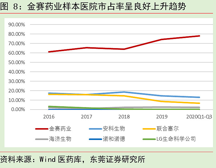 长春高新(000661):每股净资产 37.7元,每股净利润 5.92元,历史净利润年均增长 0.0%,预估未来三年净利润年均增长 48.59%,更多数据见:长春高新000661核心经营数据 长春高新的当前股价 460.21元,市盈率 66.12,未来三年的估值假设和预期收益率如下:15倍PE,预期收益率 -36.7%;20倍PE,预期收益率 -15.6%;25倍PE,预期收益率 5.51%;30倍PE,预期收益率 26.61%。 本文首发公众号:财报是一本故事书,欢迎关注! 欢迎关注:一家挺有故事的企业:亚洲第一生长激素龙头—长春高新 欢迎关注:2020年长春高新年报解读 上一篇刚写完这里: 看完了这三张表,我的头脑里冒出了这样的疑问,如果公司剥离了地产业务,公司的经营现金流岂不完美,或者让金赛药业独立上市岂不完美? 如果剥离了地产业务? 在第一篇就写到:1993年6月,长春高新技术产业(集团) 股份有限公司由长春高新技术产业发展总公司独家发起设立。1996 年12月18日,公司股票在深圳证券交易所挂牌上市,是东北地区最早的一批上市公司之一。 公司成立之初以高新区基础设施建设为主,后逐步转型。 公司的前身就是以基础设施建设主,地产才是公司的老本行,只不过后来阴差阳错,与金磊成立了金赛药业,才有了今天的长春高新。至于要不要剥离地产业务,如果站在我们小股东立场上,我是非常渴望把嗜血的地产业务剥离,但如果站在公司的角度想,就未必了,因为地产本身就是公司的前身,承载着公司的历史与文化,不是说能断就断的。 如果让金赛药业独立上市? 那么单独拆分金赛上市呢?答案是不能,因为根据《上市公司分拆所属子公司境内上市试点若干规定》明确了分拆条件,设置7大“门槛”。其中一个门槛就是“上市公司最近1个会计年度合并报表中按权益享有的拟分拆所属子公司的净利润不得超过上市公司合并报表净利润的50%;上市公司最近1个会计年度合并报表中按权益享有的拟分拆所属子公司净资产不得超过上市公司合并报表净资产的30%。”仅这一条就不满足。所以在2019年,公司收购金赛药业少数股东权益,理顺管理机制,开启发展新篇章。 下面来看看公司产品的竞争格局 1、生长激素空间广阔,驱动公司长期发展 全球生长激素市场成熟,规模相对稳定。近年来,全球市场规模基本维持在 30 亿美元 左右,95%的市场份额被五大厂家分割,分别为:诺和诺德、辉瑞、礼来、默克、罗氏。 2019 年,诺和诺德销售额全球销售总额约 43%,辉瑞销售额占全球销售总额约 18%,礼来 占 15%;默克占 10%;罗氏占 9%。其中,诺和诺德生长激素市占率连续多年全球第一。 国内生长激素市场规模处于扩张阶段。根据 Wind,近年来,国内样本医院生长激素销售 额呈上升趋势,2019 年国内样本医院生长激素销售额为 7.95 亿元,同比上涨 74.05%, 2016 年-2019 年CAGR 为 32.06%,增速较快。重组人生长激素在国内临床疾病治疗领域有巨大增长潜力。我国生长激素治疗矮小症的市场规模有望在 2025 年达到 147.76 亿元-210.71亿元,是 2019 年市场规模的 2.50 倍-3.57 倍。 2、国内生长激素竞争格局良好 金赛药业在国内生长激素市场独占鳌头,市占率第一。2018 年起,金赛药业生长激素在 样本医院的市场占有率上升幅度加大,安科生物、联合塞尔的市占率有明显下降。2019年, 金赛药业生长激素样本医院销售额为5.92亿元, 2016年-2019年的CAGR为40.88%, 增幅较大。2020 年前三季度,金赛药业生长激素样本医院销售额为 4.46 亿元,样本医 院市场占比达到 78.07%,稳居行业第一。安科生物的生长激素样本医院市场份额排行业 第二,2020 年前三季度市占率为 12.98%,比 2019 年下降了 1.49%。诺和诺德生长激素 样本医院市场占有率排名第三。 3、国内促卵泡素市场空间较为广阔 全球促卵泡素市场成熟,规模比较稳定,由默克集团和默沙东两强垄断。自2013年至2018 年,全球促卵泡素规模维持在11-13亿美元之间。我国促卵泡素发展起步较晚,目前处于快速发展阶段。2015年之前,我国重组人促卵泡素依赖进口;201年,金赛药业上市了第一支国产重组人促卵泡激素,打破进口垄断,抢占国内市场。促卵泡素市场规模有可观增长潜力,我国促卵泡素潜在市场空间在127.60亿元-170.13亿元,约为2019年市场规模2.03倍-2.70倍。目前促卵泡素市场以进口产品为主,金赛药业是国产重组人促卵泡激素唯一厂家,进口替代空间可观 4、水痘疫苗 水痘疫苗市场竞争格局呈三分鼎足局面,百克生物位居行业第一。国内水痘疫苗接种率不及美国,市场仍有12亿的增长空间 5、鼻喷流感疫苗 百克生物鼻喷流感疫苗在国内崭露头角。鼻喷流感疫苗在国内发展较慢,百克生物在 2020 年 2 月 26 日获批上市国内第一支鼻喷流感疫苗,市场规模约为 4.70 亿元。 公司主要储备项目金赛药业研发力度较大,在研管线丰富。 百克生物带状疱疹疫苗重磅项目 百克生物有 12 种在研疫苗和 2 个用于预防传染性疾病的在研全人源单克隆抗体,其中3 个项目处于临床阶段。其带状疱疹减毒活疫苗项目处于临床Ⅲ期;目前国内有 1 家企业上市重组带状疱疹疫苗(引进国外),竞争较小。百克生物子公司吉林迈丰的冻干人用狂犬疫苗处于临床Ⅲ期;目前国内超过 10 家企业生产人用狂犬疫苗,且有多家在研企业,人用狂犬疫苗市场竞争激烈。百克生物的吸附无细胞百白破联合疫苗获批临床。根据 Wind 医药库,目前有 6 所企业出售百白破疫苗,百白破疫苗研发企业中有 3 家处于临床Ⅰ期, 5 