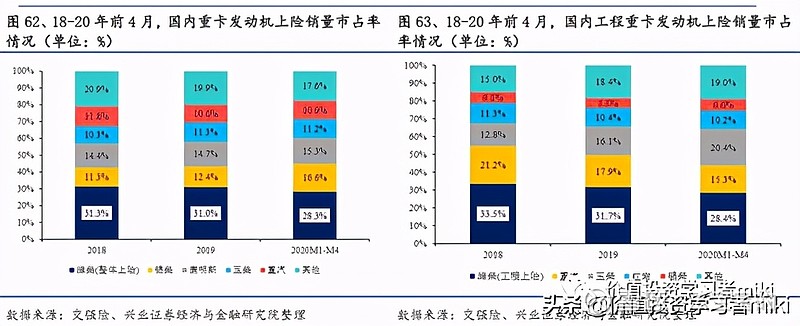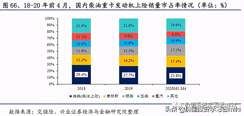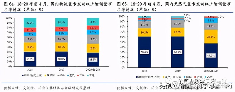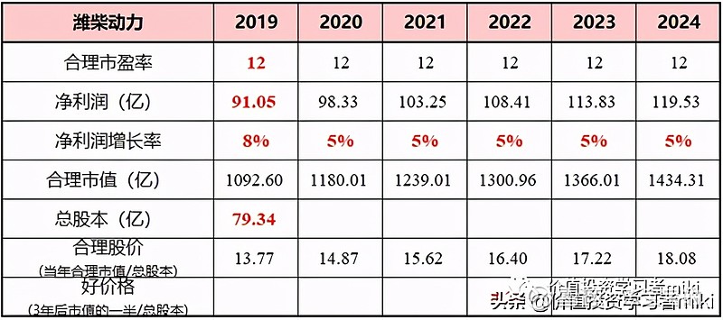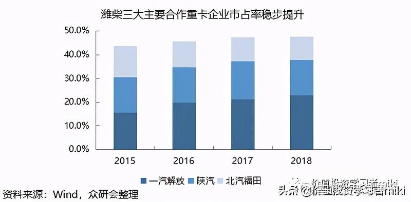 潍柴动力(000338):每股净资产 5.4元,每股净利润 1.08元,历史净利润年均增长 29.3%,预估未来三年净利润年均增长 10.34%,更多数据见:潍柴动力000338核心经营数据 潍柴动力的当前股价 12.7元,市盈率 10.37,未来三年的估值假设和预期收益率如下:15倍PE,预期收益率 71.36%;20倍PE,预期收益率 128.48%;25倍PE,预期收益率 185.6%;30倍PE,预期收益率 242.72%。 不得不说A股起名真的挺重要的,当时就感觉潍柴动力这名字怎么透着一股土气,好像是做柴油发动机的?没有一点想象力的感觉。但是当真的去了解过之后才发现,潍柴动力还是值得研究的。 $潍柴动力(SZ000338)$ 之所以叫潍柴动力,是因为公司前身起家于山东潍坊的柴油机厂。当然,现在柴油发动机还是公司的一大主营业务,为动力总成;同时又把业务范围拓展到了整车,关键零部件,智能物流以及新能源。 动力总成还是柴油发动机,以及动力系统的核心技术配件,主要是变速箱(法士特),车桥等(汉德)。 整车业务主要是主营重卡的陕重汽。 零部件板块以株洲湘火炬为核心。 智能物流板块,主要是叉车及仓储物流相关的机械运输设备(凯傲)。 柴油发动机以及重卡均为寡头垄断市场,这种公司我们最喜欢了。 柴油发动机前五强市占率接近60%,重卡前五强市占率在83%,高市场集中度原因在于: (1)固定资产投资大,阻挡了竞争对手进入。潍柴动力是中国多缸柴油机(主要为车用柴油发动机)龙头,2019年市占率为17%,位居全国首位。其中,重卡发动机市占率为34%。 (2)细分市场容量较小(重卡市场约100万辆/年)+单厂盈亏平衡点高(几万-10万/年),决定了高市场集中度(只可能存在十个以内的大企业),也强化了议价能力,行业龙头的投资价值高。 财务报表数据分析 从2016年起,潍柴动力的总资产进入了增长的快车道,到2020三季报为止,总资产和营业收入增长15%以上。 潍柴的ROE 比较高,目前在20%以上,不过高ROE是靠着高负债率产生的,最近几年的负债率都在70%左右,确实比较高。玉柴集团的负债率为64%,也不低,但是对比欧美老牌厂商只有15%的负债率,潍柴动力的负债率还是比较高,这也是资本市场对其很有争议的一点。 我们来分析一下潍柴动力负债的结构,看看这1620亿负债都是啥?首选,这里面有息负债是357亿,占比22%,然后潍柴的货币资金是488亿,偿债风险是暂时没有的。 应付账款和票据,592亿,占比36.5%,这是无偿占用的上下游的资金,肯定不能算是有问题的负债吧,只能说明潍柴很牛X。合同负债,106亿,这就是预收账款,意思同上。长期应付职工薪酬,117亿,看上去多了点,实际上是旗下凯傲集团的养老金计划,也没有什么问题。其实长期有息负债也是收购了凯傲和德马泰克之后产生的,国外利息低,大家懂得……其他零零碎碎,就不一一列举了,详情可以自查年报。 所以,虽然负债率略高,但是负债结构上看没有啥问题,也没有偿债风险。而且净利润现金比率很高,说明公司赚到的是真金白银。 还有一个比较有争议的点是潍柴的200多亿商誉~总有人会想这个商誉会不会有减值风险,我们不妨来分析一下。 收购凯傲(未上市公司),产生80亿人民币的商誉,迄今为止投入不到10亿欧元,持有43.6%的股份,目前凯傲的市值是97亿欧元,看不到减值的迹象。 收购德马泰克,产生140亿商誉,这家公司的供应链解决方案供全世界40%的零售商使用,收购的时候估值就有31亿美元,因为彼时财务表现不佳,21亿美元收购金几乎全数转化为商誉。但在潍柴旗下已经扭亏为盈,2020年订单翻倍,未来10年还是物流业的高速发展期,故风险不大。 1月开始带大家布局的陕西黑猫(601015)涨幅171%,和盛和资源(600392)涨幅175%,到现在都已经实现了翻倍! 还有前段时间在(公、众、号)分享的中材节能(603126)和海得控制(002184) 也都吃了一波大肉,这足以证明笔者的实力。 3月布局策略已经开始了 ,把握住好机会!最近复盘精选一只高质量翻倍妖股。该股目前已被游资机构重仓,处于震荡上行趋势,庄家控盘程度极高,近期受大盘调整后,技术上弧形底部,主力控盘不错。尾盘大资金介入明显,这波大资金,很大机会要打造一只大妖股!也是我最近一直重点关注!短期预计至少有128%以上的涨幅,明天正是低吸建仓最佳时机!早点跟上,早点回血。想跟上布局 操作的朋友来 公 众 号:梦 凰 之 股 。回复:2,即可! 入股锡里斯动力20%,买入4000万英镑(3.4亿人民币),现在持有市值约48亿元。 入股巴拉德动力20%,买入1.64亿美金,现在市值115亿美金。 入股PSI(天然气发动机),买入6000万美金,41%股份,目前已转入店头市场交易,市值约1.27亿。 这些收购不仅大幅升值,产生的商誉也很少,潍柴目前的商誉主要就是KION和德马泰克,还有一些其它的收购,股权都是升值且没有什么商誉的就不再一一列举~ 毛利率水平也挺稳定,在22%左右。对比康明斯24.78%的毛利是个不错的成绩。就是主营利润率比较低,只有个位数7%,营业成本中销售费用的比例很高,几乎吃掉了利润的40%,这个部分可以关注公司以后是否有提升。 行业分析 对于行业格局基本上已经确定的公司,其增长空间的计算会比较趋于确定。 动力总成部分(柴油发动机),潍柴动力的市占率一直比较稳定。虽然略有下降,但依然超过25%,行业领先地位明显。 相对稳定的市场里,想要提升就是争夺存量。比如与中国重汽的合作,使得潍柴动力的发动机在重汽的配套比例中有所提升,从0%抢到了2.5%的份额。所以这部分收入