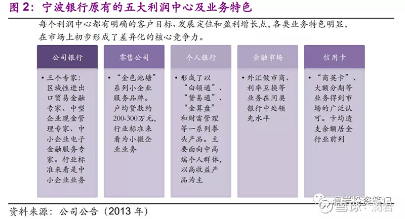 招商银行(600036):每股净资产 22.3元,每股净利润 3.13元,历史净利润年均增长 26.51%,预估未来三年净利润年均增长 14.28%,更多数据见:招商银行600036核心经营数据 招商银行的当前股价 31.63元,市盈率 8.82,未来三年的估值假设和预期收益率如下:15倍PE,预期收益率 121.54%;20倍PE,预期收益率 195.38%;25倍PE,预期收益率 269.23%;30倍PE,预期收益率 343.07%。 宁波银行(002142):每股净资产 14.67元,每股净利润 2.15元,历史净利润年均增长 27.57%,预估未来三年净利润年均增长 19.32%,更多数据见:宁波银行002142核心经营数据 宁波银行的当前股价 24.04元,市盈率 10.43,未来三年的估值假设和预期收益率如下:15倍PE,预期收益率 127.9%;20倍PE,预期收益率 203.86%;25倍PE,预期收益率 279.83%;30倍PE,预期收益率 355.79%。 20140708-光大证券-宁波银行-002142-区域经济波动中的一枝独秀 作者:分析师王剑 宁波银行是 A 股上市银行中最具区域特色、中小企业特色的银行,区域布局以长三角为主,超过 60%信贷投放于浙江省,90%以上投放于长三角。 宁波银行处于 2011 年浙江中小企业流动性危机的中心,但由于长期以来保持稳健、保守的信贷投放风格,严格遴选客户,规避过度投资的企业,因此所受冲击较小,资产质量明显优于全省水平,在上市银行中也居前列。 2014 年以来,整体流动性有所好转,中小企业却因互保联保风险漫延而继续走弱。目前互保联保冲击已至 4-5 圈,危机已接近尾声,未来有可能逐步企稳。 宁波银行信贷集中于中小企业,收益率较高,几乎不面临脱媒威胁。存款基础良好,成本较低,主要来源为企业客户的结算存款等,来源较为单一,宁波银行已着手扩大负债种类,通过负债的多元化提升负债整体稳定性。利率市场化对银行的冲击,未必来自成本上升(信贷利率提升可对冲这一成本上升),而是来自存款利率波动加大,稳定性变差,宁波银行已初步具备应对能力。 宁波银行于 1997 年 4 月由多家城信社组建而成,后于 2006 年引进境外战略投资者华侨银行,并于 2007 年 7 月在深圳证券交易所中小企业板上市。 浙江省及长三角是中小企业、民营企业活跃的地区。宁波银行沿袭了早期城信社的经营风格,长期耕耘于区域内的中小企业业务,也是 A 股上市银行中最具中小企业业务特色的商业银行。宁波银行原有五个利润中心,包括公司银行、零售公司、个人银行、金融市场、信用卡,新近增加票据业务、投资银行、资产托管三个利润中心,利润中心总数达到八个。总体而言,宁波银行的中小企业与零售业务特色鲜明,在业内具有较大的差异化竞争优势。 浙江区域经济有比较鲜明的特点。 首先,浙江经济长期保持“小政府、大市场”的特点,有利有弊。利的方面在于,政府干预少,政府的非税类收费低,有利于中小企业发展。1993 年国企改革中,浙江进行了最为彻底的私有化改革,目前民营企业占据绝对比重。 浙江港口优势突出,经济外向程度高,中小企业大多是服务外需的制造业。弊的方面在于,由于政府财力弱,也导致了公共投资不足,基建、卫生、医疗等均较落后,整体产业缺乏规划,中小企业零散发展,块状经济,难形成完整的产业链,转型升级乏力,抗风险能力弱。近年,政府有意识加大投资,弥补前期公共投资的不足。 区域金融方面,根据优序融资理论,中小企业的主要融资方式是银行信贷(未达银行服务门槛的则以非正规金融为主)。因此,中小企业的高比重也导致了浙江金融体系中银行业的高比重。1980 年代金融自由化改革,城乡可自由开办信用社,主要服务中小企业。这批信用社很多成长为了包括宁波银行在内的优秀中小银行,在中小企业业务上奠定了良好的基础,支持中小企业得力,金融生态健康。但后来过于激烈的银行业竞争,客观上导致了 2009 年后的过度信贷,酝酿了中小企业流动性危机。 宁波地区域经济很大程度上与全省类似,个别细节上有所差异。比如借助世界级的天然良港优势,宁波经济外向程度高于全省,因此受外需波动影响更大。宁波中大企业比省内其他地区发达,企业的规模结构、所有制结构较全省更为均衡,企业整体抗风险能力较强。另外,宁波是全省居民收入最高的地区,有助于银行零售业务的开展。 2011 年温州中小企业流动性危机的导火索,是央行于 2011 年 6 月治理票据融资乱象,导致大批中小企业资金链断裂。但其根源是 2008 年底开始的大规模经济刺激,当时信贷过度投放,中小企业过度杠杆,短贷长投(期限错配), 投往房地产等领域,最终在银根收紧后资金链断裂。而后,在欧美经济危机导致出口放缓、国内 GDP 增长放缓、货币政策持续稳中偏紧等因素的共同作用下,中小企业危机陆续向省内其他地区漫延,目前基本上已席卷全省。 危机基本上可以大致划分为三个阶段。一是自 2011 年 6 月至 2013 年初,以温州为主的中小企业处于剧烈去杠杆阶段,表现为温州地区银行不良率快速攀升。这期间倒闭的企业以过度杠杆的投机性企业为主,且主要分布于温州,这类企业不是宁波银行的目标客户,且宁波银行在温州的风险敞口较小,因此这一阶段宁波银行不良率仅微弱上升;二是 2013 年上半年的短暂缓和,由于这段时期流动性明显好转,危机有所缓解;三是 2013 年下半年以来,由于国内GDP 增长放缓、货币政策持续稳中偏紧(导火索是央行治理影子银行及“钱荒”事件)所导致的中小企业经营情况再度恶化,并且向全