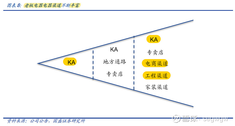 老板电器(002508):每股净资产 6.72元,每股净利润 1.55元,历史净利润年均增长 33.73%,预估未来三年净利润年均增长 10.14%,更多数据见:老板电器002508核心经营数据 老板电器的当前股价 26.25元,市盈率 16.1,未来三年的估值假设和预期收益率如下:15倍PE,预期收益率 18.34%;20倍PE,预期收益率 57.79%;25倍PE,预期收益率 97.23%;30倍PE,预期收益率 136.68%。 引言 欧美厨房面积大,做菜以慢炖为主。而中国厨房的面积小,做菜喜欢炒/煎/炸,要求油烟机的吸力强、耐油烟。由于中国和欧美的厨房环境不同,中国企业对烟/灶进行了本土化改进。老板和方太依托本土化优势,老板电器在市场上率先推出免清洗、大吸力为主要特点的油烟机;方太在市场上领先推出更具有设计感的油烟机。老板/方太已经在油烟机、燃气灶市场已经打败西门子。价值集训营今天将介绍国内厨卫电器市场龙头:老板电器。 01 公司简介 厨房家电包括油烟机、燃气灶、微波炉、洗碗机等,中国而言:1)农村住房不具备现代化厨房电器使用条件;2)城镇普通家庭,油烟机、燃气灶是必需品;3)富裕家庭的高端住宅还会配套洗碗机和嵌入式微波炉、蒸箱、烤箱等产品。 当前,中国白电(空/冰/洗)已经进入成熟期;厨房电器正处于成长期;洗碗机、扫地机器人等处于导入期。 厨电可以分为高端、次高端及大众品牌三个层次。以油烟机为例,高端市场(4000元以上)主要是老板电器、方太两家,次高端(2500-4000元)主要为华帝股份,大众品牌(2500元以下)则以美的集团和地方性品牌为主。 虽然厨电整体集中度低于白电,但高端厨电市场的集中度高,高端烟机、灶具前五强市占率分别高达87.13%、91.73%,呈现以老板电器、方太为主的双寡头格局。 老板作为国内高档厨电的龙头,旗下共有四大品牌:老板(高端)、帝泽(超高端)、名气(高性价比)、金帝(主打集成灶),可满足不同层次的市场需求,其中“老板”作为核心品牌,营收占比超过90%。公司核心产品为油烟机、燃气灶,2019年烟/灶营收占比分别为53%、24%,烟/灶的线下市占率也分别高达25.2%、23.1%。 国内房地产受国家政策调控,存在3年的景气波动周期。国内厨电受地产影响,也存在明显的周期波动,但老板电器却依靠自身成长穿越地产周期,业绩实现持续增长。高端品牌定位+把握渠道结构红利是穿越周期的两大动力,在2012-2014年房地产低迷期:1)公司油烟机均价从2010年2735元提升至2015年3940元,提价幅度44%。2)公司抓住电商渠道红利,油烟机份额从2010年10.13%提升至2013年15.80%。 02 业务模式 从历史来看,公司善于抓住每一轮渠道变革红利:1)2005年以前,公司终端销售绝大部分依赖于苏宁、国美等KA渠道进行,通过跟随苏宁/国美共同做大。2)由于单一KA渠道仅能满足一/二线城市需求,2005年公司开始拓展自身终端网络,到2009年地方通路及专卖店占收入比例已经达到20%;3)2012-2014年,公司搭上电商快速发展红利,布局电商成功穿越地产周期;4)2014-2017年:三四线城市的厨电潜在高端需求释放,公司通过拆分代理商/设立城市公司等方式推动渠道下沉;5)2017年以后,国内精装修房快速崛起(国内精装修率从2016年12%快速提升至2019年32%),老板电器在精装房中的市占率从2016年23%提升至2018年40%。 2月开始带大家布局的兴化股份(002109)涨幅119%,和金牛化工(600722)涨幅136%,到现在都已经实现了翻倍! 还有前段时间在(公、众、号)分享的中材节能(603126)和海得控制(002184)也都吃了一波大肉,这足以证明笔者的实力。 3月下旬布局策略已出炉 ,把握住好时机!我准备低吸一只高质量翻倍妖股!该股目前已被游资机构重仓,处于震荡上行趋势,庄家控盘程度极高,近期受大盘调整后,技术上弧形底部,主力控盘不错。尾盘大资金介入明显,这波大资金,很大机会要打造一只大妖股!也是我最近一直重点关注!短期预计至少有118%以上的涨幅,下周正是低吸建仓最佳时机!早点跟上,早点回血。 还.是.老.规.矩|-.嶶.|.訫:wek387,注明,3月,就可 以了 从配套率来看,厨电、中央空调最为受益精装修政策。精装修房配置可分为一、二、三级配套。其中,一级配套为传统烟灶(烟灶配套率在95%以上),二级配套增加了消毒柜(配套率约44%),三级配套为洗碗机、烤箱等新兴品类(配套率低于5%)。 工程渠道崛起,让厨电需求从ToC(面向个人客户)零售属性转为ToB(面向企业客户)属性,下游地产商会对厨电供应商的品牌力、现金流、服务能力等综合实力提出更高要求,中小厨电品牌很难进入地产商供应链,推动厨电龙头集中度提升。老板电器目前已经与百强地产商中88家签订合作协议,且与地产龙头碧桂园、万科等保持长期稳定合作。 老板电器在零售端长期培育的高端品牌形象具有天然号召力,高端厨电作为提升楼盘整体品质的载体,地产商更倾向于采购老板/方大等高端品牌。将楼盘分为高端(5万以上)、中端(2-5万)和低端(2万以下)三个层次时,老板电器不仅以21.2%占比位于高端楼盘第二,更是以43.1%占比位居低端楼盘第一名。 除了善于抓住渠道变革红利外,老板电器还具有:品牌优势、成本优势及研发优势。 (1)品牌优势。国内油烟机产品痛点是油烟吸净效果较差,厂家倾向于做大排风量的产品。2013年,老板电器跳脱行业的风量大战,率先提出“大吸力”概念。大吸力概念比大风量要更直观、更接地气,符合消费者的直观感受,更易于传播。同时,公司提出大吸力不等于大风量,还包括“