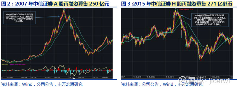 中信证券(600030):每股净资产 14.38元,每股净利润 1.16元,历史净利润年均增长 27.28%,预估未来三年净利润年均增长 16.06%,更多数据见:中信证券600030核心经营数据 中信证券的当前股价 23.4元,市盈率 20.3,未来三年的估值假设和预期收益率如下:15倍PE,预期收益率 1.21%;20倍PE,预期收益率 34.95%;25倍PE,预期收益率 68.69%;30倍PE,预期收益率 102.43%。 引言 金融三大板块各有特色:1)银行板块盈利能力强、估值低、股息率高,但成长能力弱;2)保险板块的成长性较强,容易取得超额收益,但股价弹性较低;3)证券板块的成长性居中,但业绩弹性最大,常被誉为牛市风向标(牛市第一个启动的板块)。由于证券行业收入与股票市场景气度密切相关,在股市大幅上涨时(成交量也高度活跃),券商的盈利能力显著提升,股价也会大幅上涨。价值集训营今天将介绍国内证券公司龙头:中信证券。 $中信证券(SH600030)$ 虽然短期内公司推出280亿配股计划,股价出现下跌,但长期有望强化公司龙头地位。 01 公司简介 券商业务主要包括经纪业务、投行业务、资管业务、自营业务、信用中介业务。 (1)经纪业务是代理买卖证券,由两部分收入构成:1)代理买卖证券的佣金收入;2)客户保证金的利差收入; (2)投行业务是帮助发行证券(股票、债券)获取的佣金收入; (3)资产管理业务是给客户提供投资管理服务,又可细分为:1)为单一客户办理的定向资产管理业务;2)为多个客户办理集合资产管理业务;3)为客户特定目的办理专项资产管理业务;4)公募业务; (4)自营业务是用自有资金买卖证券获取的投资收益; (5)信用中介是证券公司将资金和证券借给客户,供其买入或者卖出。又可细分为:融资融券、股权质押、约定购回等。信用中介可以提供稳定利息差收入。 资料来源:天风证券研究所 中信证券作为证券行业龙头,2017-2019年,公司营业收入、净利润、总资产、净资产均为行业第一,2019年净资本规模也为行业第一。近几年,公司各主要业务的收入也多排名行业前三甲。 近年来,公司业务结构的变化明显,以经纪业务和投行业务为代表的传统业务占比从2016年接近40%降至不足30%,对传统业务依赖度显著下降。 (1)投行业务。公司投行业务包括股权融资、债务融资、资产证券化和财务顾问业务,各项业务在市场排名均处前列。截止2020年6月中旬,公司IPO项目储备176家(行业第一),保荐代表人数334人(行业第一),保代人均申报项目为0.66个,投行项目和人才储备都挺丰富,保障了未来业绩。科创板推出后,开启了保荐机构(证券公司)跟投模式,保荐机构要使用自有资金承诺认购IPO发行规模的2%-5%。跟投模式对券商定价能力提出了更高要求,加速了投行业务向龙头的集中。同时也为头部券商开创了新的业务来源(跟投股票的投资收益)。 (2)经纪业务。近年来,整个行业的经纪业务佣金持续下滑,但中信证券受到影响小于行业:1)2019年,公司经纪业务市占率为5.67%,其中机构客户占比达到46%。由于机构客户对佣金率不敏感(8%%),高于个人客户的佣金率(通常在2-3%%水平),公司经纪业务受到的冲击较小。2)随着交易佣金费率下探,以金融产品代销和买方投顾为主的财富管理模式已经具备更强赚钱效应。2018年,中信证券已经将财富管理转型纳入发展战略。 (3)资管业务。中信证券的资管业务由本部和子公司华夏基金分别开展,其中本部以私募和定向业务为主,华夏基金则持有公募牌照,2020年一季度,华夏基金非货币理财公募基金月均规模排名第三。 (4)两融业务。公司两融业务余额在行业领先,市占率维持在7%左右。而且两融客户中机构客户资产占比较高,在50%左右,有助于公司维持稳定且较高的市场份额。 02 业务模式 参考海外投行龙头(高盛)的业务模式转型路径,企业客户资源积累及低成本融资的作用非常关键。 (1)企业客户资源积累。高盛从最初的商业本票业务,到投行业务,再到债券业务,最后发展成为重资产业务为主的综合性大型投行。高盛通过最初的商业本票和投行承销业务积累了巨大的企业资源和客户资源,为后面机构交易业务的发展奠定了基础。中信证券目前尚处于机构交易业务发展的初期,无论是做市交易业务还是衍生品业务的规模尚不能与高盛相比,但中信证券在机构客户资源和企业资源的积累上已经处于行业领先,作为机构交易业务流量入口的投行业务,中信证券稳居行业前列,股权承销规模大多数年份排名前二,债权承销大多数年份排名第一。 (2)低成本融资。低融资成本是维持高盛较高ROE的关键,高盛各类负债的融资成本基本在2%以下。中信证券融资成本在行业内较低,公司在2019年6-7月分别发行2期短期融资券和1期金融债,融资利率分别为2.6%、2.7%和3.58%。随着长期无风险利率下行,未来中信证券融资成本还有继续下降空间。 中信证券通过股权融资、外延并购完善国内及国际业务布局,从而成长为国内券商龙头。 (1)股权融资。仅依赖经营模式转型和利润留存,不足以支持券商跨越式发展,外部资本补充对券商发展很有必要。中信证券在股价高点进行股权融资,做大了资本规模,使公司拥有充足资金为后续多次并购和重资产业务发展打下基础。从2007年和2015年公司两次规模最大的融资来看,发行时点把握了A股和港股市场的阶段性股价高点,2007年A股发行对应市净率估值为13.2倍,2015年港股配售对应市净率估值为2.1倍。 (2)国内业务布局。2003年、