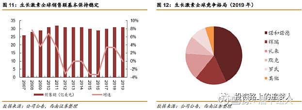 长春高新(000661):每股净资产 29.17元,每股净利润 7.53元,历史净利润年均增长 0.0%,预估未来三年净利润年均增长 28.71%,更多数据见:长春高新000661核心经营数据 长春高新的当前股价 480.17元,市盈率 63.79,未来三年的估值假设和预期收益率如下:15倍PE,预期收益率 -65.8%;20倍PE,预期收益率 -54.4%;25倍PE,预期收益率 -42.99%;30倍PE,预期收益率 -31.59%。 一、公司基本情况 1.1基本信息 §成立时间:1993-06-10 §公司所在地:吉林省 §业务简介:长春高新从公司成立之初的以高新区基础设施建设为主成功转型,成为一家专注于医药科技创新领域,实施产业投资的企业集团。明确以生物制药为主、房地产为辅的产业定位,形成了基因工程药、生物疫苗、现代中药三大产业发展平台,实现了金赛药业、百克生物、华康药业、高新地产“四驾马车”鼎力发展格局 1.2证券信息 §上市时间:1996-12-18 §申万行业:医药生物—生物制品Ⅱ §市值:1620亿(2021.03.23) §上市至今年化投资收益率(理杏仁):22.45% 1.3股权架构 §实控人:长春新区国有资产监督管理委员会,持股15.84% §前十大股东比例:41.12% §机构持仓:3个社保基金、北上资金、公募资金等,机构持仓占比高,具体比例待更新 1.4正面: ①国资企业,造假的动机与可能性较小(虽然网上也有说长春高新造假的文章,但基本没有实质性的内容) ②16~20年高管团队不断地从二级市场买入公司股票,期间减持很少,目前高管团队全部持有股份,持股价值远超年薪; ③机构持仓多,尤其是前十大中有三大社保基金,历史最多的时候有5只社保基金进入前十; ④历史投资收益率高,有助于提升投资者的持仓信心; 1.5反面: ①所谓人红是非多,大市值的公司也是媒体们关注的重点,网络上有负面的报道,对投资者会造成干扰,需要理性和辩证的去看 ②股东人数20年下半年从3万增长到10万+,目前是7万多,公司热度提升,股份集中度下降,对公司内在价值没有影响; ③长生生物曾经是长春高新的控股子公司,百克生物在职高管和技术人员部分曾经都有在长生生物的履职记录; ④业务结构较为复杂,掺入了房地产业务,对分析报表会造成干扰(长春高新本质上来看就是一家投资公司,母公司本身并没有什么业务,业务主要由子公司开展); ⑤近三年分红比例较低,仅净利润的10%; 二、财务分析 2.1财务全景图 2.2成长情况 2.3盈利情况 2.4现金流情况 2.5成本&费用 2.6营运能力 2.7资产&负债 2.8正面 ①成长数据亮眼,净利润增速高于营收增速; ②净资产收益率常年处于优秀水平线20%附近及以上,近两年甚至达到了30%以上,根据我看的少数几家公司来说,ROE越高,和投资回报率的相关性越强; ③17年开始营收增速上了一个台阶,明显加快,驱动因素是什么?20年营收增速放缓,是疫情原因吗?未来是否可以恢复30%以上的增速? ④毛利率是否有提升空间?费用率是否还有下降空间?→净利润增速是否可以快于营收增速? 2.9反面 ①净现比比较差(自由现金流也很少),不确定是否完全是房地产业务造成的影响(单独看金赛和百克的现金流是没什么问题的); ②存货周转率相比其他医药企业明显偏高,从存货的构成来看,可以确认是房地产业务造成; ③货币现金30余亿的情况下,短期借款+长期借款有十几亿,但大概计算了下利率,才两点几,货币现金拿去做理财还是比较划算的; 三、主要业务情况 3.1业务拆分情况 3.2金赛药业 金赛药业主要从事基因工程生物药品的研发、生产和销售,主要产品为注射用重组人生长激素(粉针剂)、重组人生长激素注射液(水针剂)、聚乙二醇重组人生长激素注射液(长效水针剂)等人生长激素系列产品及辅助生殖、妇女健康等领域产品。 重组人生长激素销售收入55.33亿,其中水针产品约占75%以上,粉针产品占10%左右,长效产品占12%左右。与上年同期相比,水针产品收入增长20%以上,粉针产品收入增长19%左右,长效产品收入增长29%左右。重组人卵泡激素销售收入2.7亿元左右,较上年同期略有增长。 3.3百克生物 百克生物主要从事人用疫苗的研发、生产和销售,目前百克生物及其子公司迈丰生物共有三种已获批上市的疫苗产品,水痘减毒活疫苗、人用狂犬病疫苗(Vero细胞)(液体)、冻干鼻喷流感减毒活疫苗(冻干); 子公司百克生物水痘疫苗产品实现销售收入11亿元左右,鼻喷流感疫苗实现销售收入3.3亿元左右 3.4总结 ①房地产和中成药业务两块业务收入增速很慢甚至没有增速,占比不断下降,目前仅15%,未来最好的状态可能也就是维持稳定,后续就不再做关注; ②基因工程药品/生物类药品业务,指的是金赛药业和百克生物两家公司旗下生长素和疫苗业务,近5年的营收快速增长主要就是依赖于这两家公司; ③金赛药业,收入占比达67.65%,净利润占比超过80%,需要重点关注; 3.5疑问点 ①百克生物的数据有点奇怪,长春高新年报里披露的数据和百克生物递交的招股书里显示的数据有出入,不知道问题在哪; ②金赛药业19和20年的净利率有大幅度提升,毛利率并未增长,那就是费用率出现减少,持续性如何?(据了解是20年因为疫情放缓了市场推广,销售费率有所下降) ③百克生物的净利润在20年也出现大幅增长(可能和鼻喷流感疫苗上市有关); 四、金赛药业 4.1重组人生长激素 生长激素是由人体脑垂体前叶分泌的一种肽类激素,是促进人体生长发育的关键激素,能够促进身高的生长、心脏肾脏等的功能完善和皮肤、内脏、骨骼、肌肉、