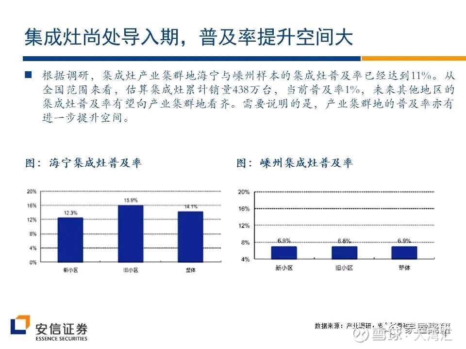 浙江美大(002677):每股净资产 2.78元,每股净利润 0.84元,历史净利润年均增长 19.7%,预估未来三年净利润年均增长 19.87%,更多数据见:浙江美大002677核心经营数据 浙江美大的当前股价 21.38元,市盈率 22.14,未来三年的估值假设和预期收益率如下:15倍PE,预期收益率 -14.2%;20倍PE,预期收益率 14.4%;25倍PE,预期收益率 43.0%;30倍PE,预期收益率 71.59%。 特别声明: 未经分享人和大湾汇一致同意,严禁转载! 本文章仅供学习研究探讨之用,不作为任何投资建议。据此买入,责任自负。建议阅读时长:40分钟 本报告分为四个部分: 第一部分:前言 第二部分:研究结论 第三部分:公司分析 第四部分:行业空间 第五部分:公司盈利预测和估值 第六部分:Q&A 一、前言 大湾汇的朋友们下午好,今天由我来给大家分享浙江美大,我主要分四部分来讲,第一部分先讲一下主要研究结论,然后会按照好公司、好行业、好估值这样一个逻辑来讲,目前大家比较质疑浙江美大的盈利性和成长性,那么在公司和行业这两个部分就重点讲过去的一个增长情况、盈利情况,包括它未来的一个盈利成长情况,能否继续维持。 二、研究结论 浙江美大15年到19年的收入和利润复合增长率都在30%以上,然后我对公司未来三年的收入及利润增长进行一个预测,21年预计增长30%,22年预计30%,然后23年预计20%的增长,到2023年浙江美大的净利润大约10.3亿元,如果我们给他20PE的话,对应的市值是206亿元。 问题的关键是什么呢?我觉得最重要的应该就是这个收入、利润增速能否按照我说的30%、30%、20%的增长来实现。这里我也可以给几个假设条件,第一个假设条件就是集成灶未来肯定要成为一个趋势,是大家喜爱的产品。第二个也是参考了机构的数据,中怡康的数据,包括浙江美大调研给的一个预测,综合这些预测,然后给到30%、30%、20%的增长,这个增长到底合不合理,也是我们接下来重点讨论的地方。 三、公司分析 盈利能力 – ROE的提升路径 首先我们看一家公司,先从财务指标上反映这家公司是否足够优秀,而ROE是最能反映一家公司盈利能力的一个指标,浙江美大ROE一直在20%以上,是非常高的一个ROE。 拆分下浙江美大的ROE,先看净利率,浙江美大百分之三十的净利率是一个极高的净利率。毛利率方面,它的毛利率超过了美的、格力这些巨头,与油烟机巨头老板电器基本上相差不大。 周转率方面,浙江美大的周转率在整个行业是比较一般的,甚至可以说是相对低的。如果浙江美大未来可以像老板电器一样,稍微提高一点周转率的话(老板电器也不高),那么浙江美大的ROE是有提升空间的。 再看资产负债率,即便与家电行业最优秀的公司对比,浙江美大的负债率也是最低的,这也说明它经营的比较保守。浙江美大未来如果提高负债率,会在一定程度上提高它的roe。另外美大没有任何有息负债,它的负债都是上下游的占款,这种负债其实是一种有利的负债,它并没有向任何一家金融机构借任何一笔钱。 前面说了美大的财务比较优秀,接下来我们看看它未来的盈利能力和成长性: 产品介绍:集成灶是未来发展趋势 首先对它的产品做一个介绍,它产品未来是不是行业的一个发展趋势呢?集成灶就是把过去的传统的油烟机、灶具、洗碗机、烤箱、包括消毒柜集成到一起,形成一个集成的整体厨电。但是它的功能并不仅仅在集成,它相比油烟机的话,它会有一个更好的油烟吸净力。 个人认为集成灶会成为厨电的一个发展趋势,主要基于以下几点: 1、产品性能更优。 它的油烟吸净力达到了95%以上,基本上能清除掉油烟,如果用油烟机的话,你会发现始终无法清除掉所有的油烟。油烟机是上吸的,靠近人脸也更近,它噪音的来源点也更靠近人脸,而集成灶是下吸、侧吸方式,油烟不过脸,它噪音源离人更远一点,声音会更小。另外,集成灶集成了更多东西,更节省空间,也更容易清洗,更智能化。综合来看的话,它追求更好的产品的体验,这也是它生命力比较强的一个关键。 2、客户转换成本。 传统分体式烟机为上排风设计,集成灶为下排风设计,原烟道的设计通常和橱柜的设计一起进行,如果采用分体烟机,下体橱柜通常都已经做好,如果要改换成集成灶,需要将橱柜割板,将原有消毒柜等功能电器废弃,改装成本相对较高。而原先集成灶的消费者,因为油烟不过脸、吸净率能高的优势,则比较难放弃集成灶改换传统分体烟灶(吸净率通常在70%以下)。所以我们认为,在主流的选择方向上,原先使用分体烟机的用户,在重新更换烟机的时候选择集成灶有一定可能,而原先的集成灶用户,则比较难选择分体烟机。 3、主要品牌家电均已进入集成灶行业 目前主要品牌家电都已经进入了集成灶行业,老板电器通过名气和金帝进入集成灶行业。如果美的、海尔、奥克斯这些公司进入集成灶行业,我觉得他们可能是看到这个未来的发展趋势。但是如果老板电器主打油烟机的,它也进入集成灶,我想这是一个很好的证明,就是它也认为集成灶确实是一个很好的发展趋势。 4、2015年后集成灶的成长性逐渐远超油烟机 这是万得A的数据,就是集成灶龙头浙江美大和油烟机龙头老板电器它13年至19年的营业收入和净利润数据,15年是一个明显的分界点,在15年前,老板电器在内的整个油烟机行业增速是要远远高于浙江美大在内的集成灶行业,而15年以后,油烟机的增长下降的很快,而集成灶行业的确快速增长,在15年以
