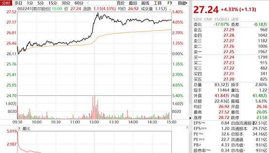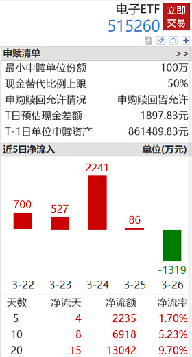大族激光(002008):每股净资产 9.02元,每股净利润 0.93元,历史净利润年均增长 20.4%,预估未来三年净利润年均增长 36.93%,更多数据见:大族激光002008核心经营数据 大族激光的当前股价 42.6元,市盈率 37.82,未来三年的估值假设和预期收益率如下:15倍PE,预期收益率 -44.85%;20倍PE,预期收益率 -26.47%;25倍PE,预期收益率 -8.09%;30倍PE,预期收益率 10.29%。 科创之芯,逐梦未来!上交所首只电子ETF(515260),一键投资50只电子龙头股!—— 网页链接{$电子ETF(SH515260)$} 大族激光于2021年3月26日晚间发布了2020年财务报告。报告期内,公司全年营收、净利润同比均实现正增长。然而,从季度上来,大族激光2020年第四季度营收环比下滑,并且第四季度净利润为净亏损0.41亿元。 具体来看,大族激光《2020年年度报告》显示,公司2020年度实现营业收入119.42亿元,营业利润10.34亿元,归属于母公司的净利润9.79亿元,扣除非经常性损益后净利润6.75亿元,分别较上年度增长24.89%、54.45%、52.43%、46.01%。 从业务板块来看,报告显示,2020年大族激光小功率激光打标、精密焊接、精密切割等业务实现营业收入57.12亿元,同比增长61.78;大功率激光智能装备业务实现营业收入20.18亿元,同比下降0.96%,市场竞争日趋激烈;显示面板及半导体相关业务实现营业收入10.27亿元,较上年度增长6.67%;PCB业务实现营业收入21.84亿元,同比增长70.83%等。 从产品占营收比重来看,大族激光的主要营收仍靠激光及自动化配套设备,显示报告期内其营收为90.29亿元,占营业收入比重为75.60%。 整体来看,这份答卷看似令人满意。然而,分季度来看,大族激光在第四季度营收环比出现下滑,并且净利润体现为亏损。报告显示,大族激光2020年第四季度,营收为30.84亿元,明显少于第三季度的36.99亿元;实现归属于上市公司股东的净利润为-0.41亿元。 另外,报告提及,由于疫情后期国内口罩产能过剩,大族激光部分口罩自动化生产线客户临时取消合同导致公司前期备货积压,公司对口罩自动化生产线库存进行了专项减值准备计提;终止出售AIC公司股权,公司确认长期股权投资损失2.34亿元。 公开资料显示,大族激光是一家提供激光、机器人及自动化技术在智能制造领域的系统解决方案的高端装备制造企业,业务包括研发、生产、销售激光标记、激光切割、激光焊接设备、PCB专用设备、机器人、自动化设备及为上述业务配套的系统解决方案。公司产品主要应用于消费电子、显视面板、动力电池、PCB、机械五金、汽车船舶、航天航空、轨道交通、厨具电气等行业的金属或非金属加工。 盘面上,截至3月26日收盘,大族激光大涨4.33%,报27.24元,成交额22.43亿元。 以上整理自:《财报直通车|大族激光去年第四季度净亏损0.41亿元、去年确认长期股权投资损失2.34亿元》 大族激光为电子ETF成份股,最新权重占比1.85%。截至2021年3月26日,上交所首只电子ETF(515260)最近10个交易日内有8个交易日持续吸引资金逆势净流入,累计净流入6918万元。 【电子ETF(515260)特别提示】 科创之芯,逐梦未来!上交所首只电子ETF(515260),一键投资50只电子龙头股!消费电子、5G产业、半导体芯片、新能车、物联网、云计算等热门主题打包收入囊中! 首只上交所电子ETF(515260)跟踪中证电子50指数(931461),选取电脑与外围设备、电子设备和半导体等行业中市值最大的50只股票作为样本股,以反映电子板块上市公司股票的整体表现。 其中51%仓位集中于十大电子行业龙头股,包括海康威视(安防龙头)、京东方A(面板龙头)、立讯精密(消费电子龙头)、韦尔股份(半导体龙头)、歌尔股份(消费电子龙头)、兆易创新(半导体龙头)、三安光电(LED龙头)、卓胜微(半导体龙头)、紫光国微(半导体龙头)、大华股份(安防龙头)等电子细分领域龙头股,分享龙头电子强者恒强的长期成长价值,余下不到半成仓位兼顾中小龙头电子企业的业绩高弹性,为投资者提供了一键买卖50只电子龙头A股的高效投资工具。 从投资效率上看,电子ETF(515260)相对个股更简单便捷,每手交易门槛仅90元左右,卖出无印花税(股票收取千分之一),且相对个股投资胜率更高。 【天风证券:中证电子50指数投资价值分析】 1)中证电子50指数(931461)选取电脑与外围设备、电子设备和半导体等行业中市值最大的50只股票作为样本股,以反映电子板块上市公司股票整体表现。集中了电子行业内知名度高、市值规模大、流动性好的企业,聚集了电子行业的核心龙头资产。 2)中证电子50指数权重集中度高,优中选优,聚集电子行业核心资产:剔除全市场流动性最后的20%股票后,选取属于电脑与外围设备、电子设备和半导体等行业总市值排名前50的股票,集中了电子行业内知名度高、市值规模大、流动性好的企业。 3)电子行业景气度回升,行业前景可期:5G建设加速,助力开启新一轮换机周期。多项政策支持、主设备商积极响应加速5G建设。2020年10月14日,苹果iPhone12系列机型发布,包括四款机型,全部支持5G。从2020年渗透率上看,5G新机更是新机型渗透率提升的最主要动力。政策助力叠加国产替代,半导体行业景气回升。半导体行业是电子产业的基础。作为技术密集型产业,半导体行业具有较高技术壁垒,随着今年以来行业景气周期见底,半导体行业需求逐步回升,叠加5G、物联网带来的增量机会,多重政策催化,国内半导体行业厂商将显著受益,具有较高投资价值。中证电子50指数呈现高估值、高